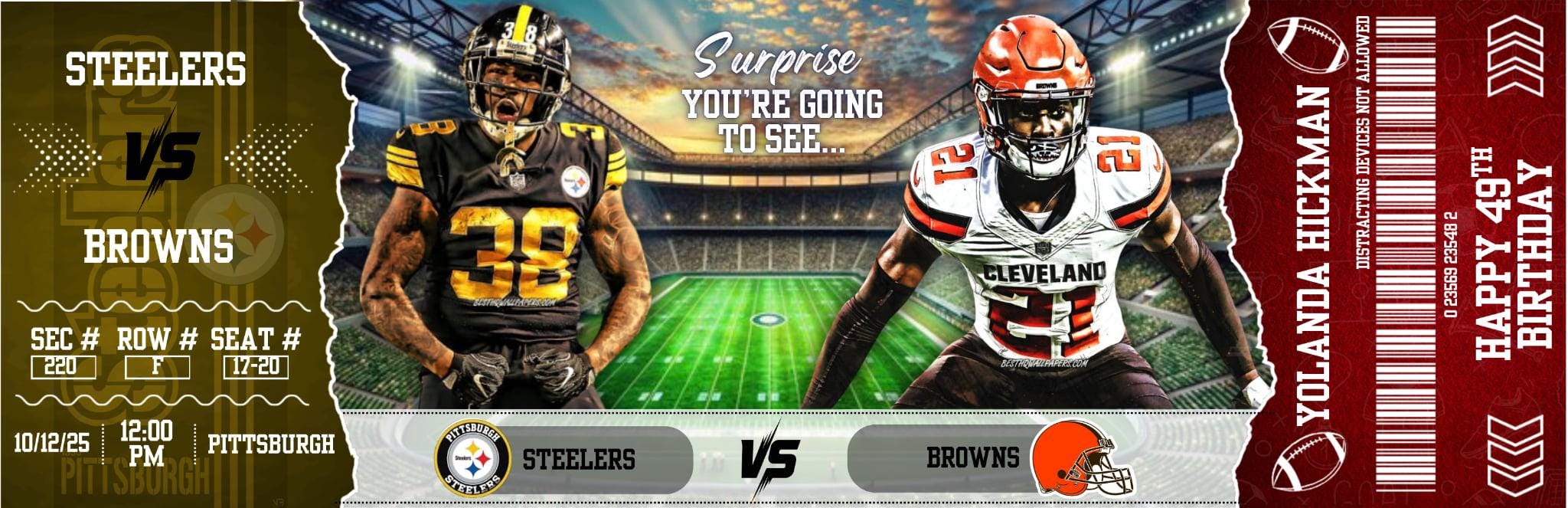 Made a ticket for my Mom’s Birthday to surprise her to go see her first College Football game! She was super excited and loved the ticket!