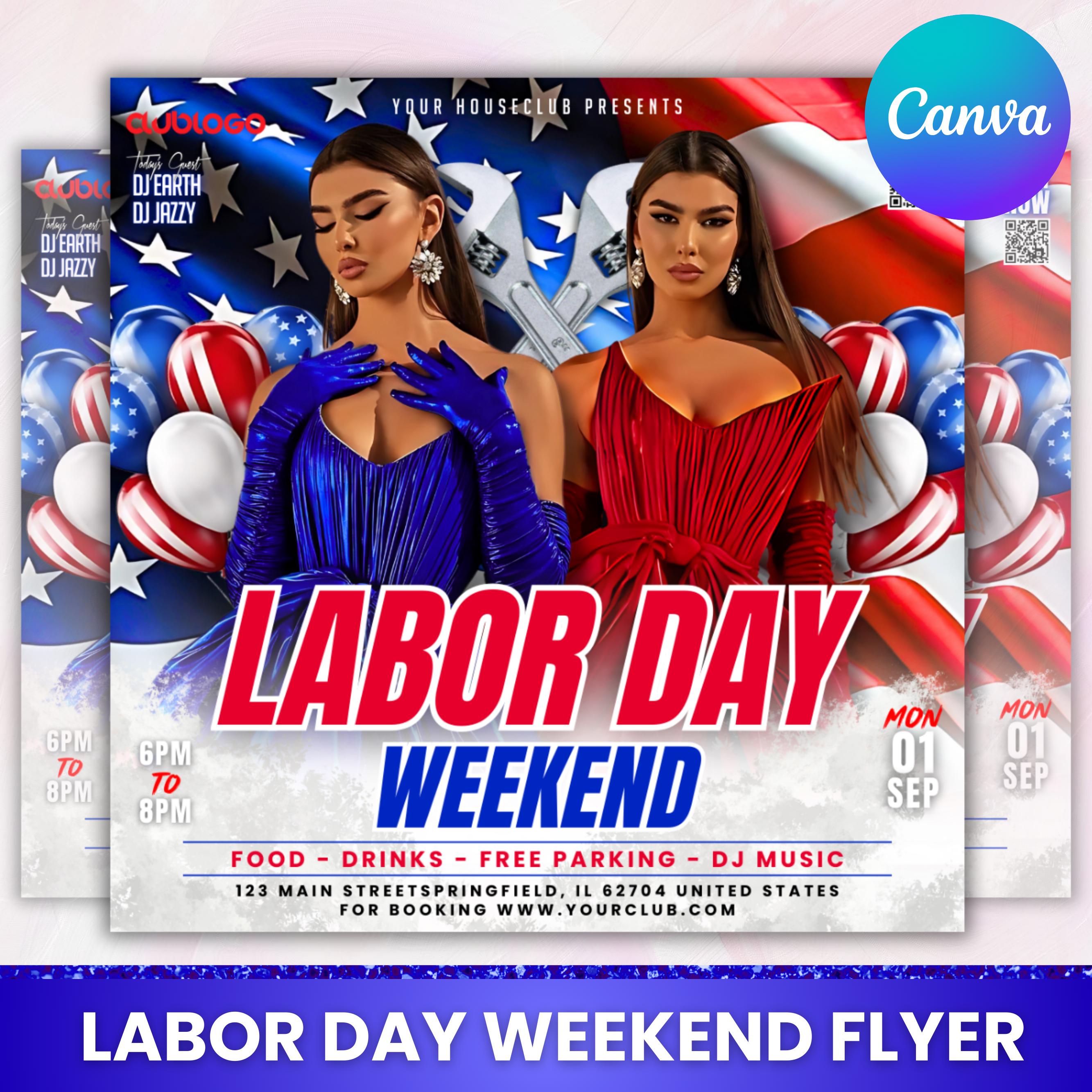 Labour Day Party Flyer, Labour Day Party Invitation, Club Party Flyer, Labor Day Club Flyer, Outdoor Party Flyer, Canva Editable