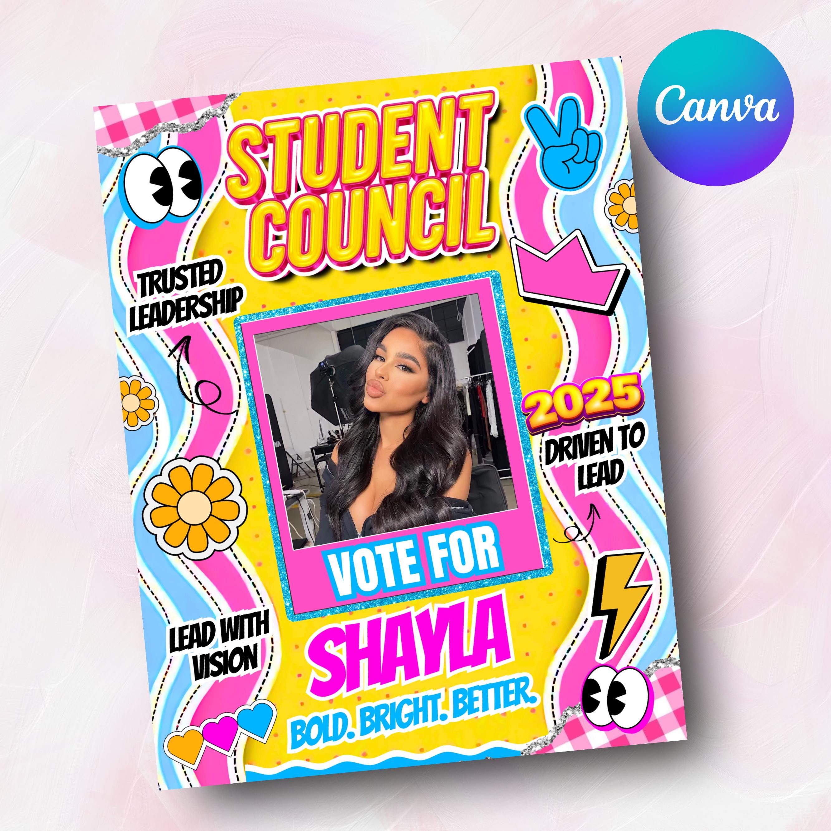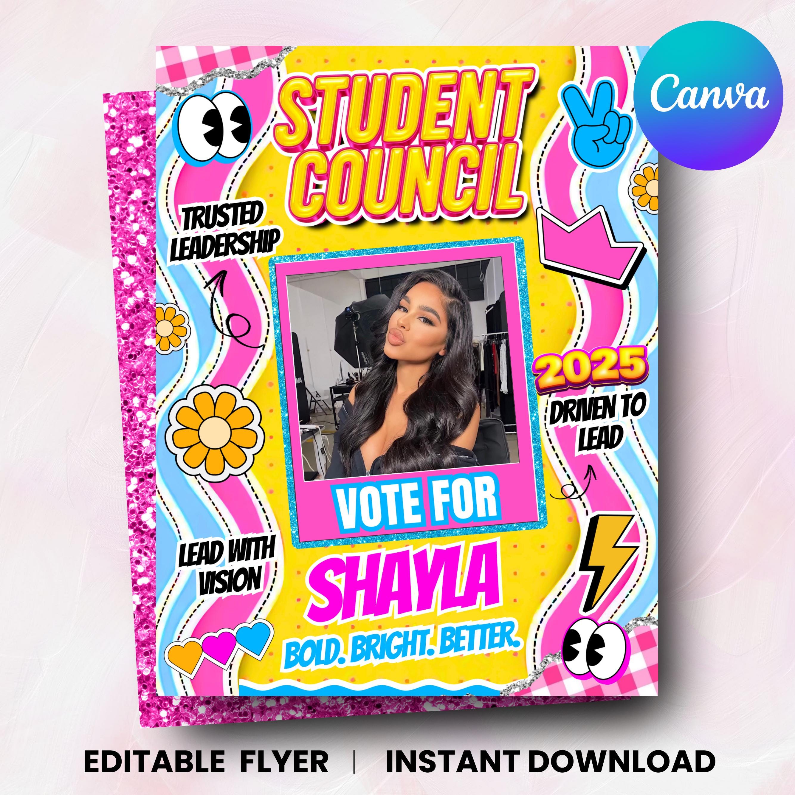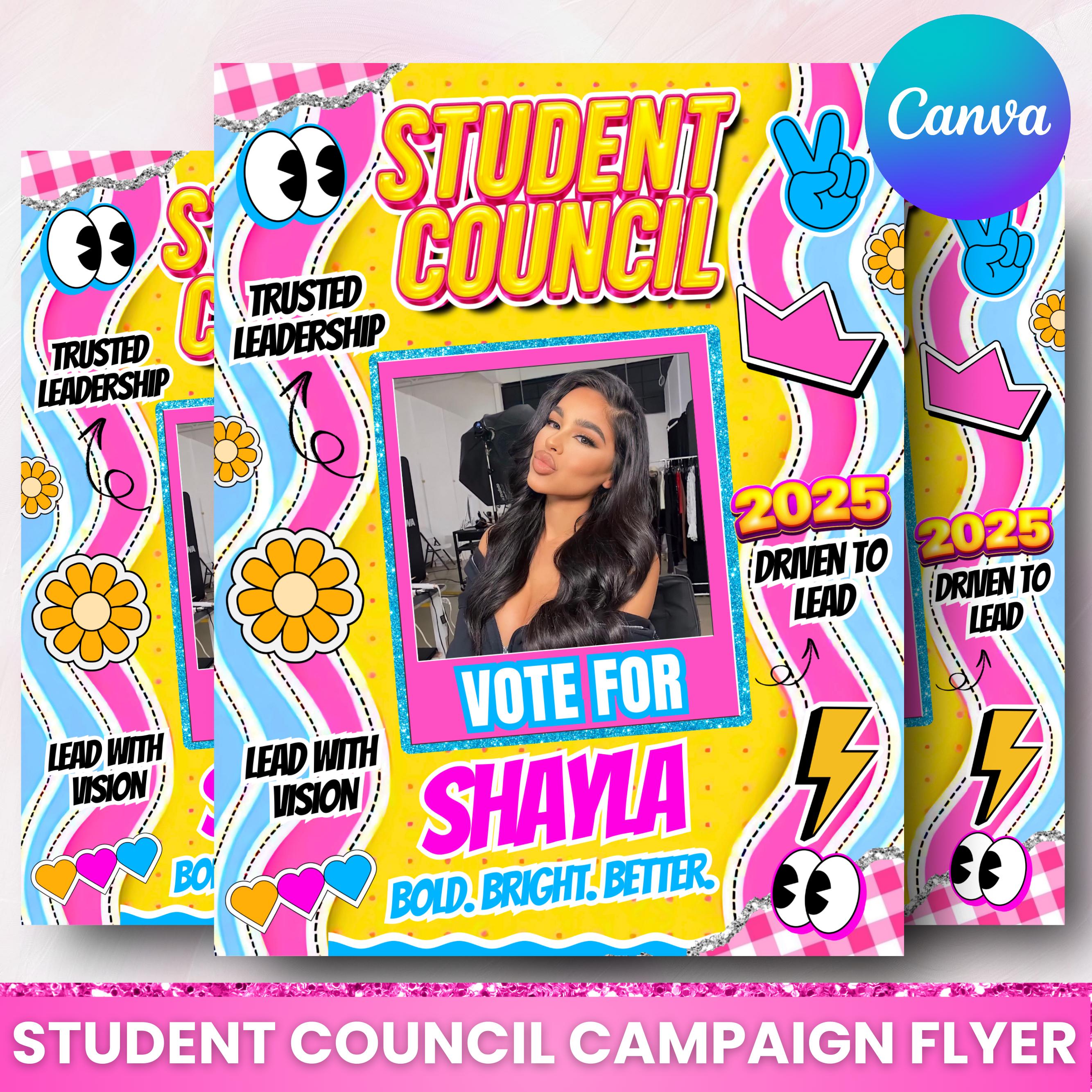 Student Council Campaign Flyer Template, School Election Flyer, Editable Canva Poster, Digital Council Flyer, School Election Poster