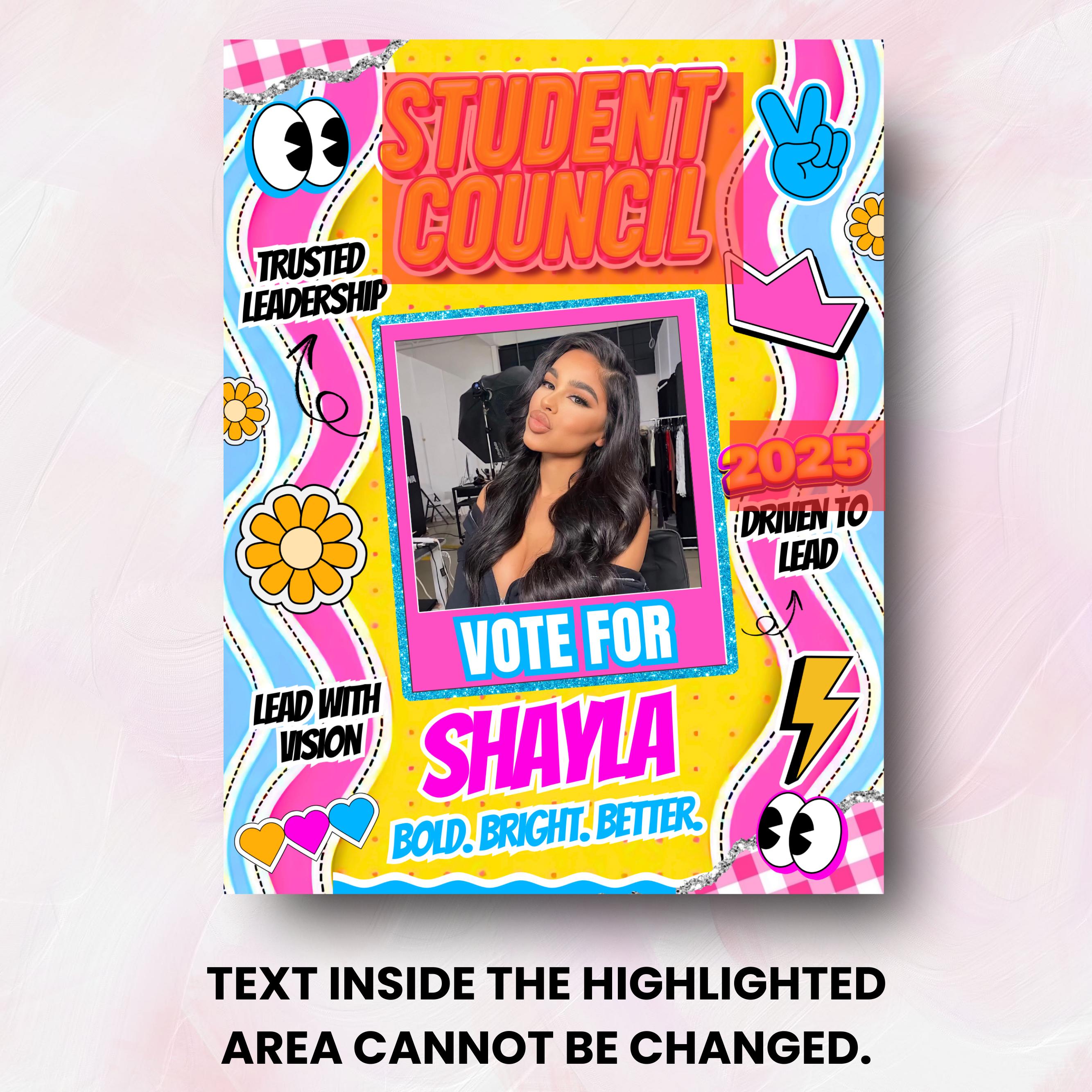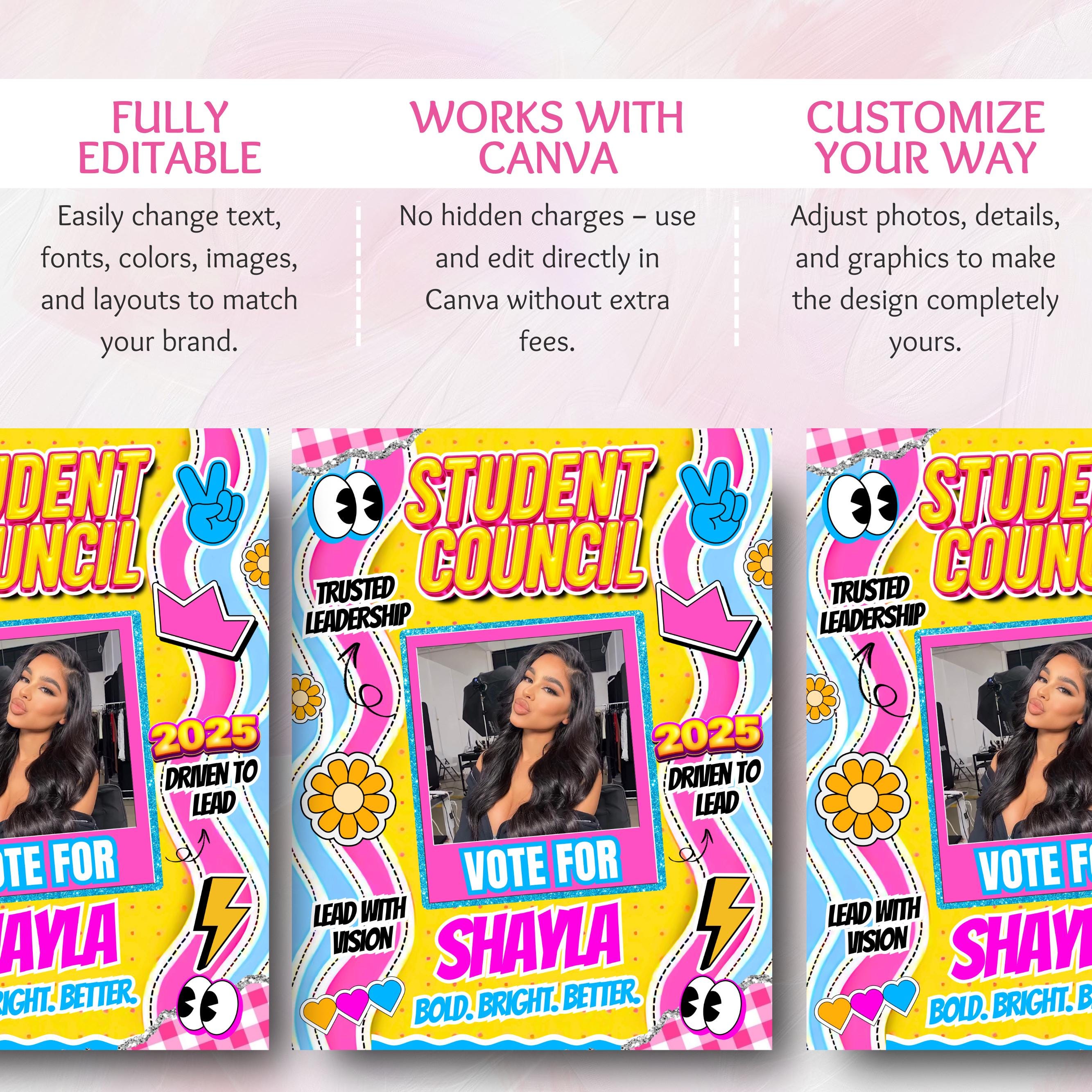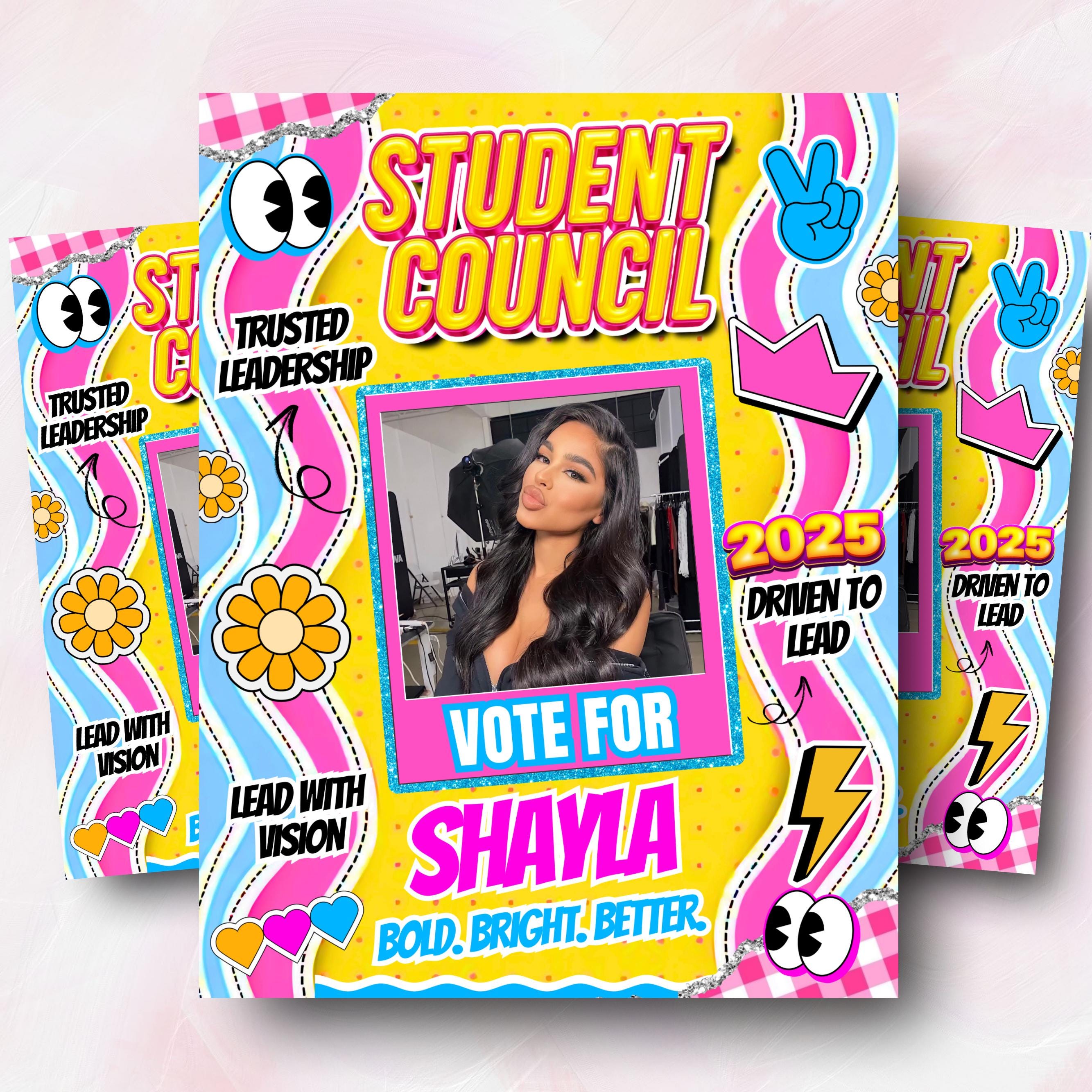 Student Council Campaign Flyer Template, School Election Flyer, Editable Canva Poster, Digital Council Flyer, School Election Poster