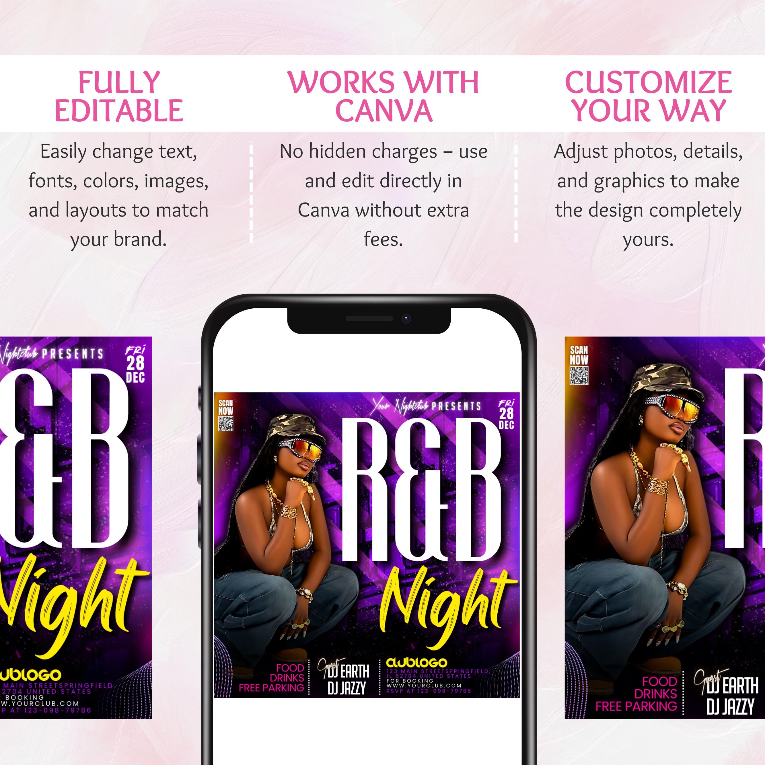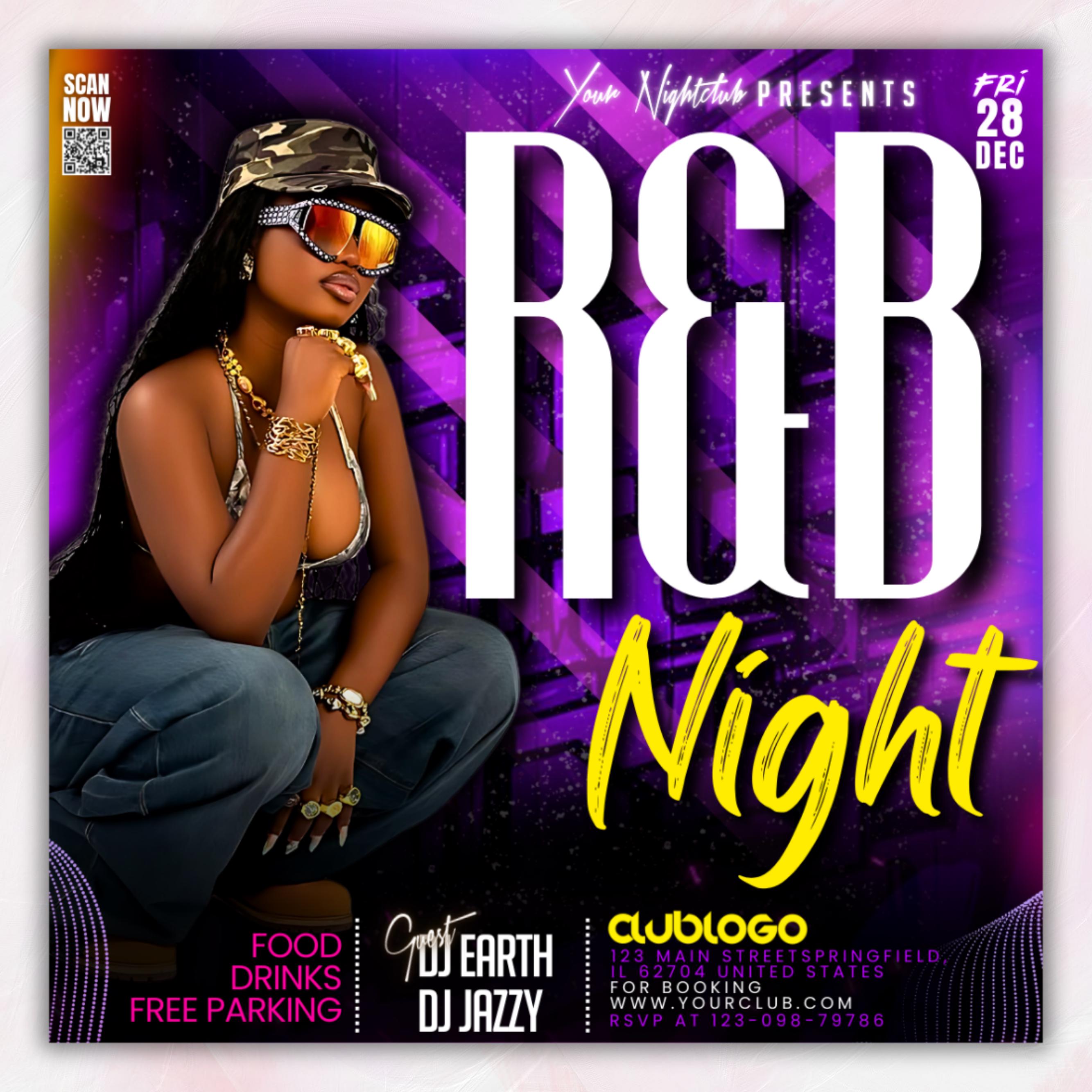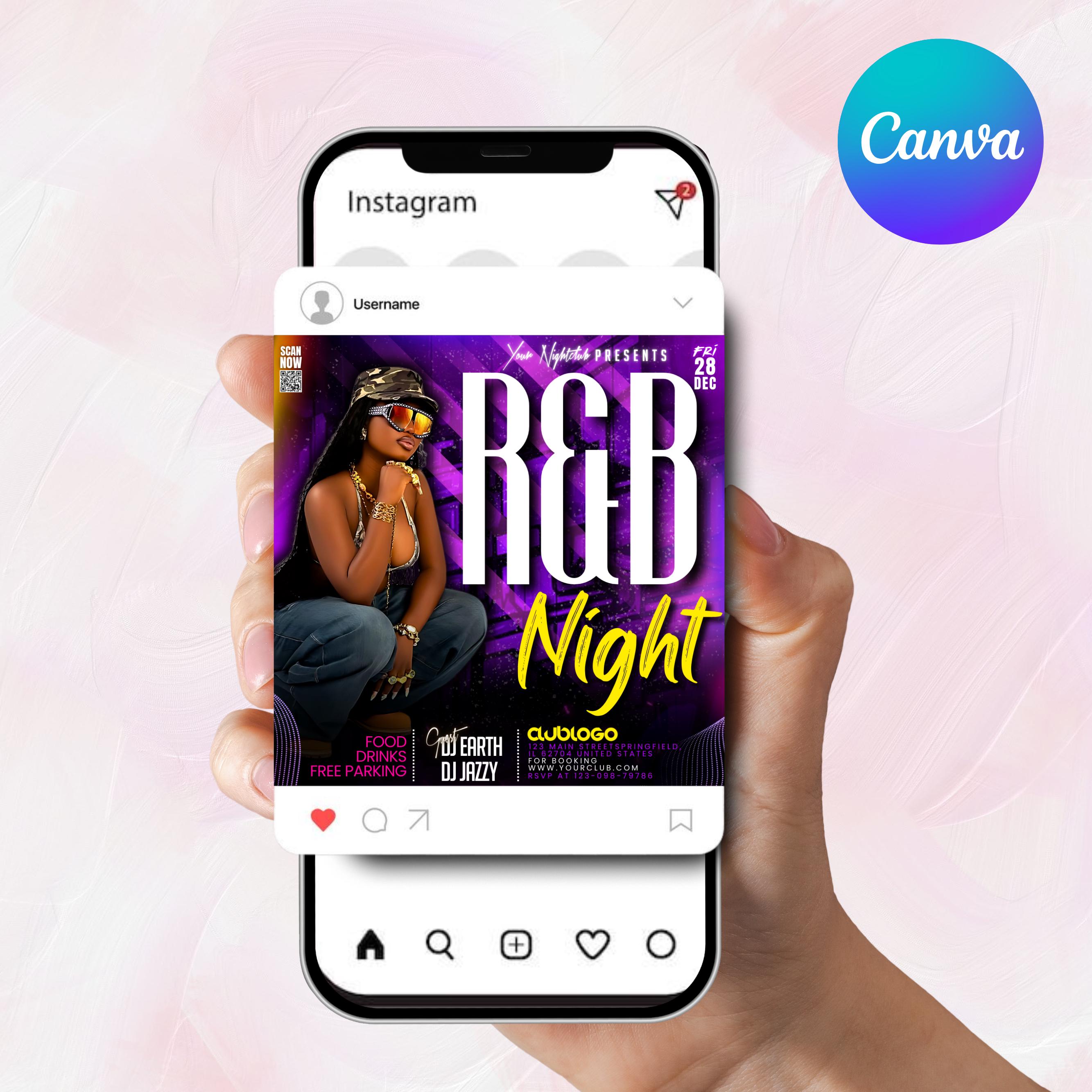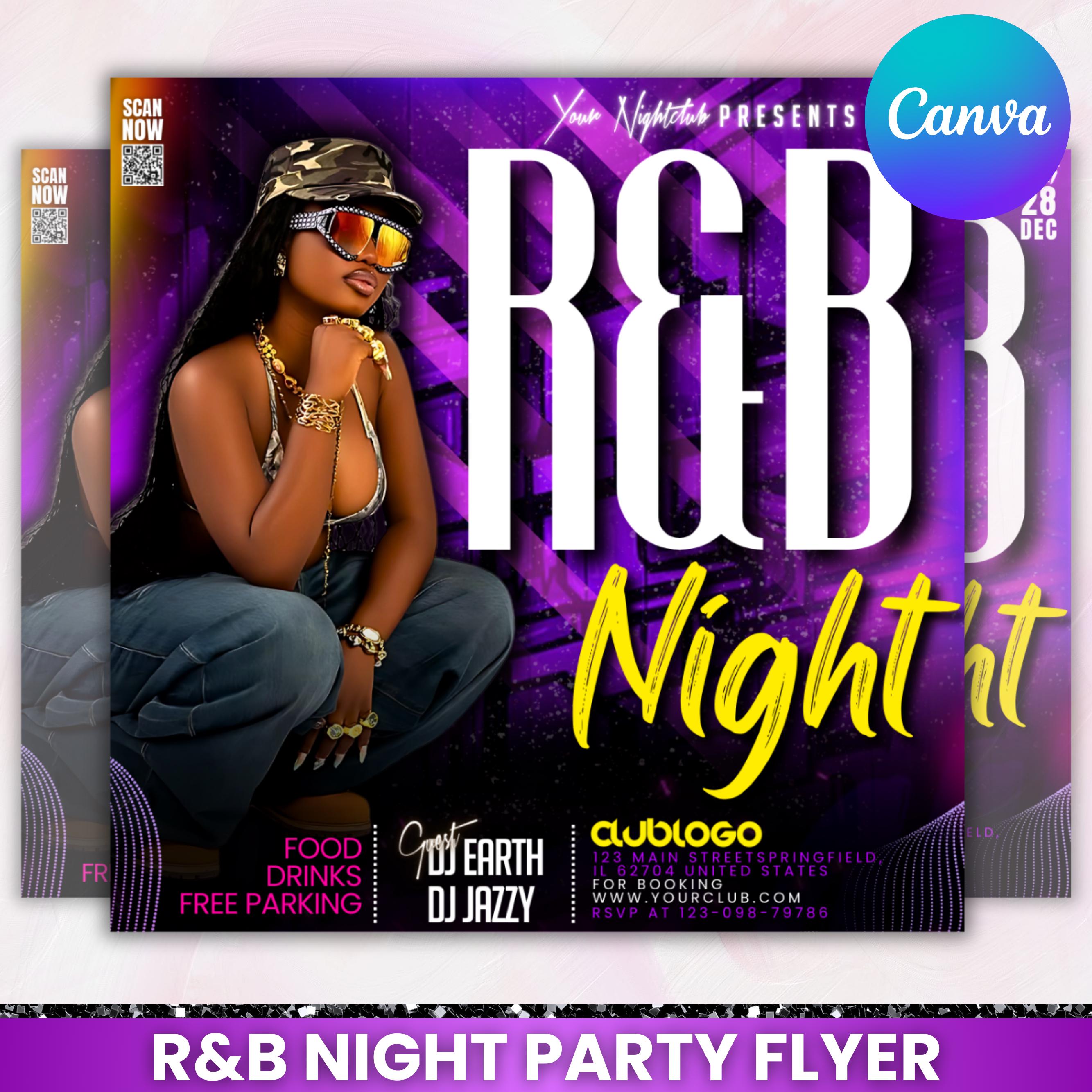 R&B Night Party Flyer, Nightclub Party Flyer, RNB Music Party Flyer, Night Invite, DJ Party Invite, Social media flyer, Canva Editable