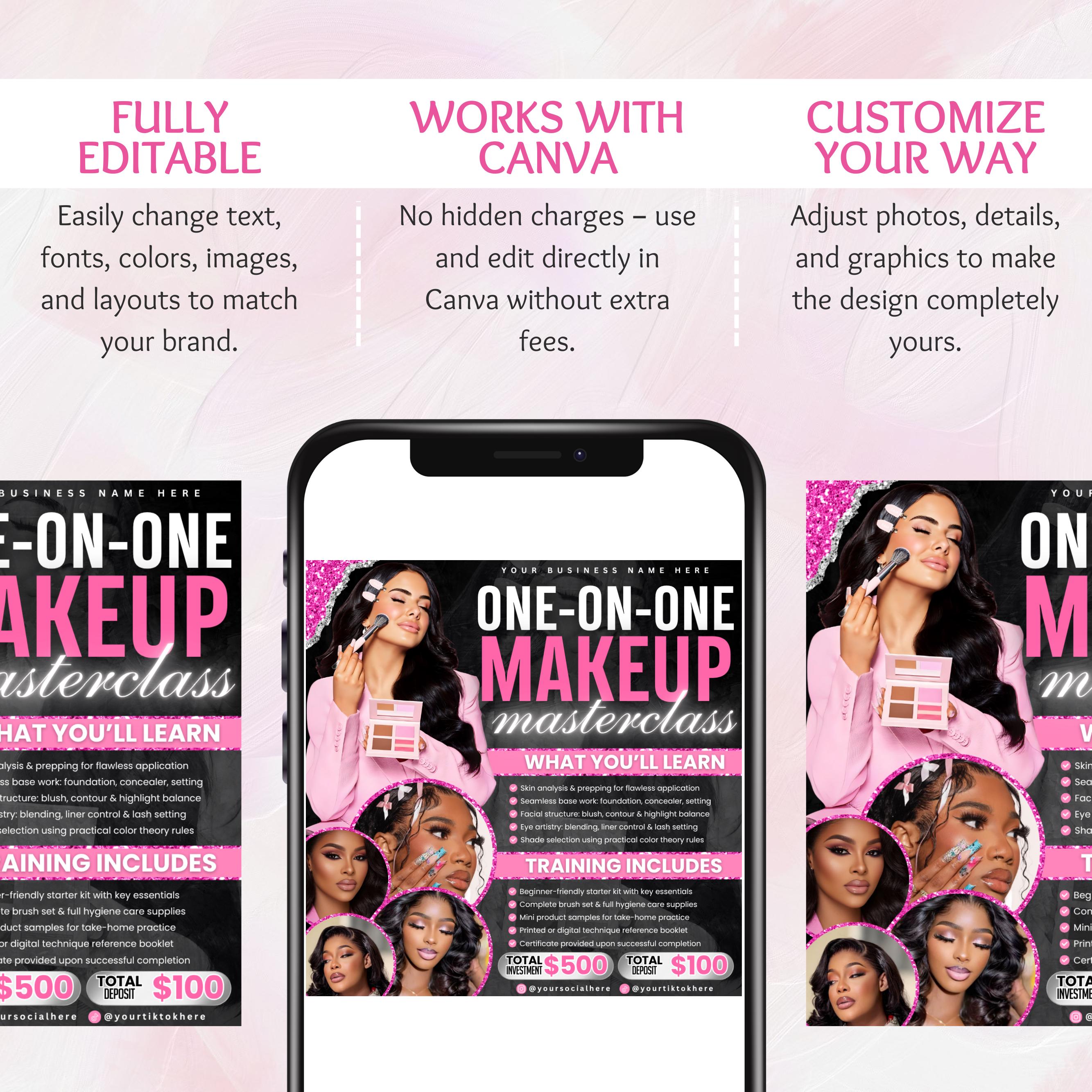 Makeup class flyer template, Makeup Masterclass, Makeup Course Flyer, Makeup Training, Master class flyer, Beauty Class Flyer,Canva Editable