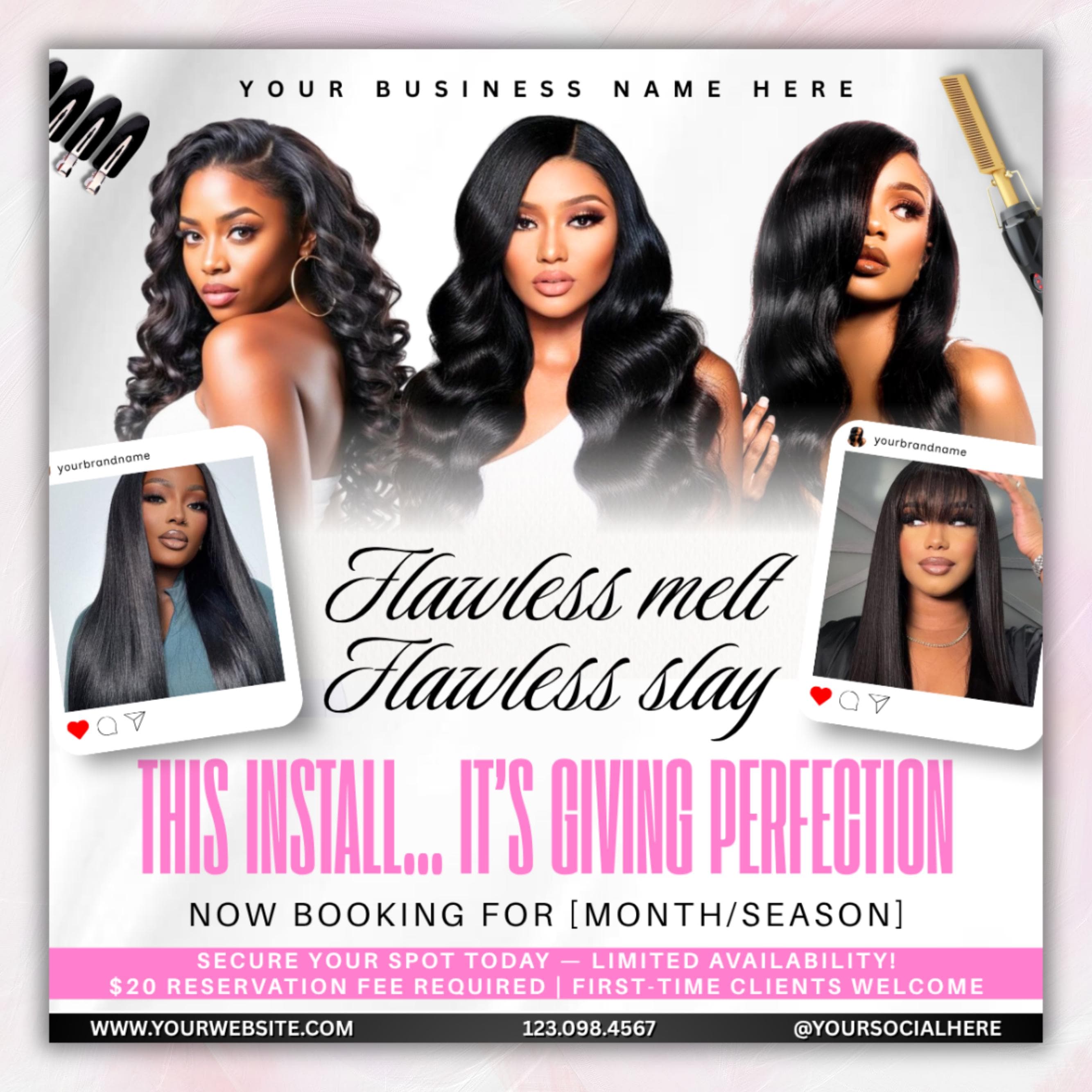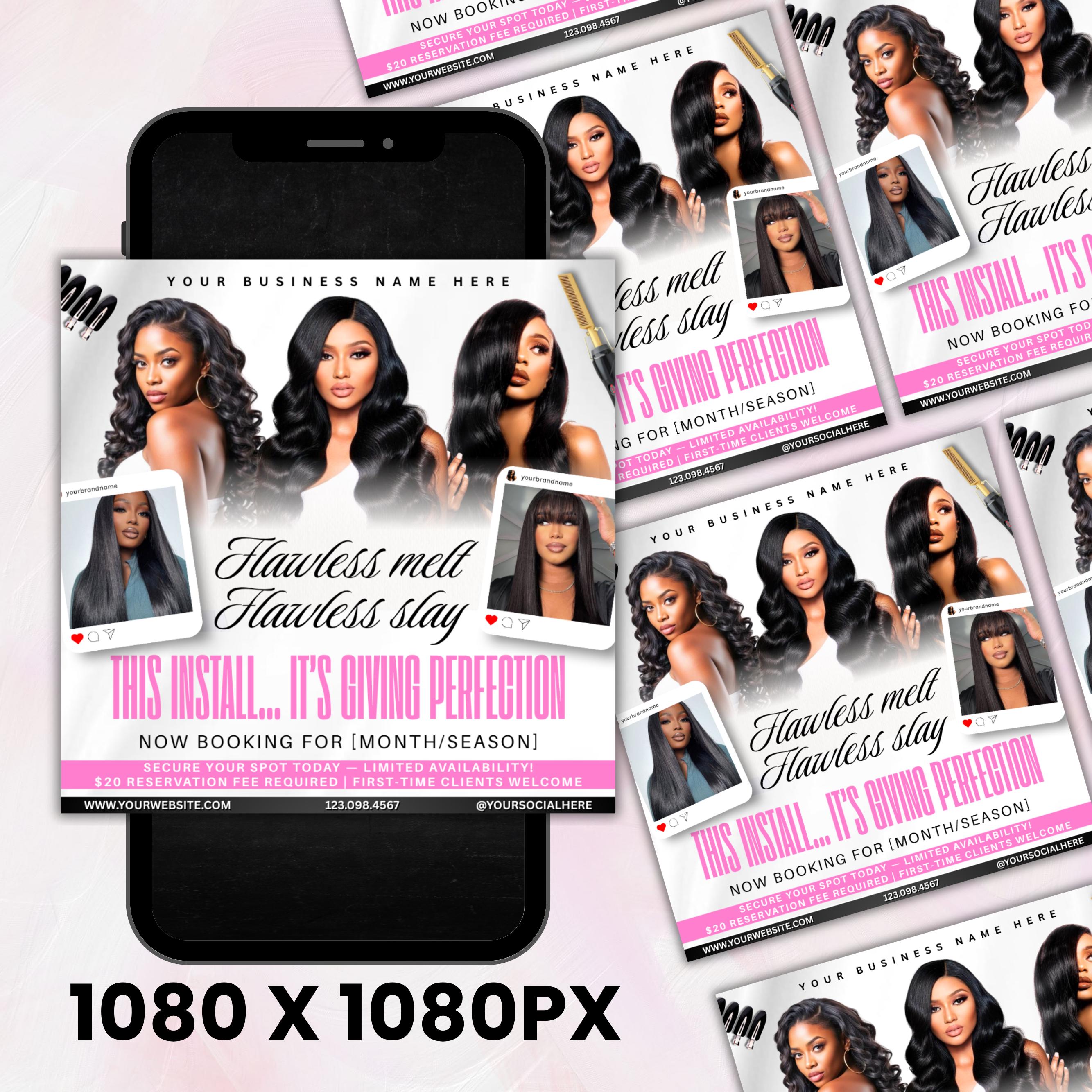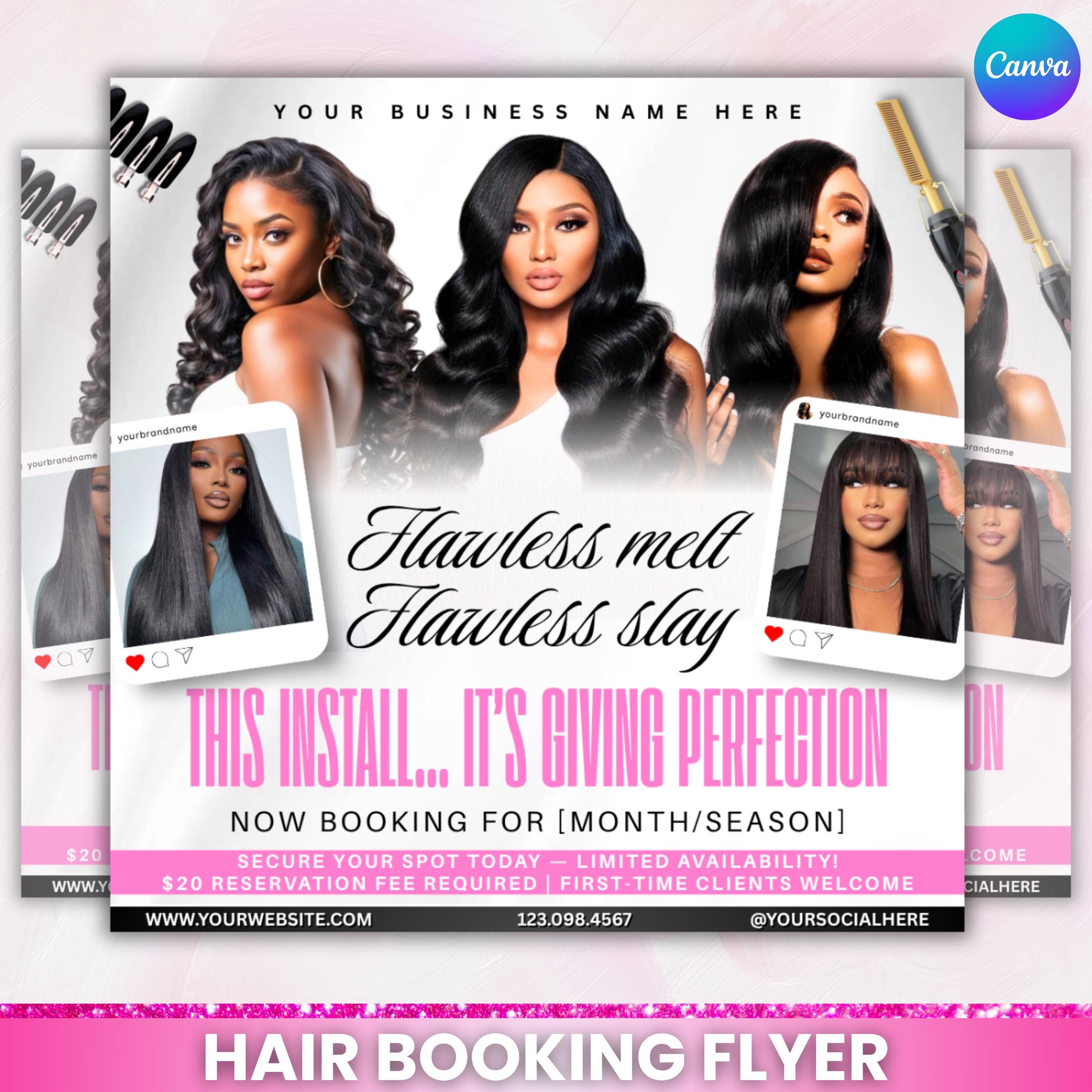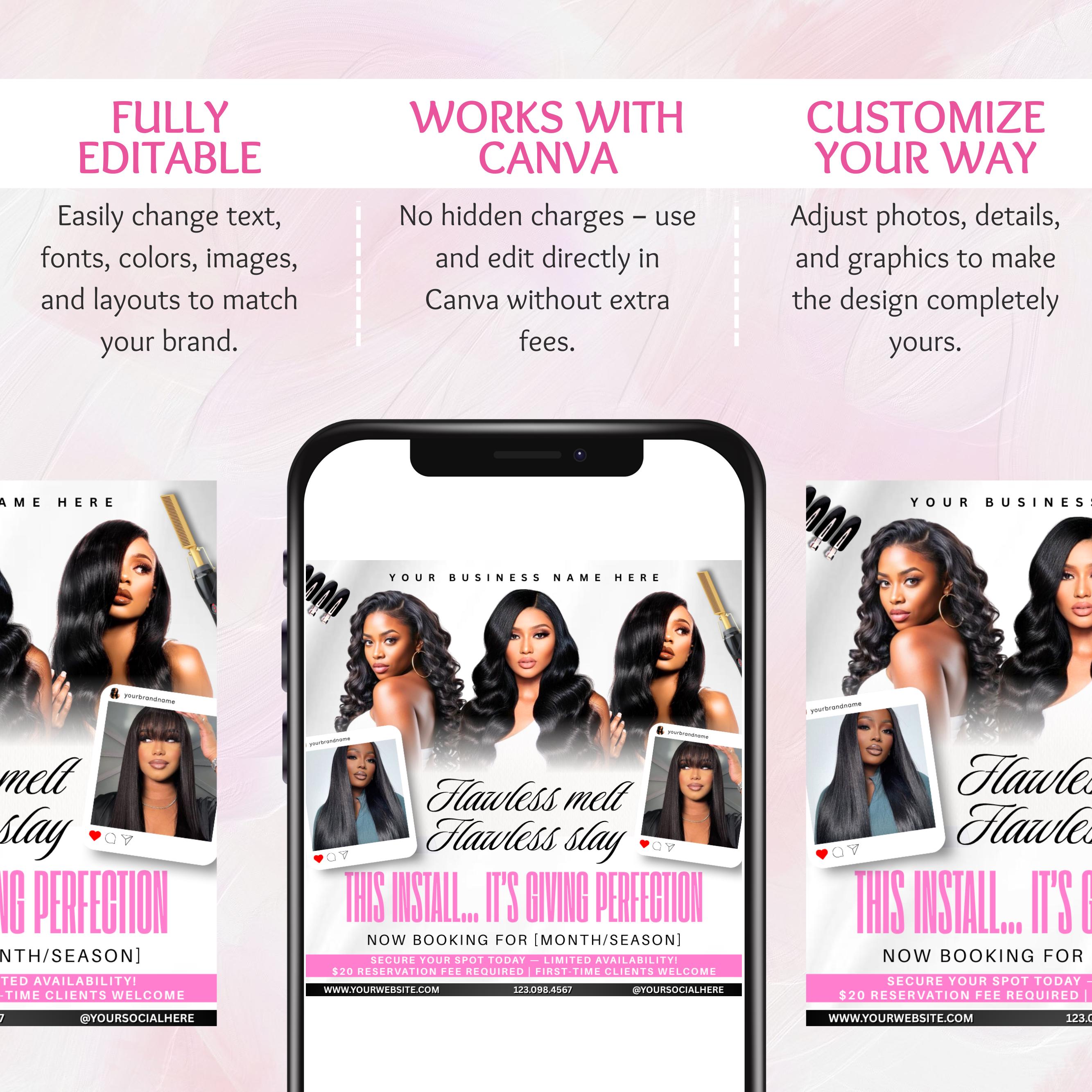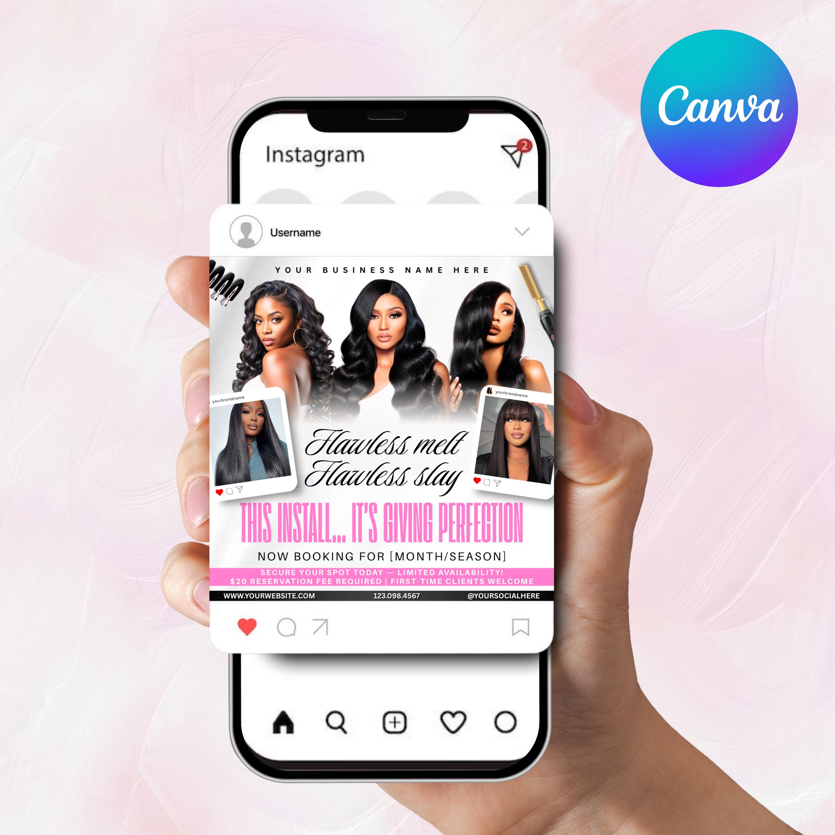 Wig Install Specials Flyer, Editable Canva Template, Hair Salon Flyer, Wig Business Promo Flyer, Premade Hairstylist Services Beauty Flyer