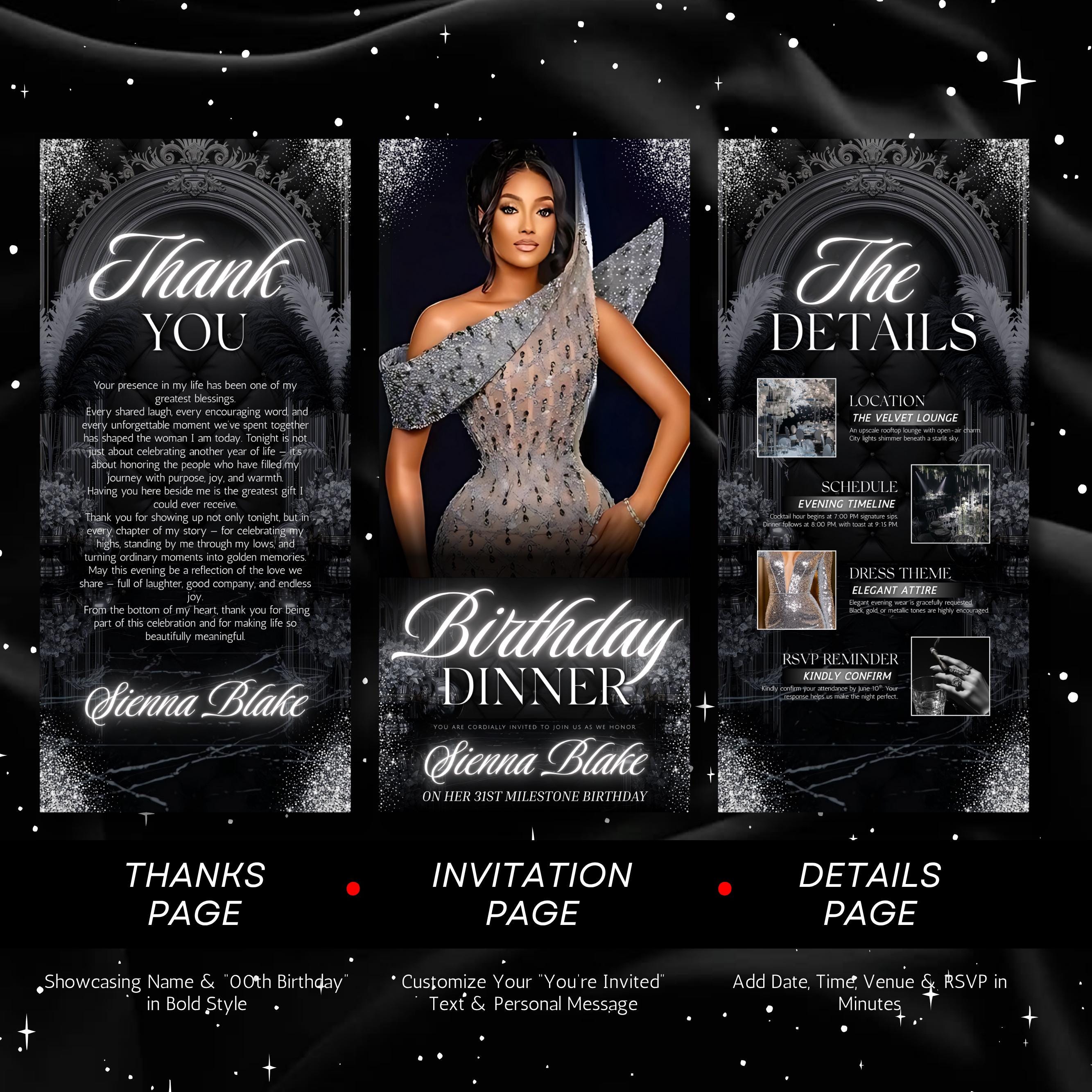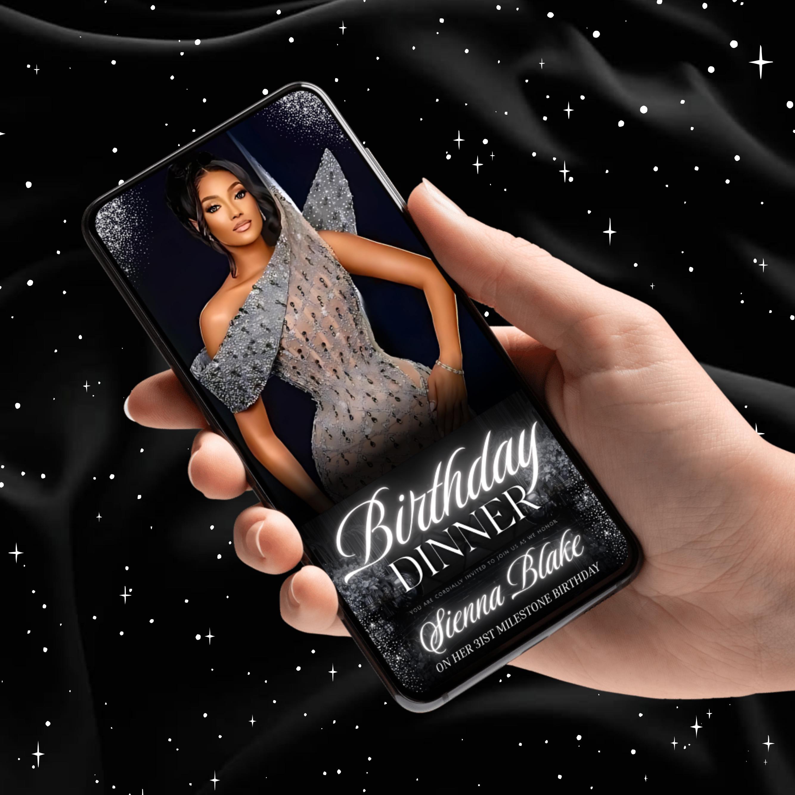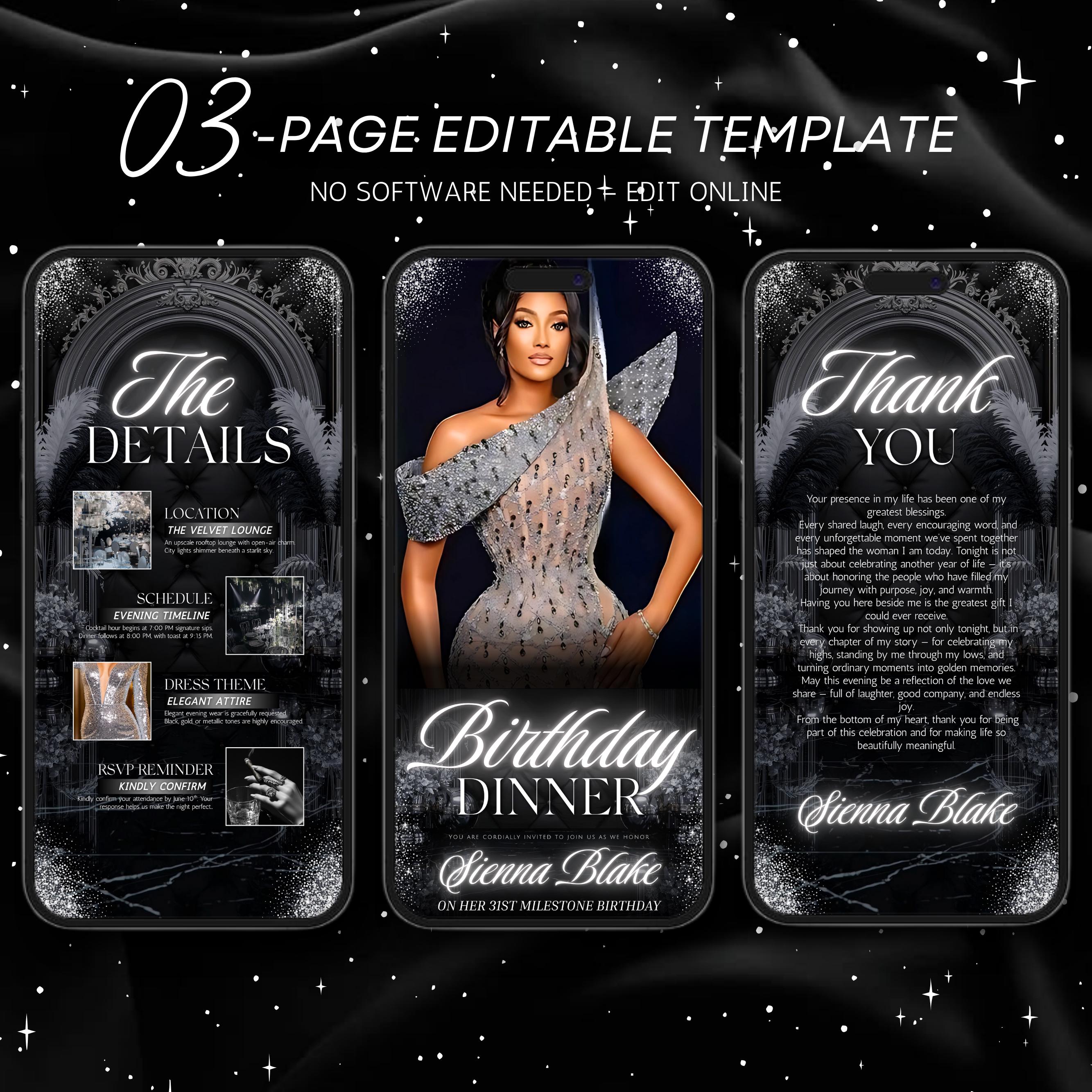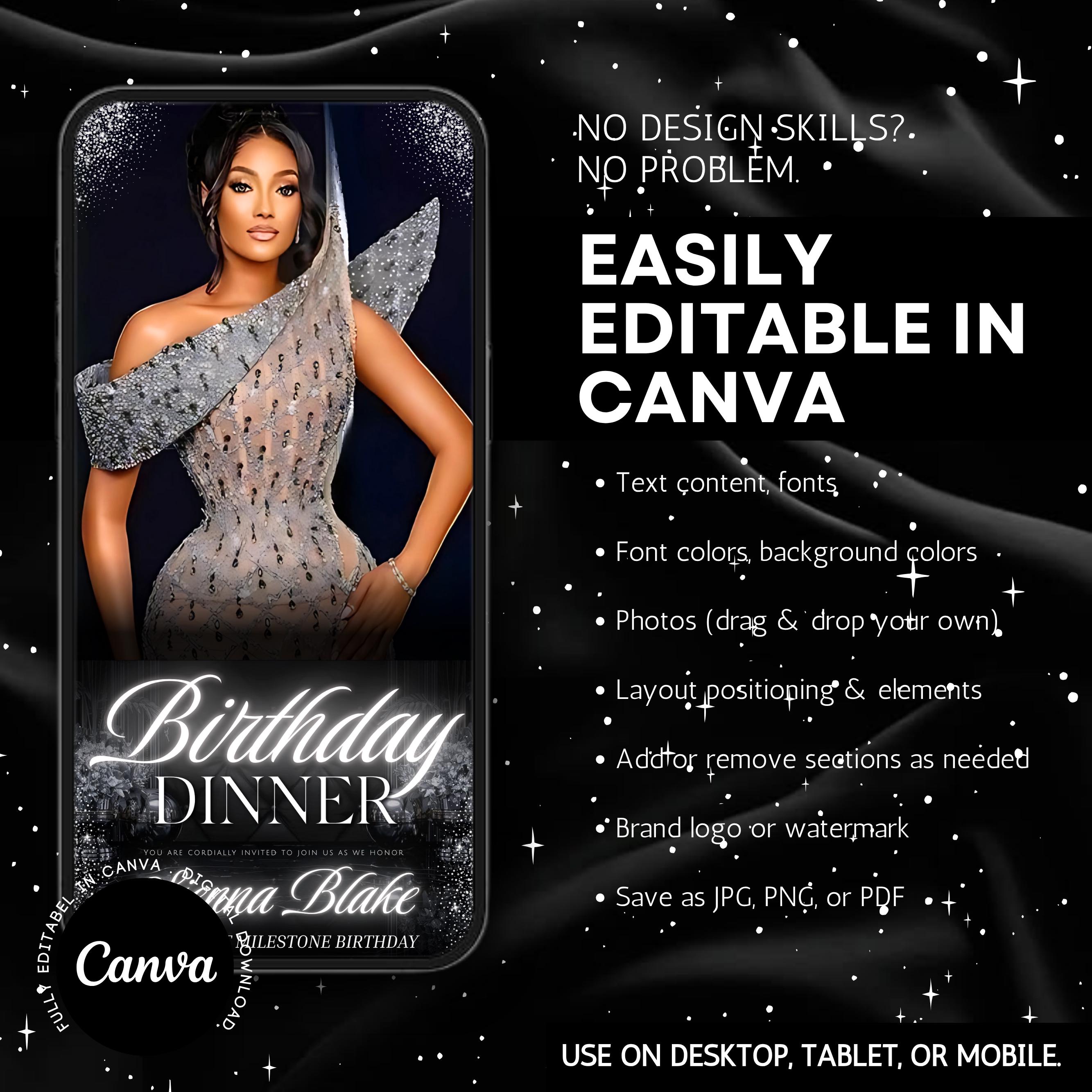 Digital Birthday Dinner invitation, Animated Digital Birthday Dinner Party, birthday evite, Music, Text, Birthday Party, Canva Editable