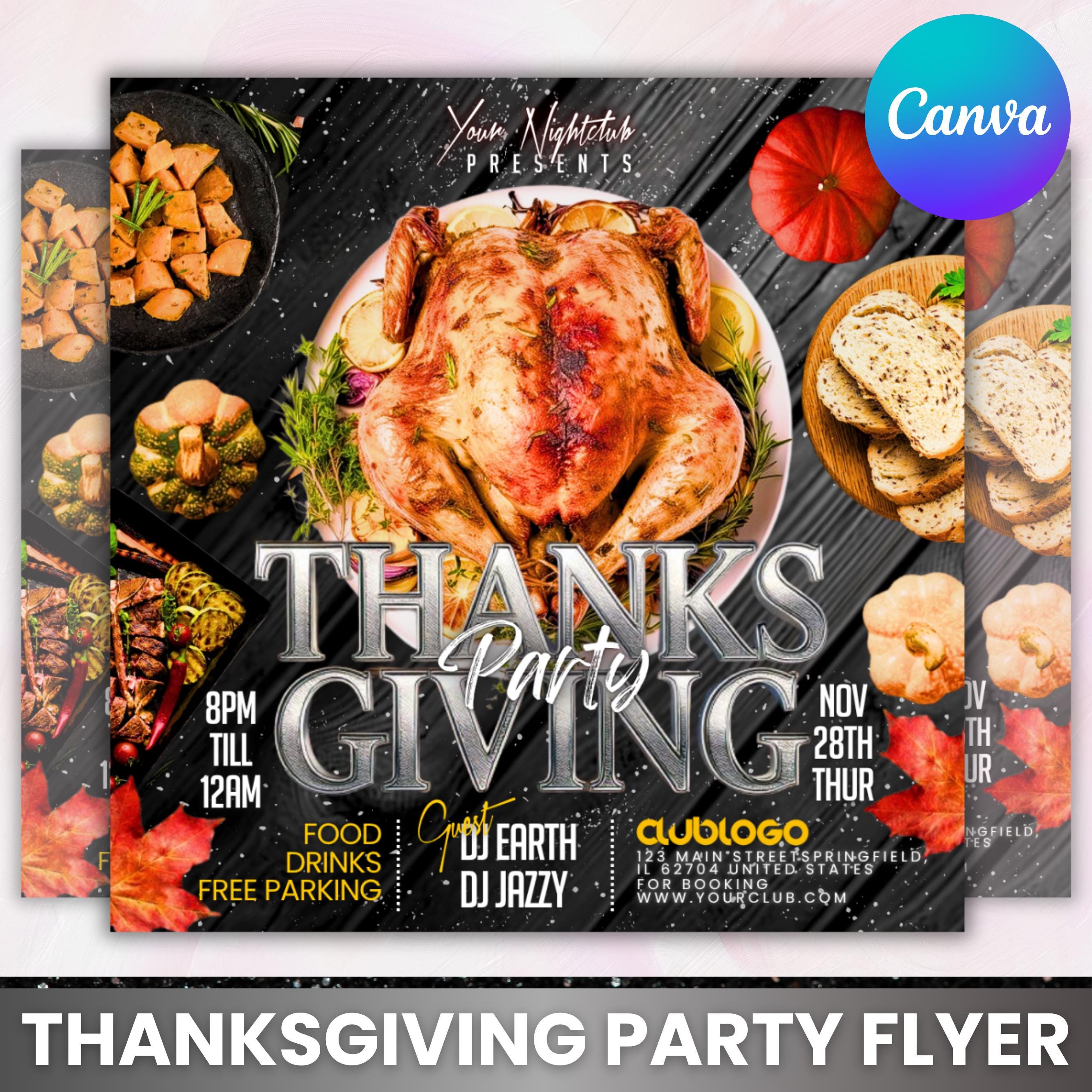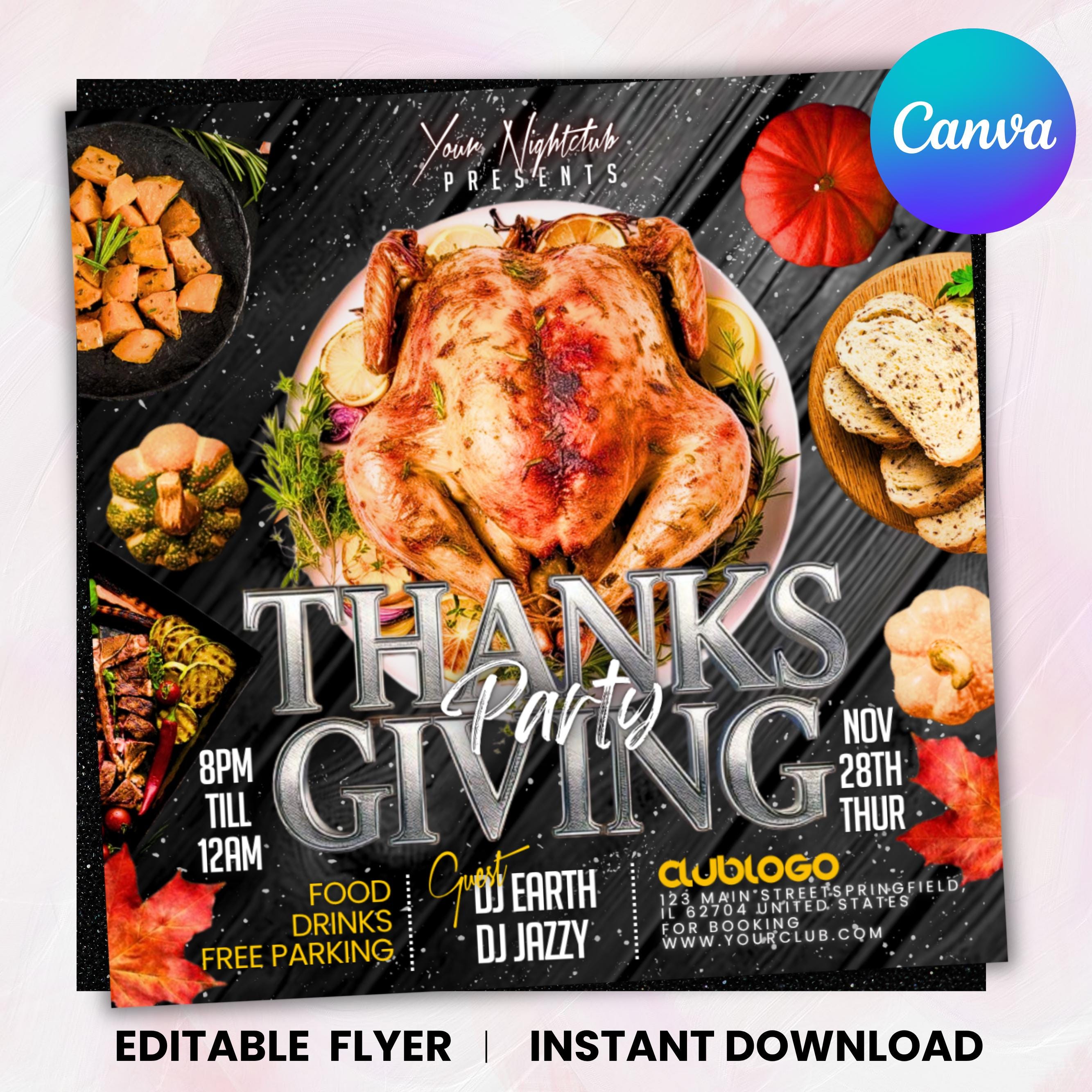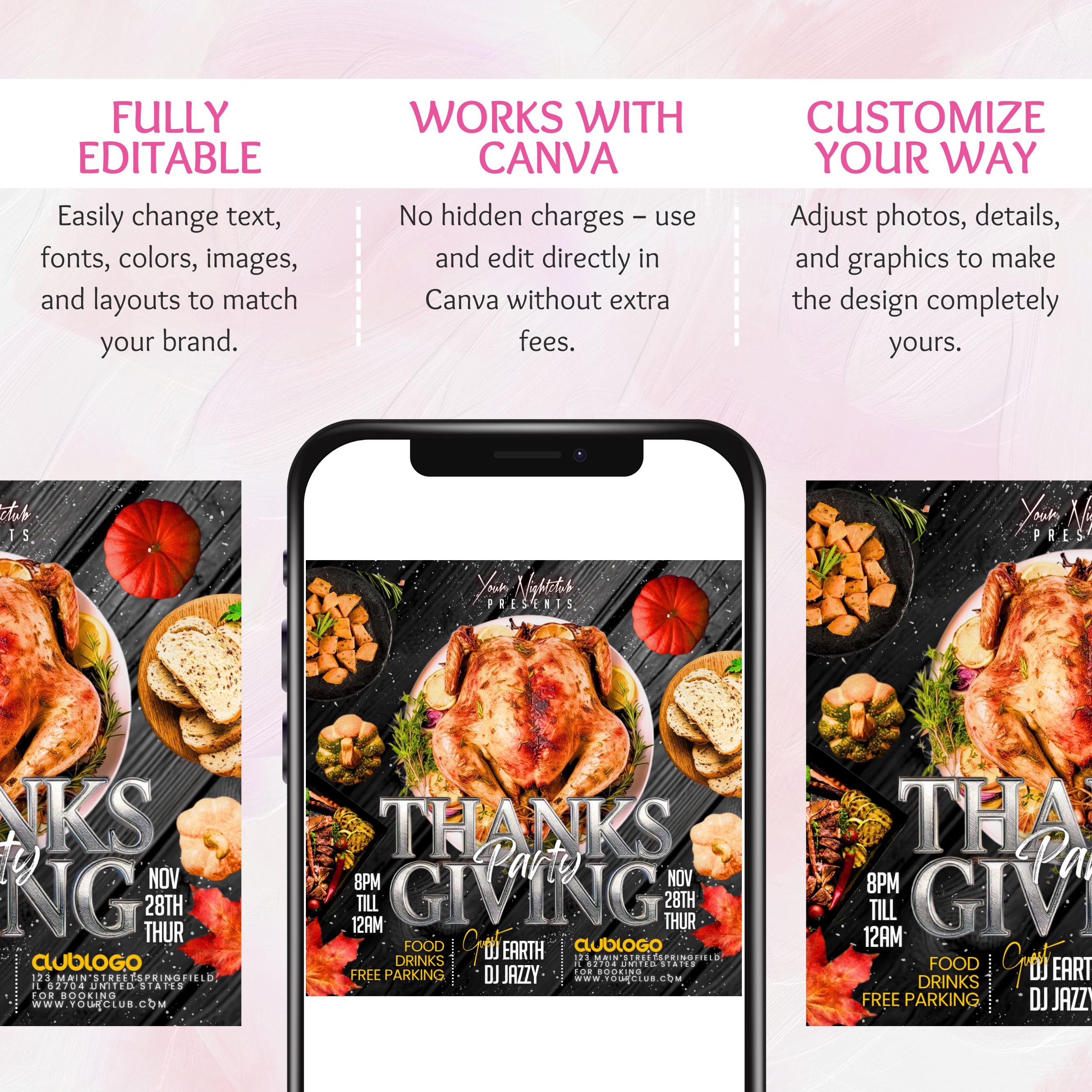 Thanksgiving Party Flyer, Thanksgiving Club Invite, Friendsgiving Dinner Invite, Celebration Flyer, Social Media Flyer, Canva Editable