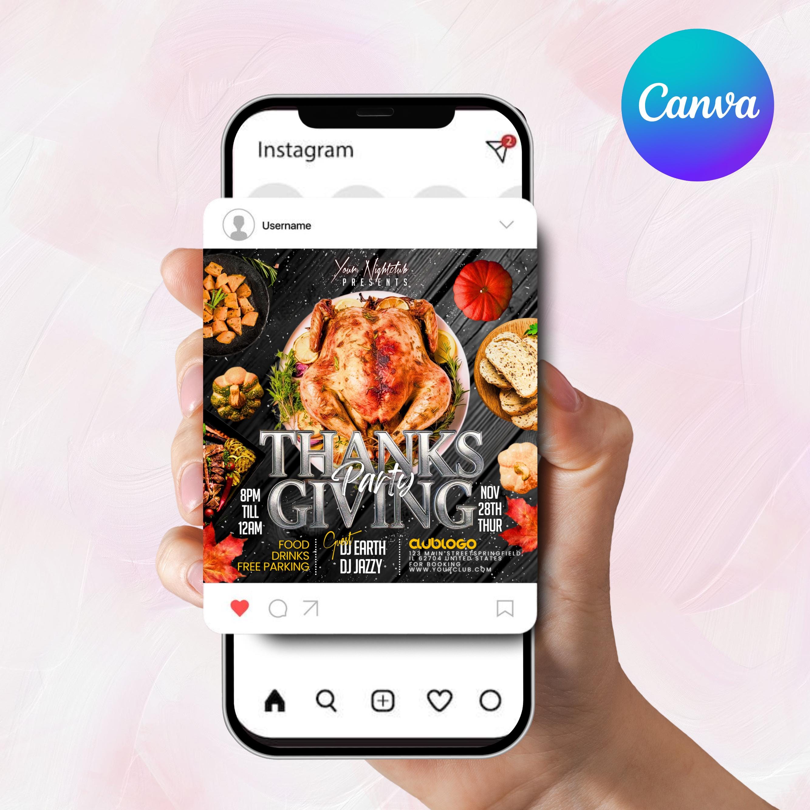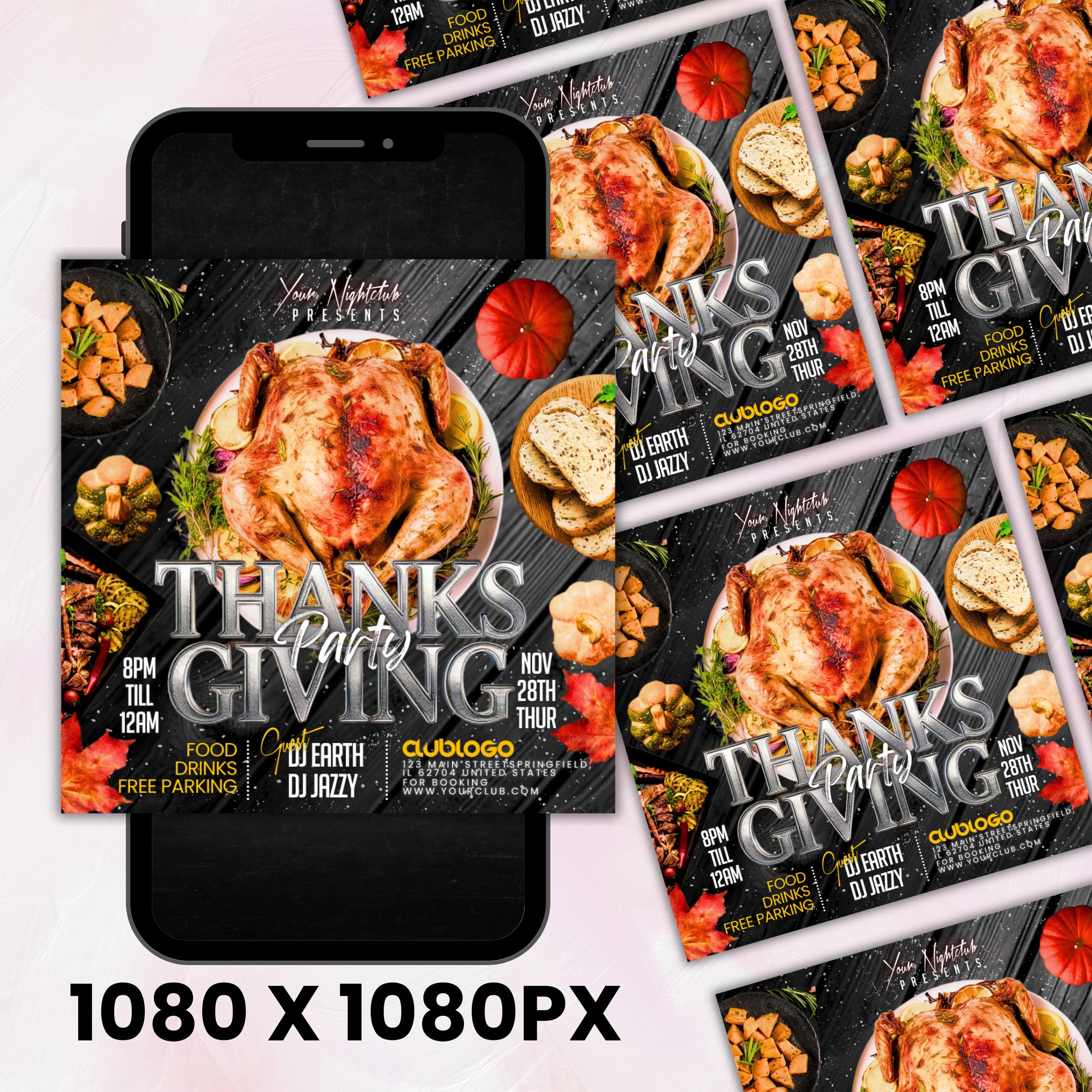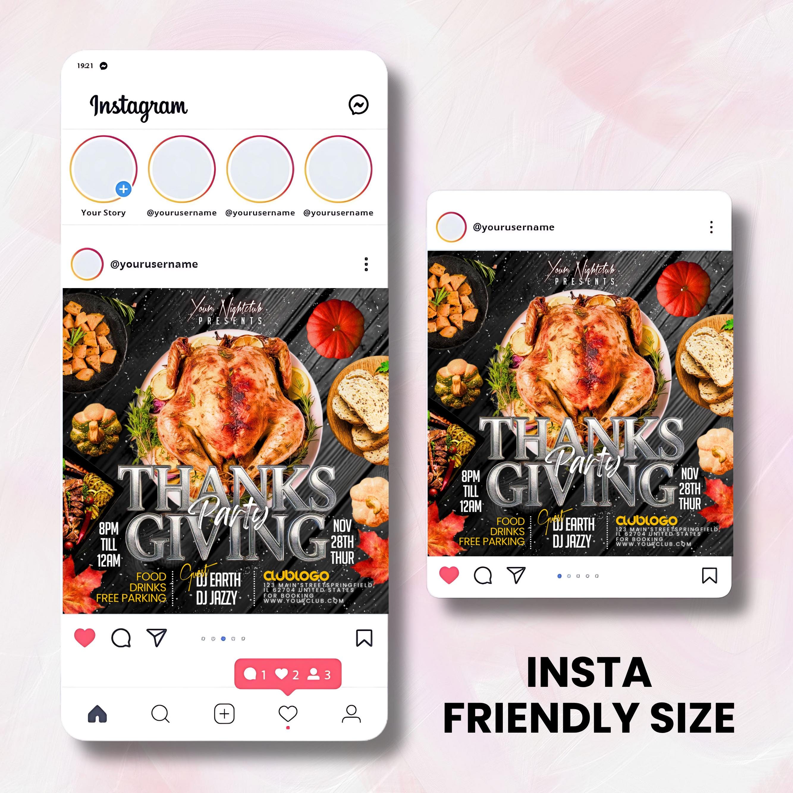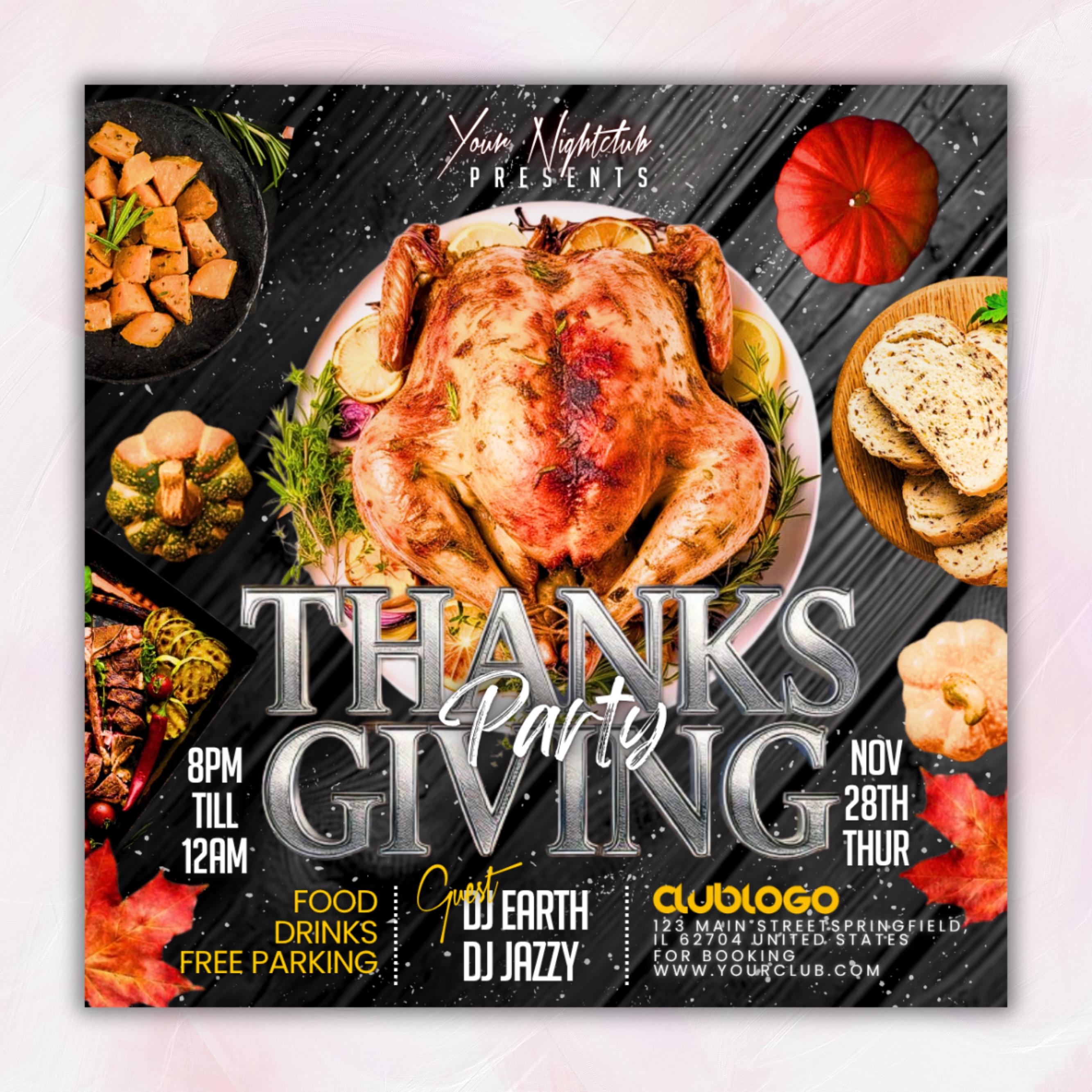 Thanksgiving Party Flyer, Thanksgiving Club Invite, Friendsgiving Dinner Invite, Celebration Flyer, Social Media Flyer, Canva Editable