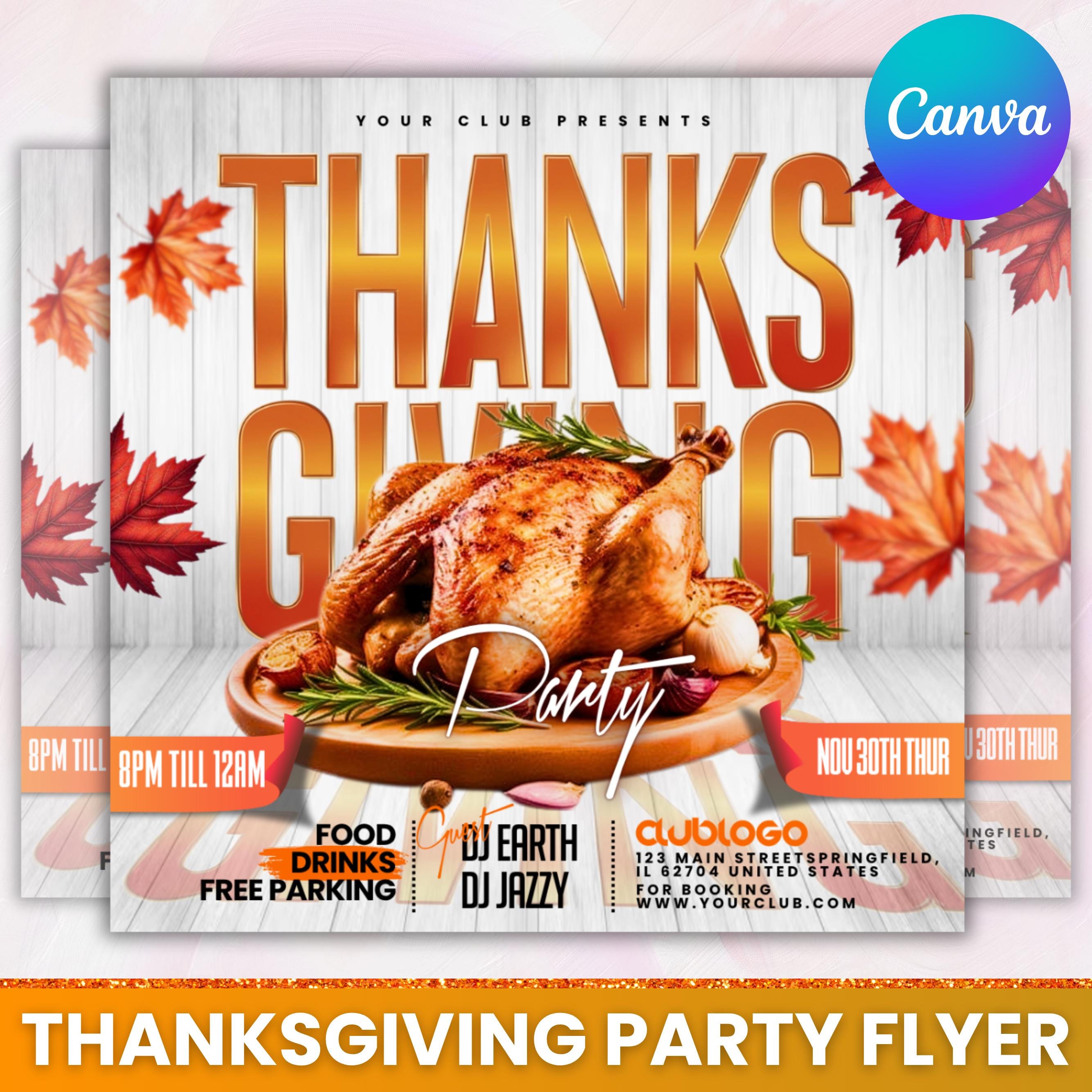 Thanksgiving Party Flyer, Thanksgiving Club Invite, Friendsgiving Dinner Invite, Celebration Flyer, Social Media Flyer, Canva Editable