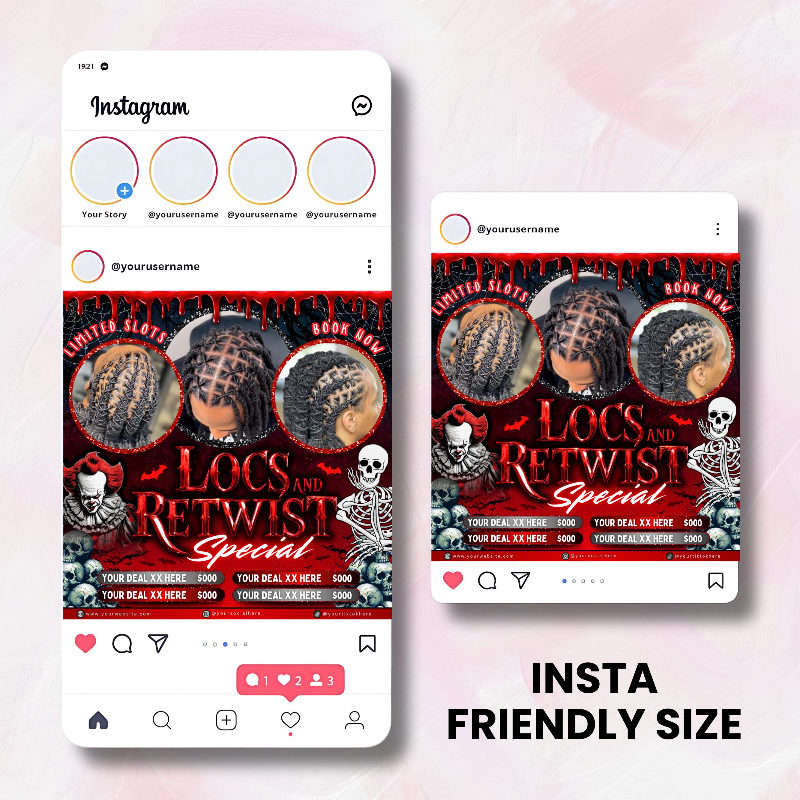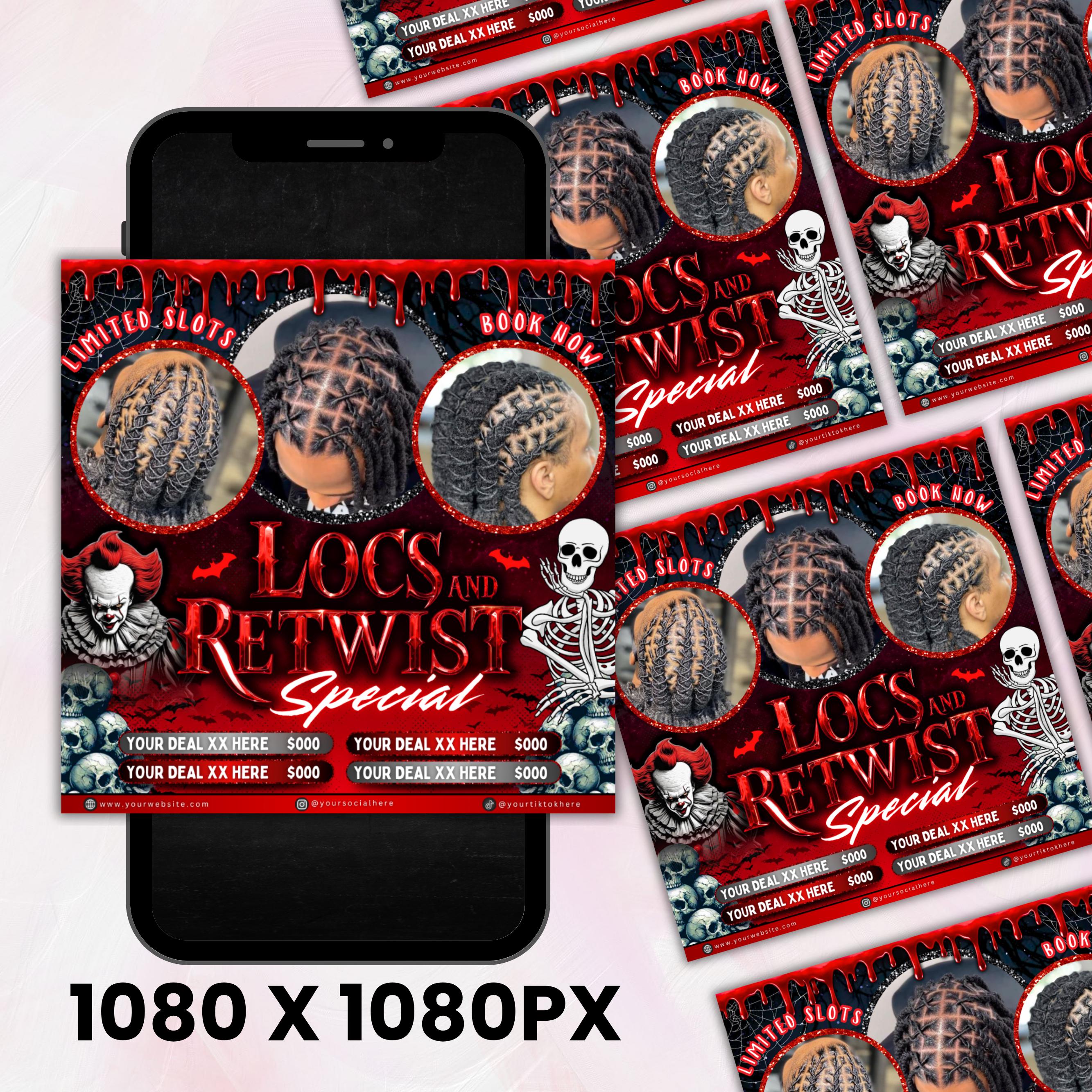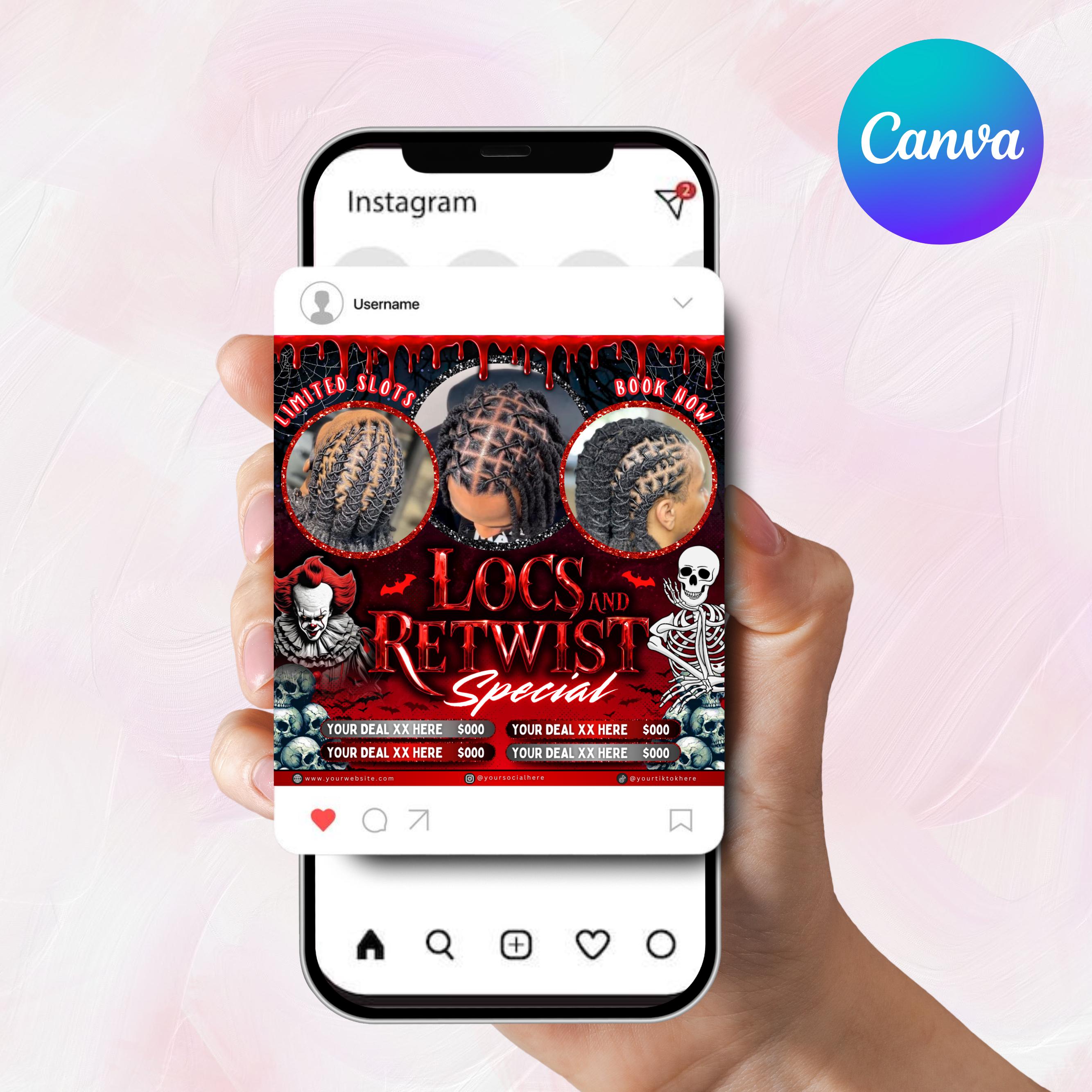 Locs & Retwist Flyer, October Hair Specials, Spooky Szn Booking Template, Spooktober Braids, Loctician Hairstylist Flyer, Canva Editable