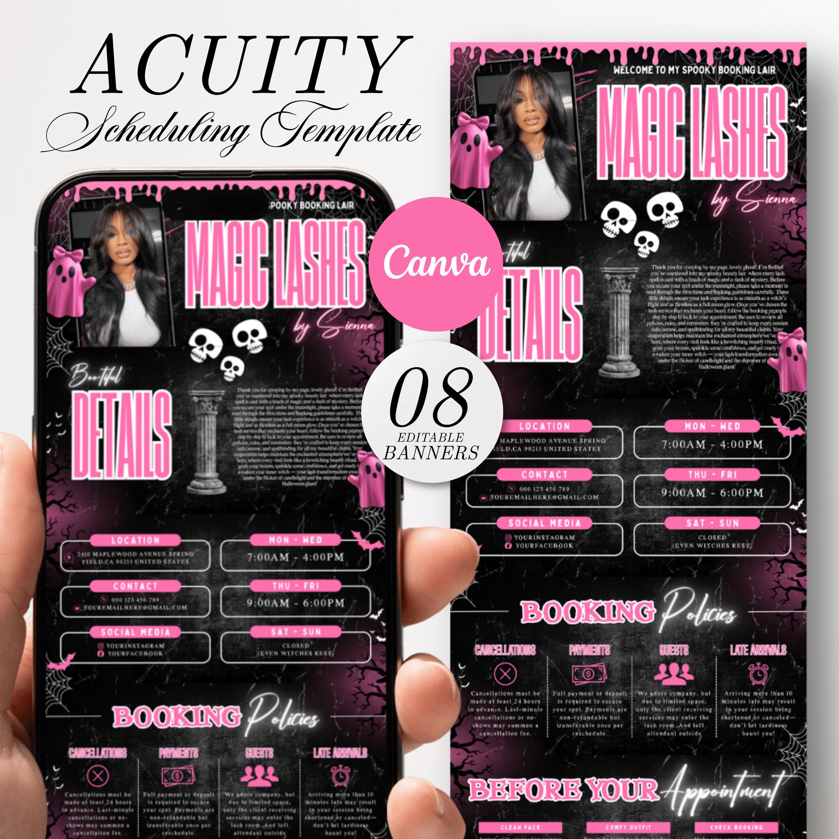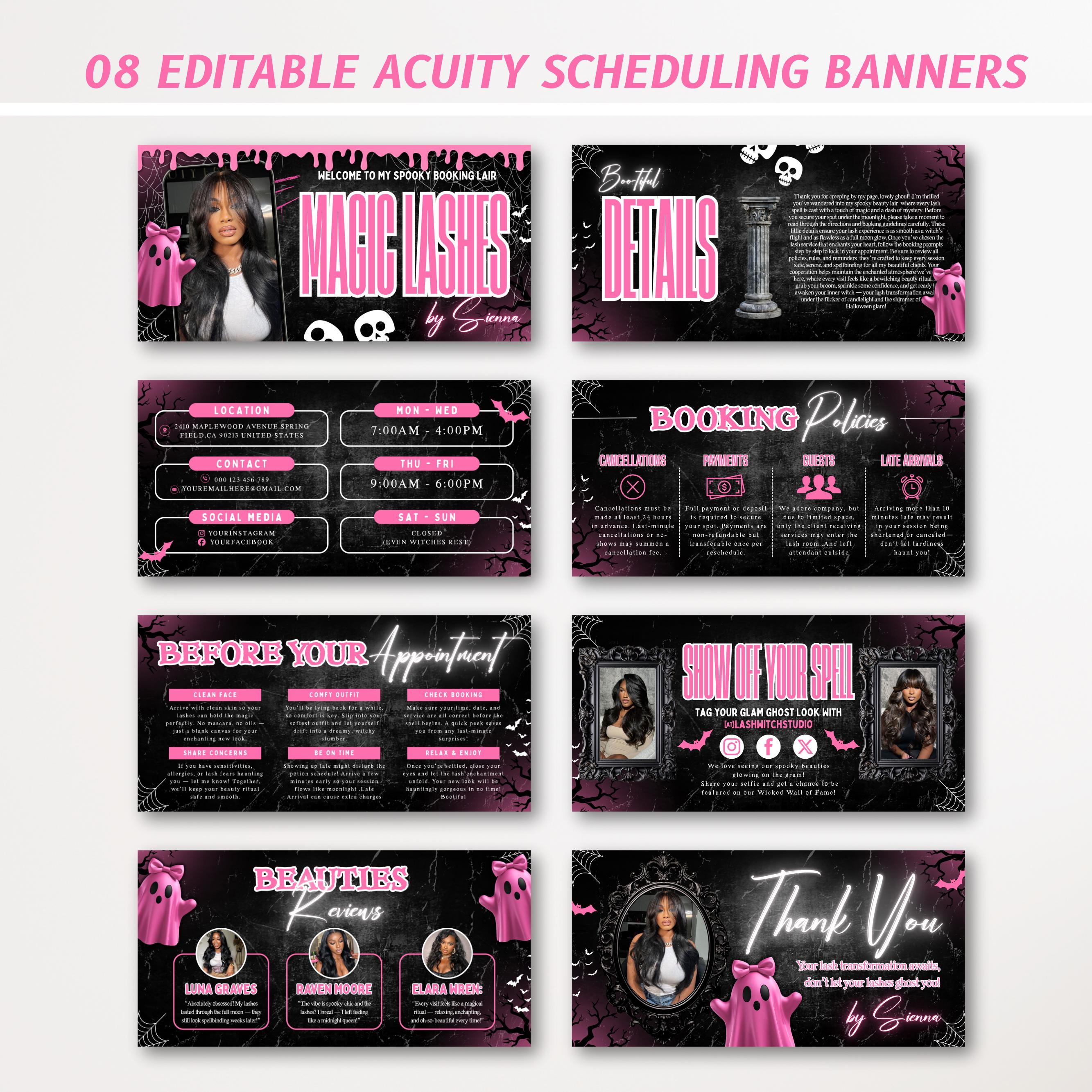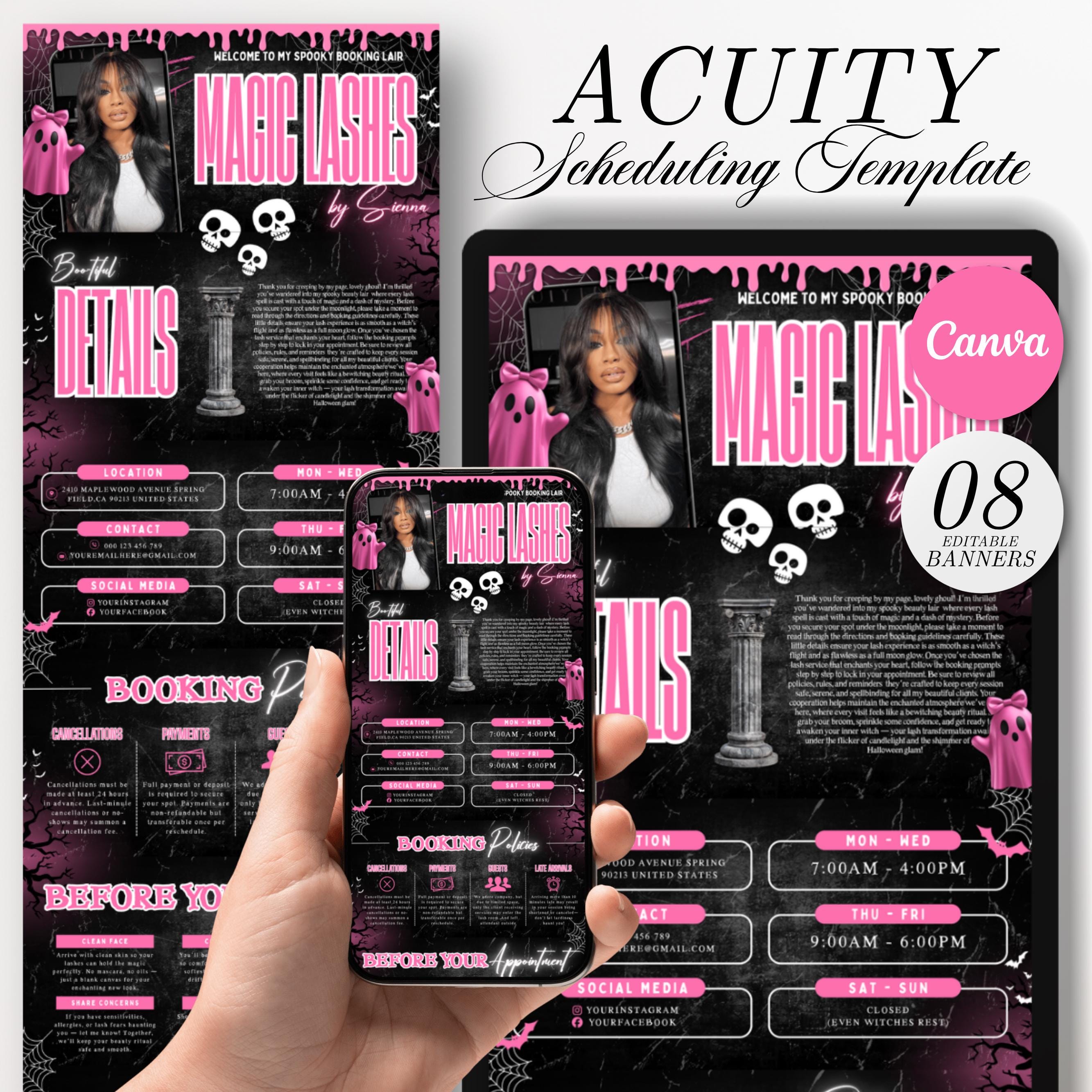 Halloween Acuity Scheduling Template, Halloween Lash Website Template, Lash Artist Web Banners, Black and Pink Acuity Page, Canva Template