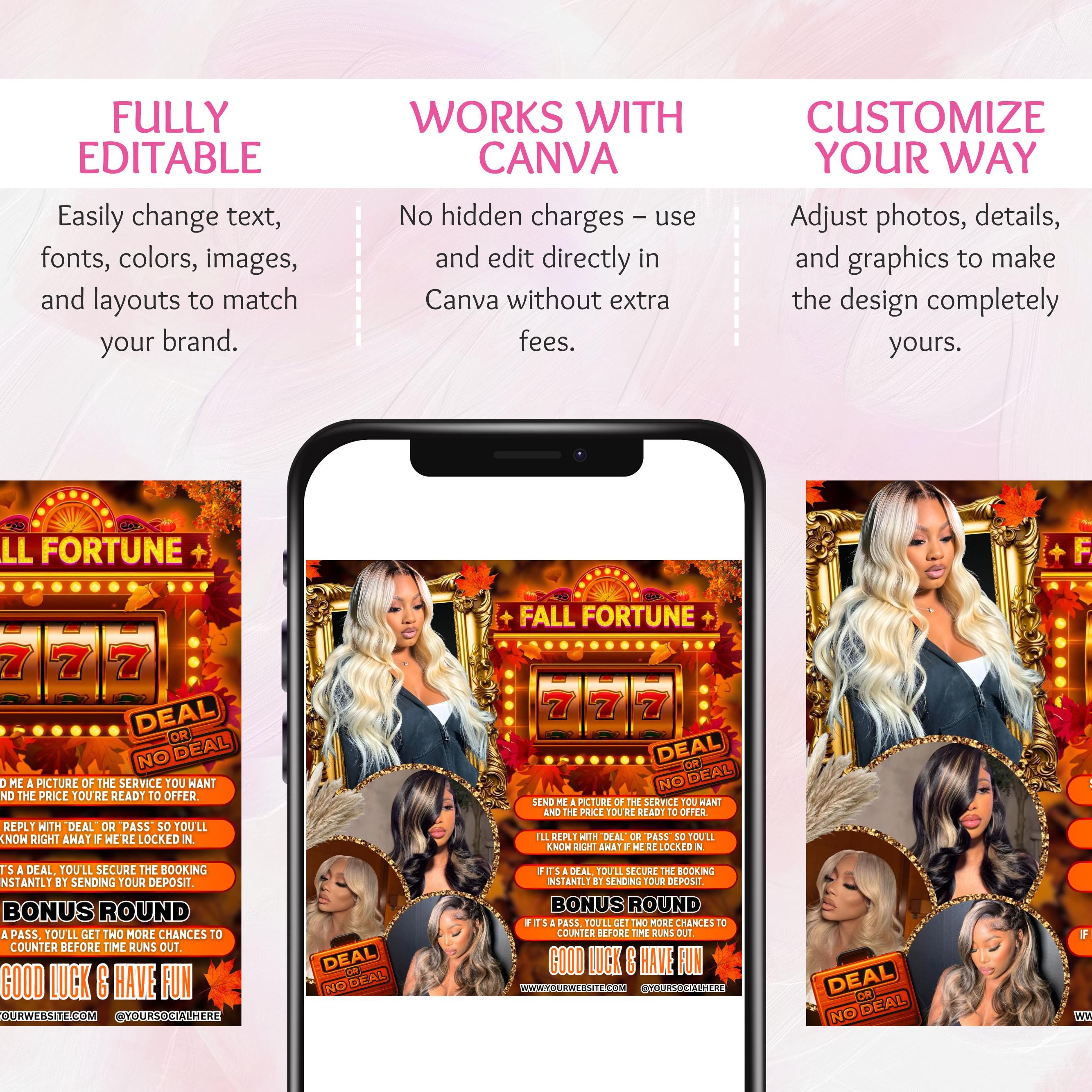 November Deal or No Deal Flyer, November Booking Flyer, November Game Flyer, Deal or No Deal Nail, Deal or No Deal Hair, Canva Editable