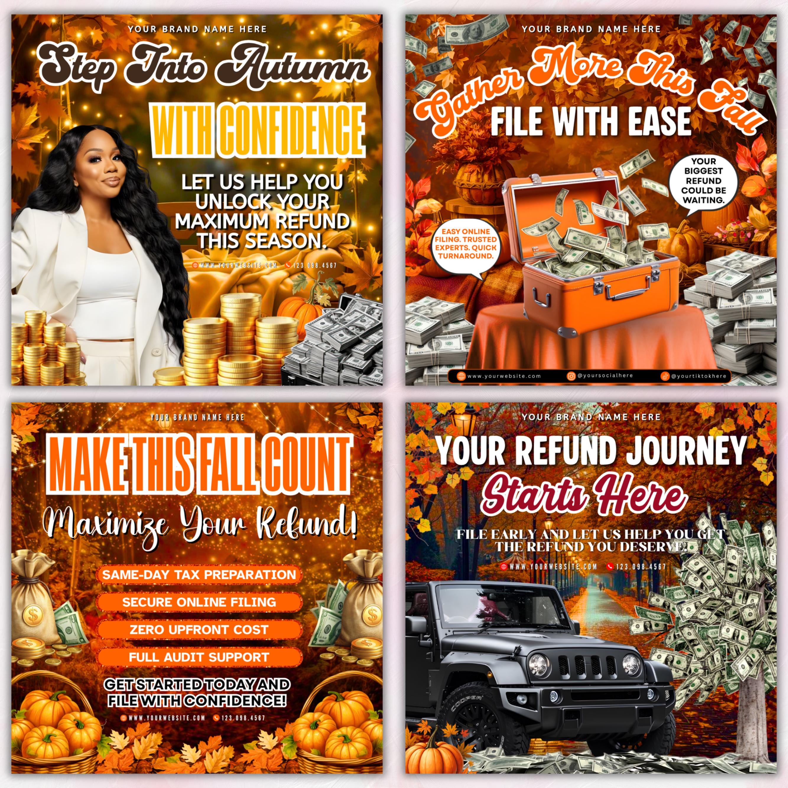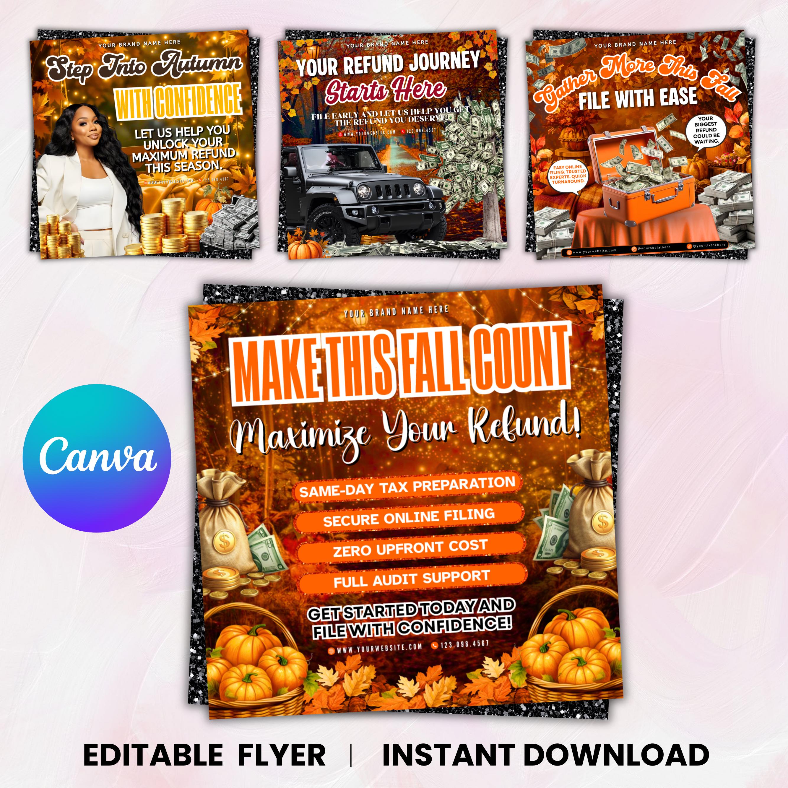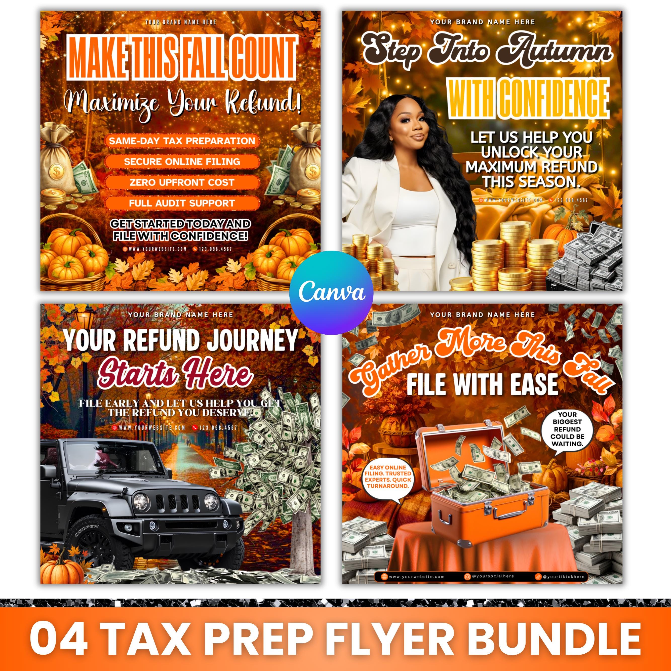 4 Thanksgiving Tax Professional Templates | Tax Prep Flyer | Tax Season 2025 | November Flyer | Tax Prep Bundle | Credit | Canva Template