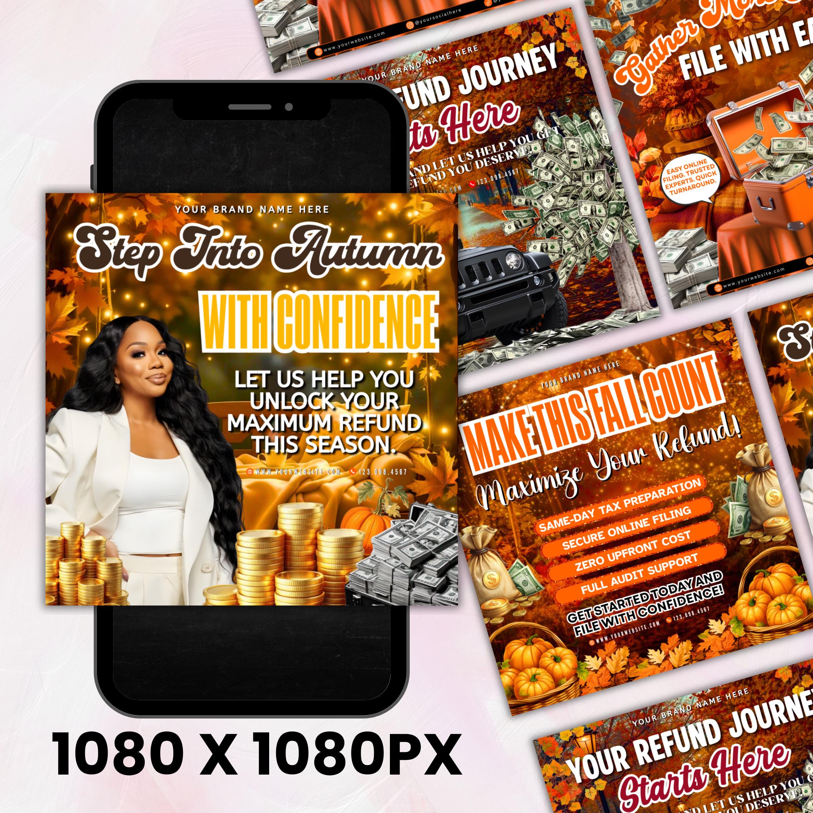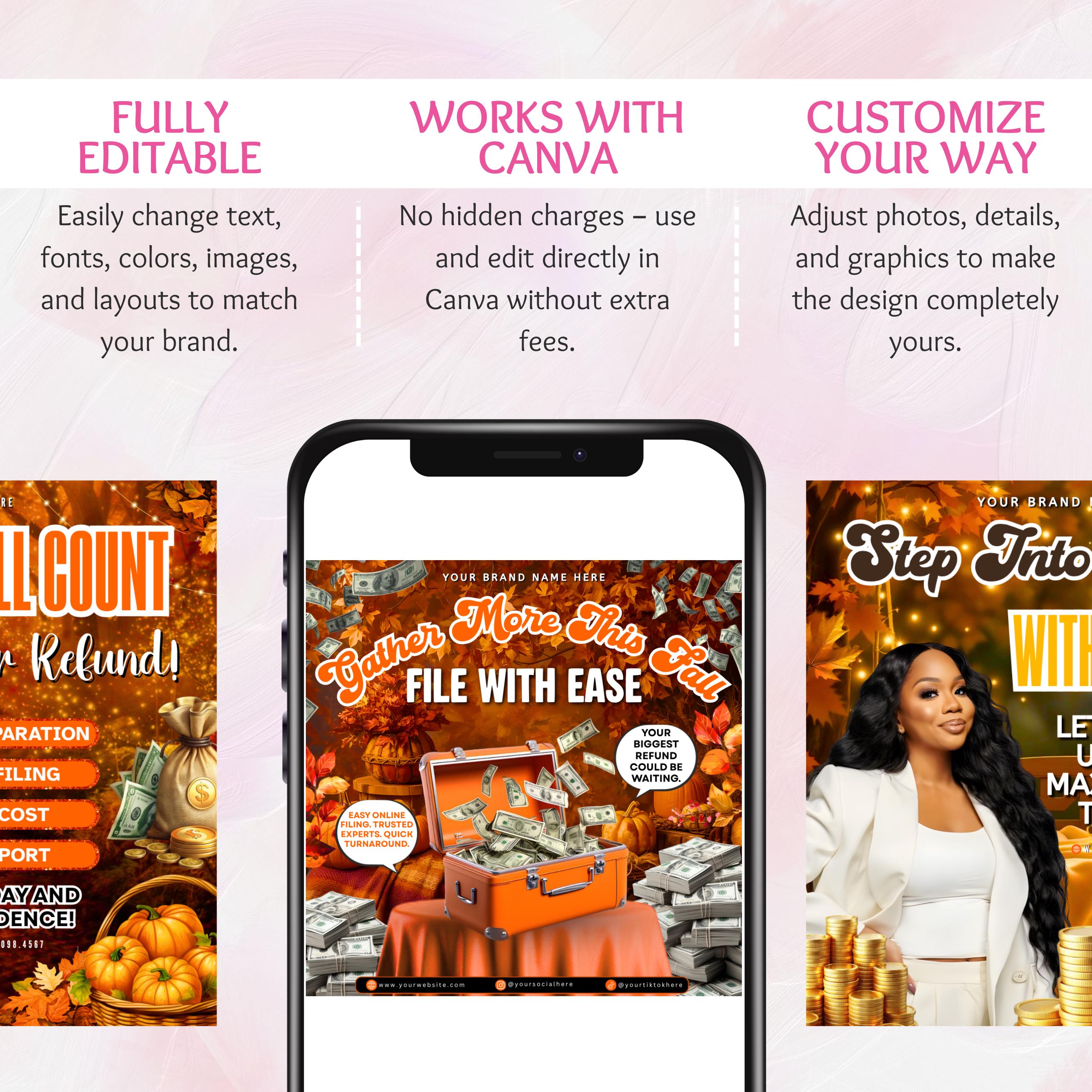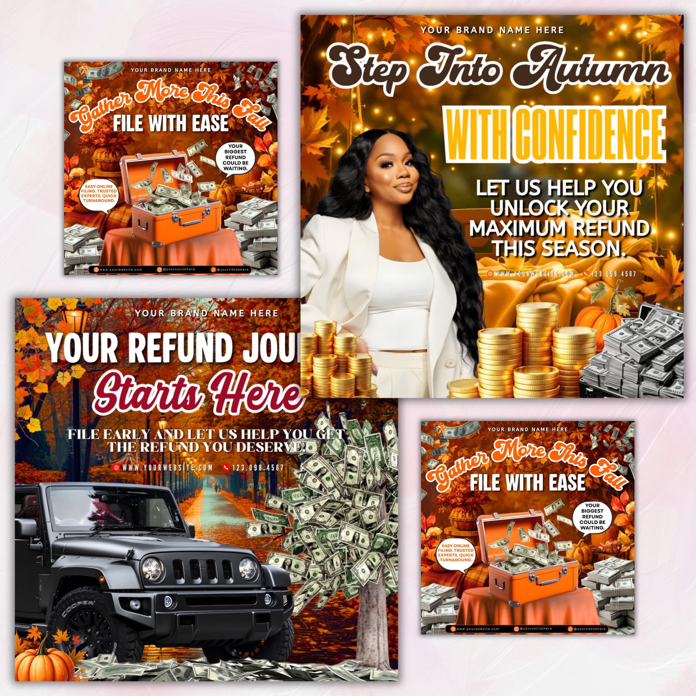 4 Thanksgiving Tax Professional Templates | Tax Prep Flyer | Tax Season 2025 | November Flyer | Tax Prep Bundle | Credit | Canva Template