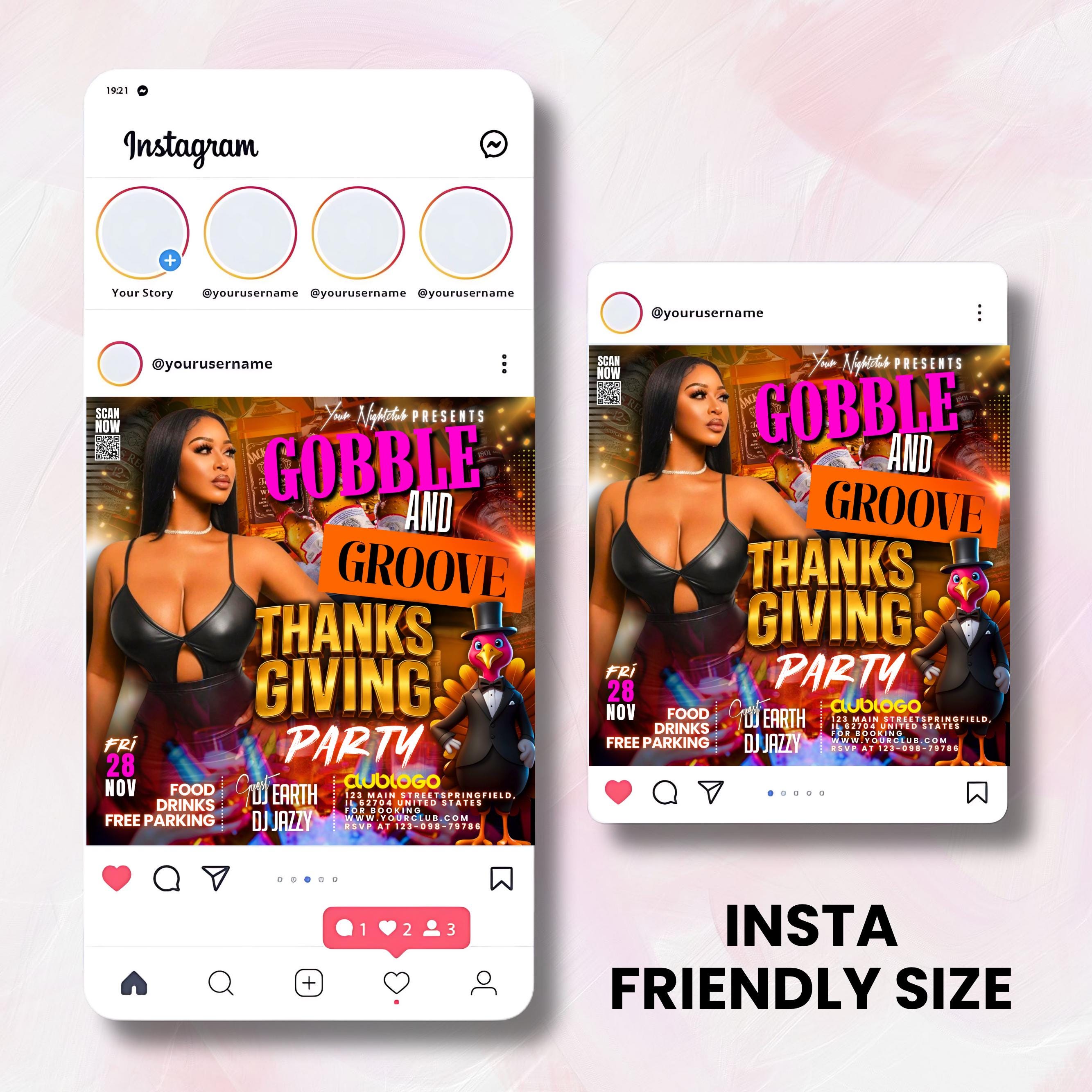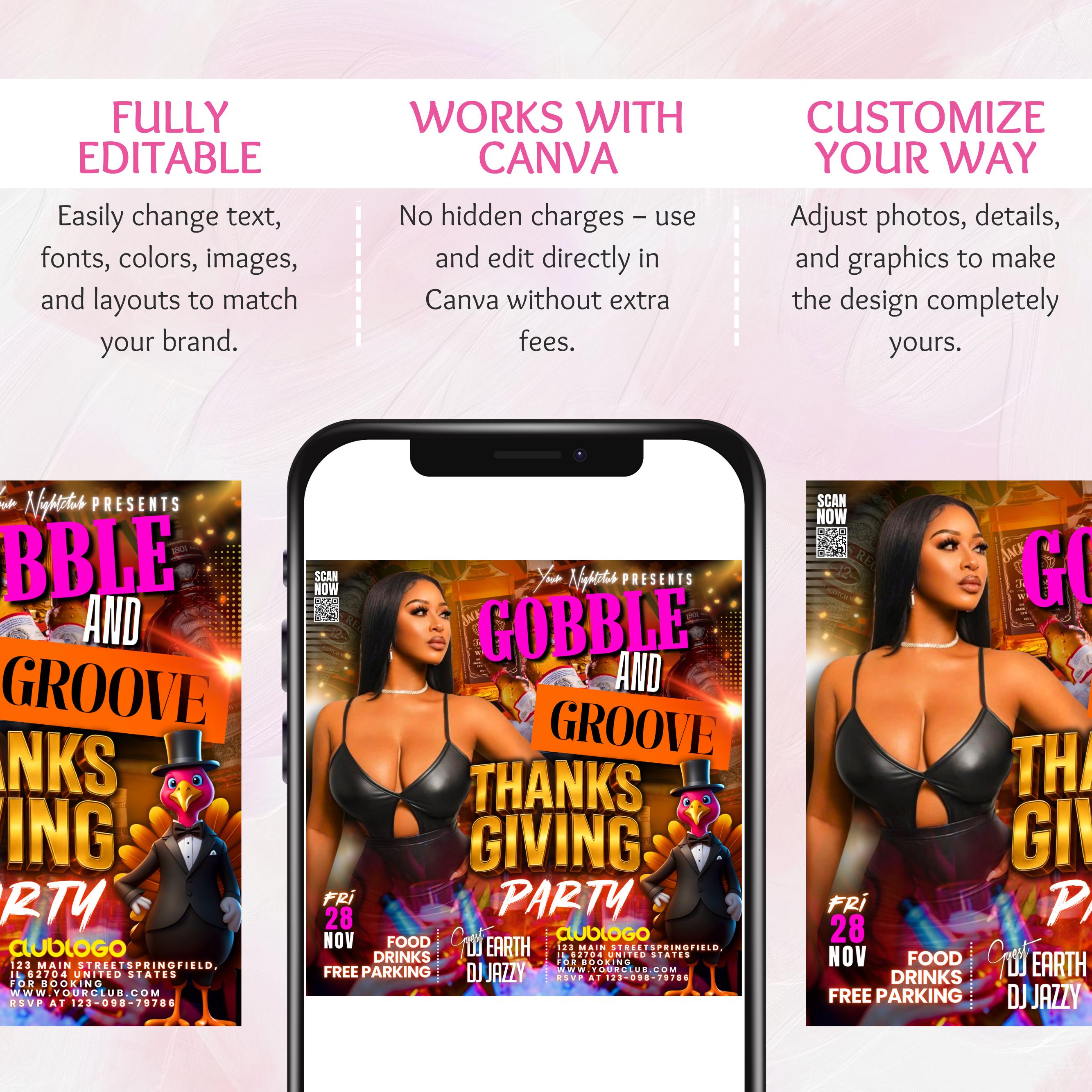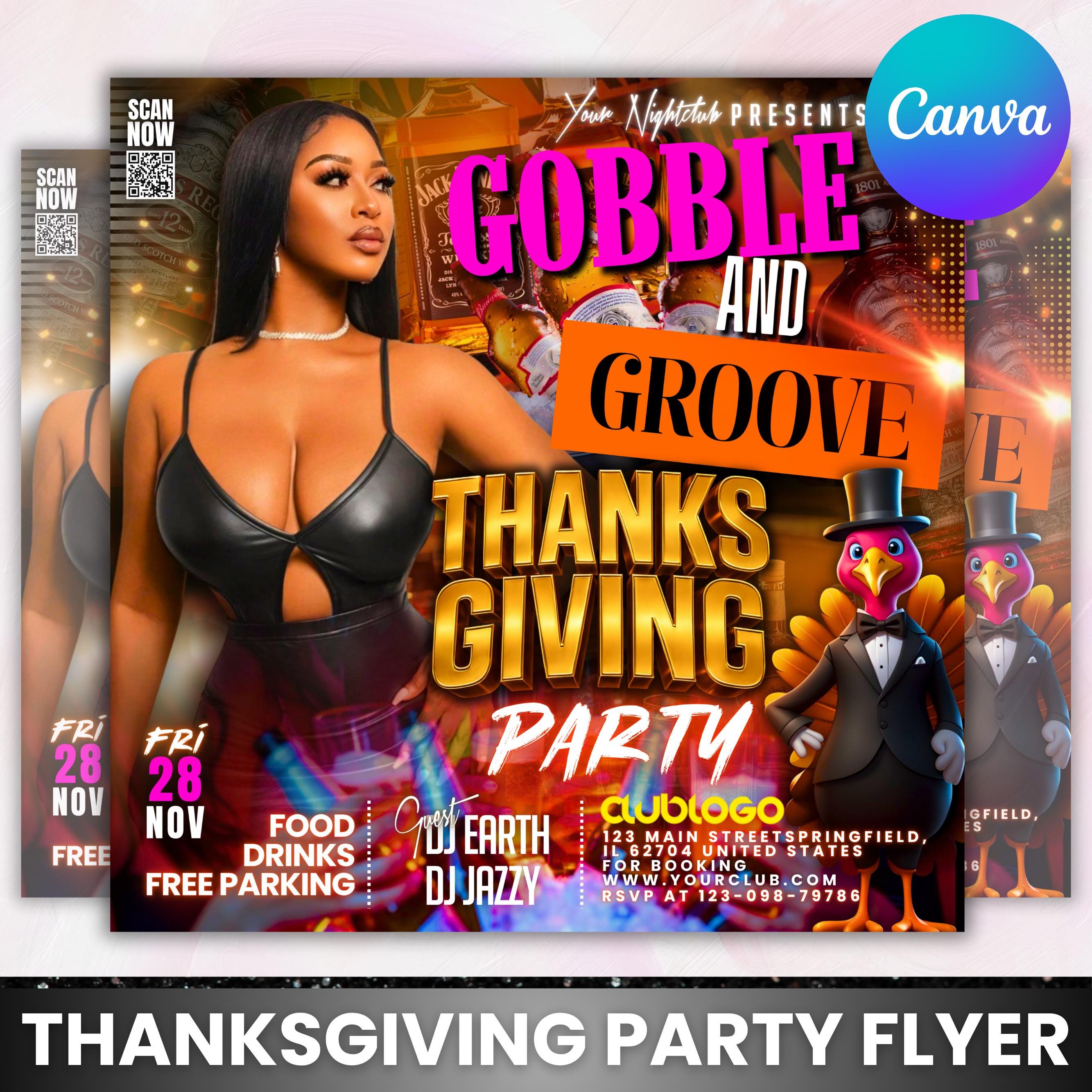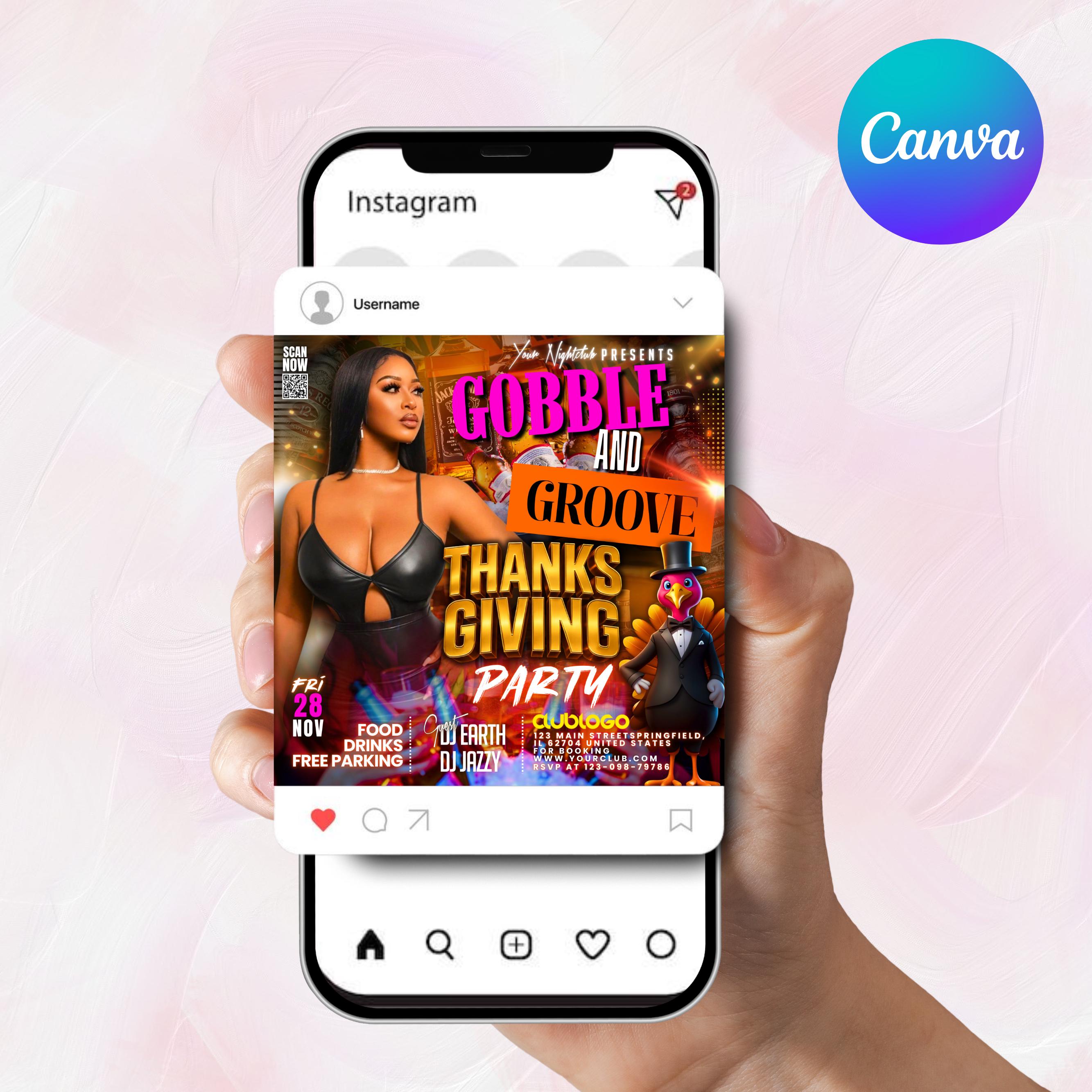 Thanksgiving Party Flyer, Thanksgiving Club Invite, Friendsgiving Dinner Invite, Celebration Flyer, Social Media Flyer, Canva Editable