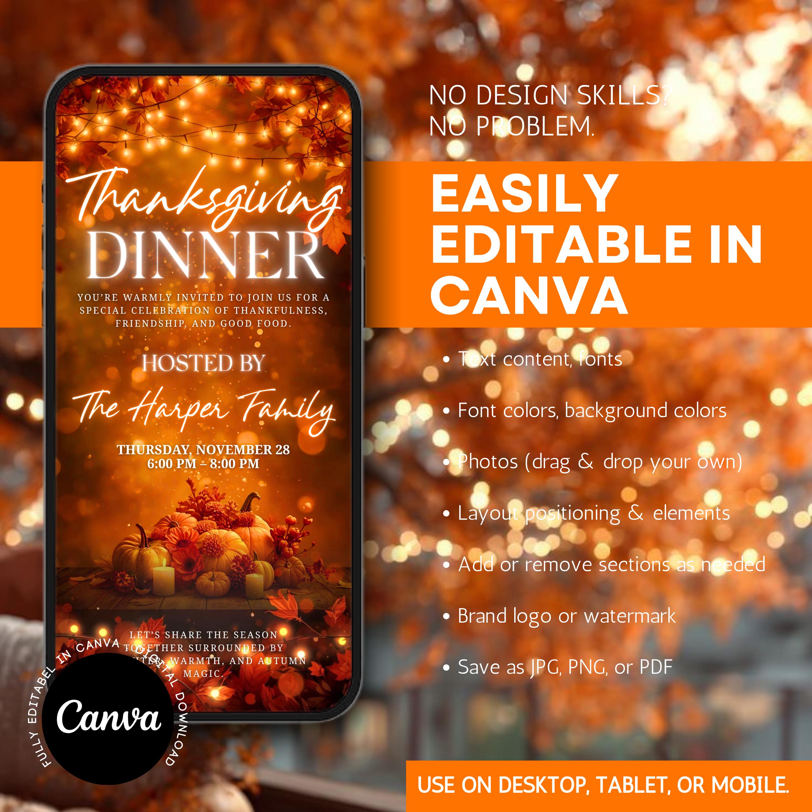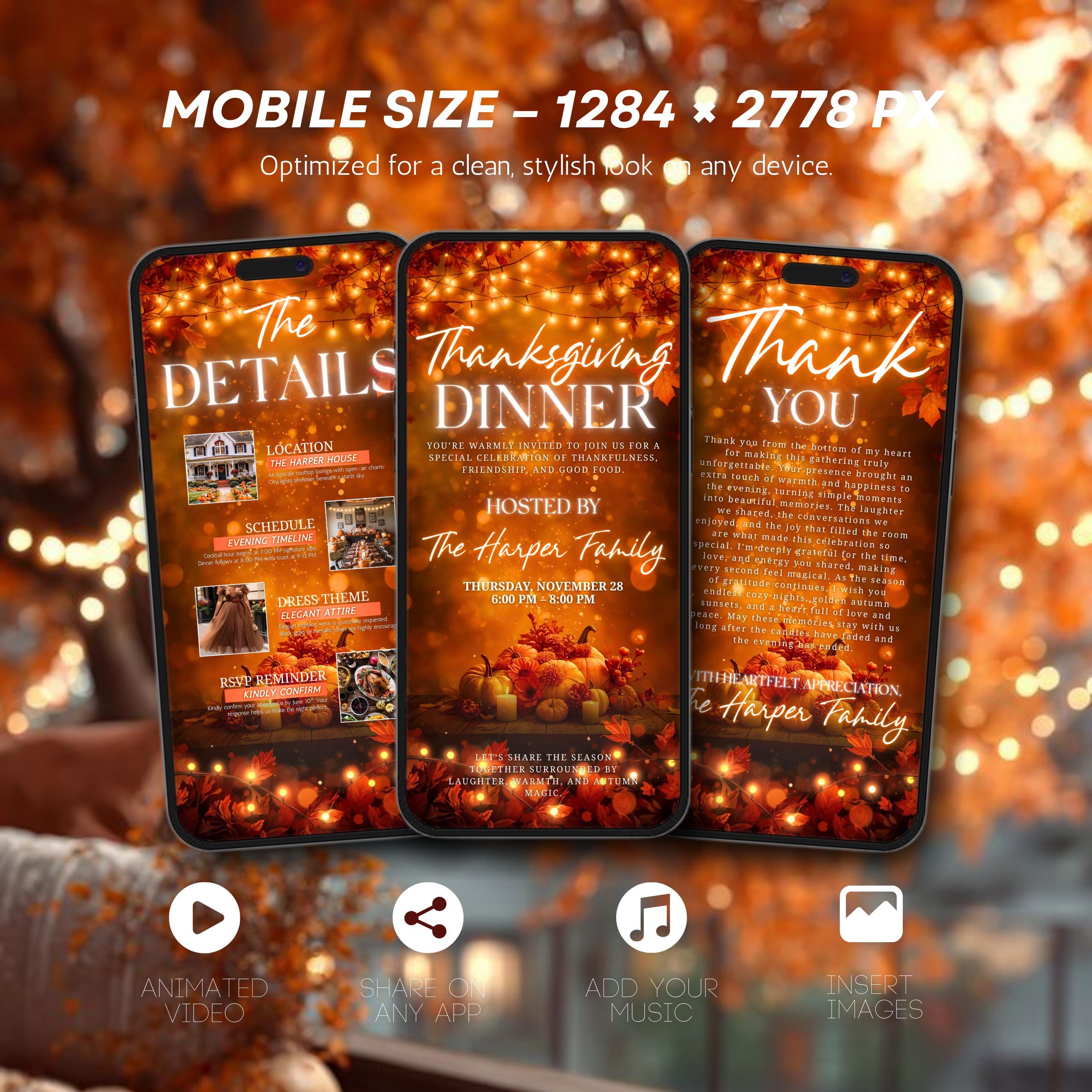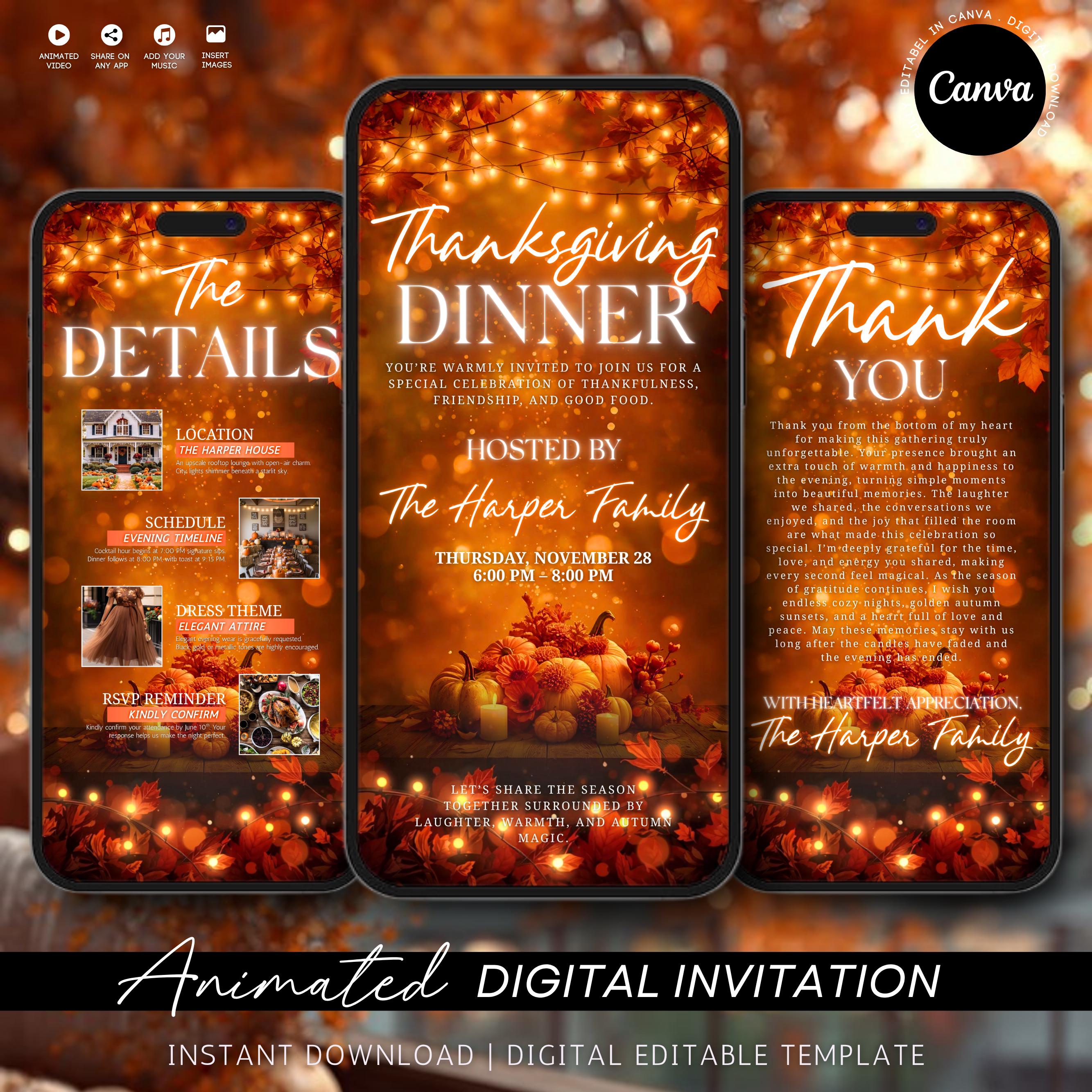 Animated Thanksgiving Cozy Pumpkin Dinner Invitation: Editable Thanksgiving Invite Digital Download Template Fall Dinner Celebration Invite