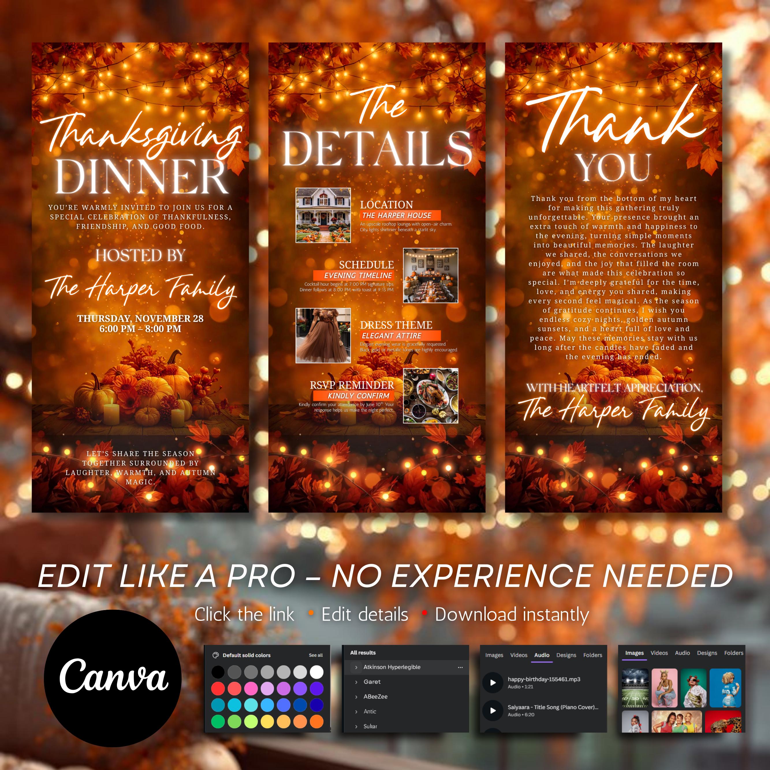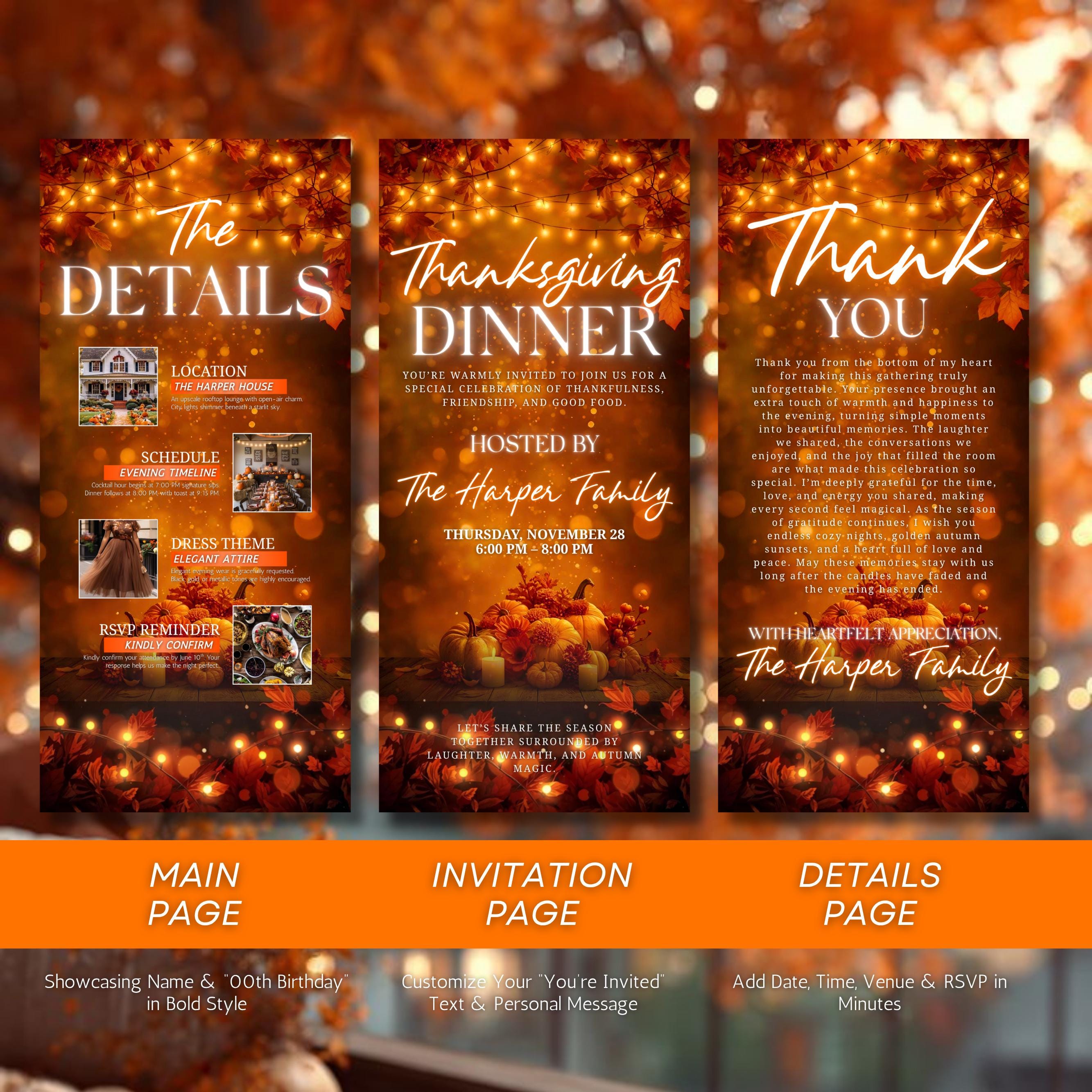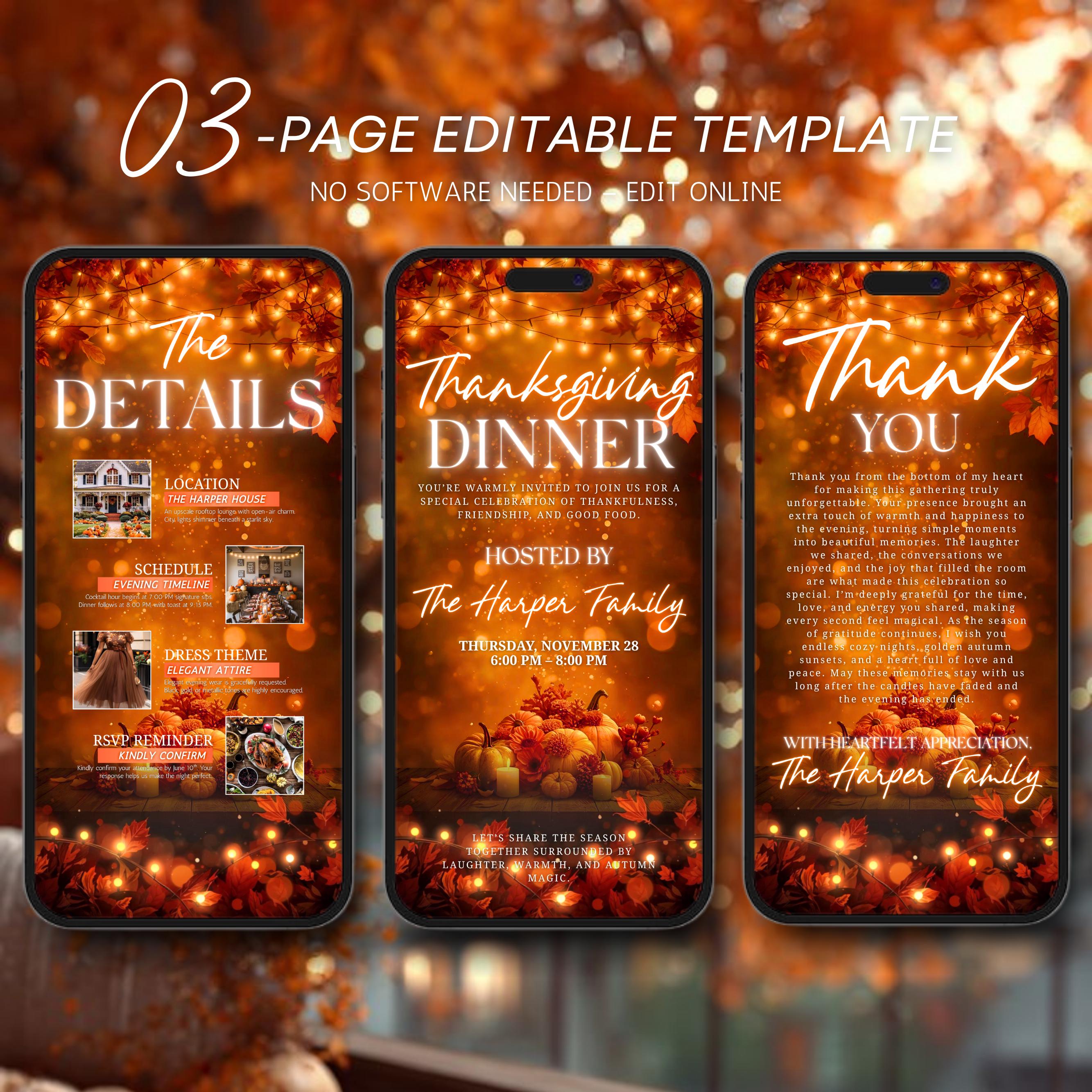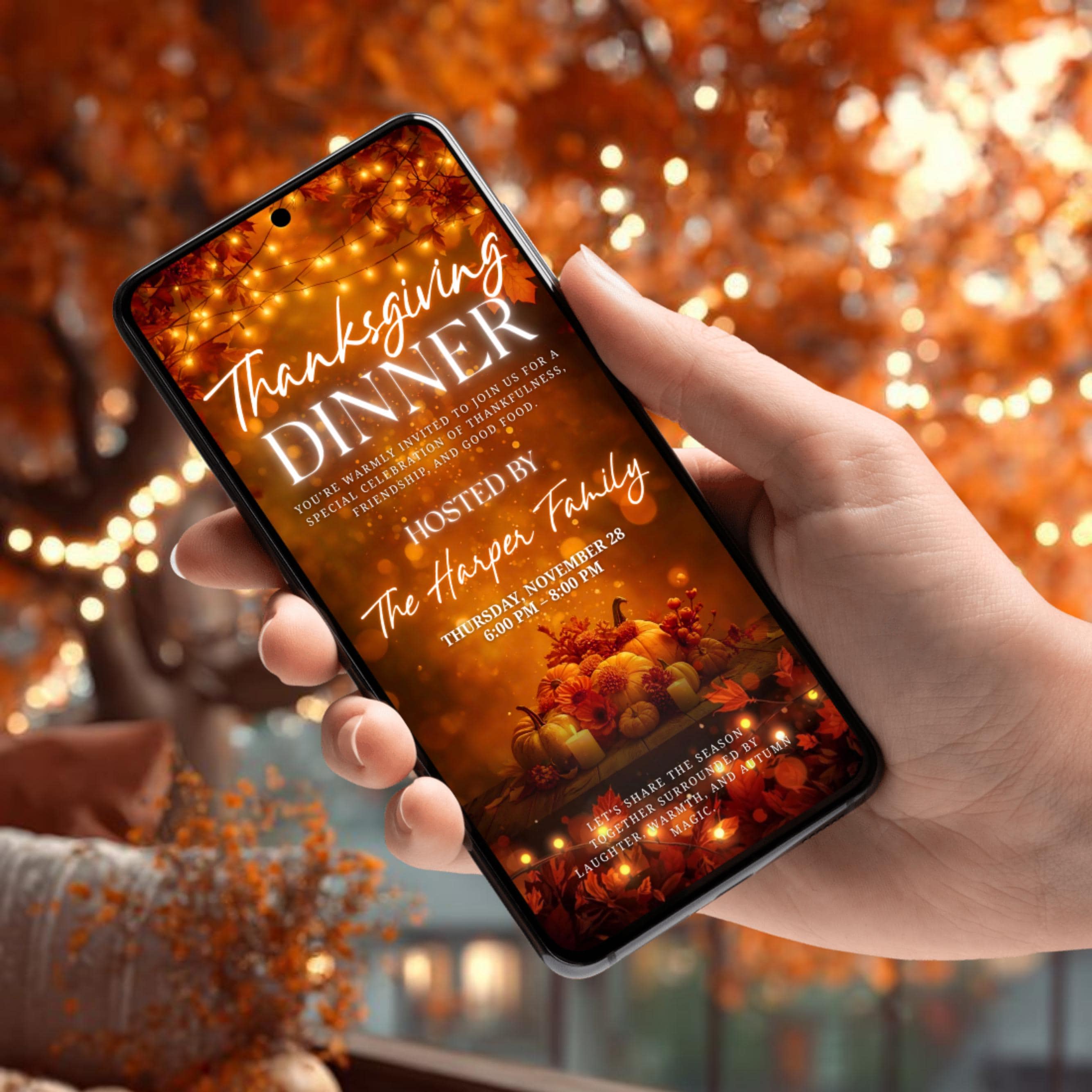 Animated Thanksgiving Cozy Pumpkin Dinner Invitation: Editable Thanksgiving Invite Digital Download Template Fall Dinner Celebration Invite