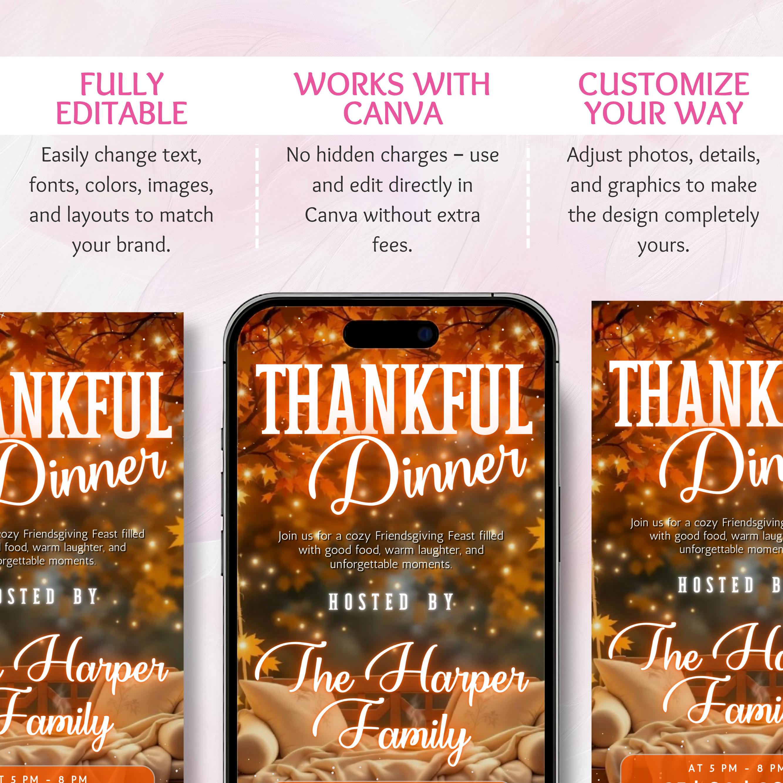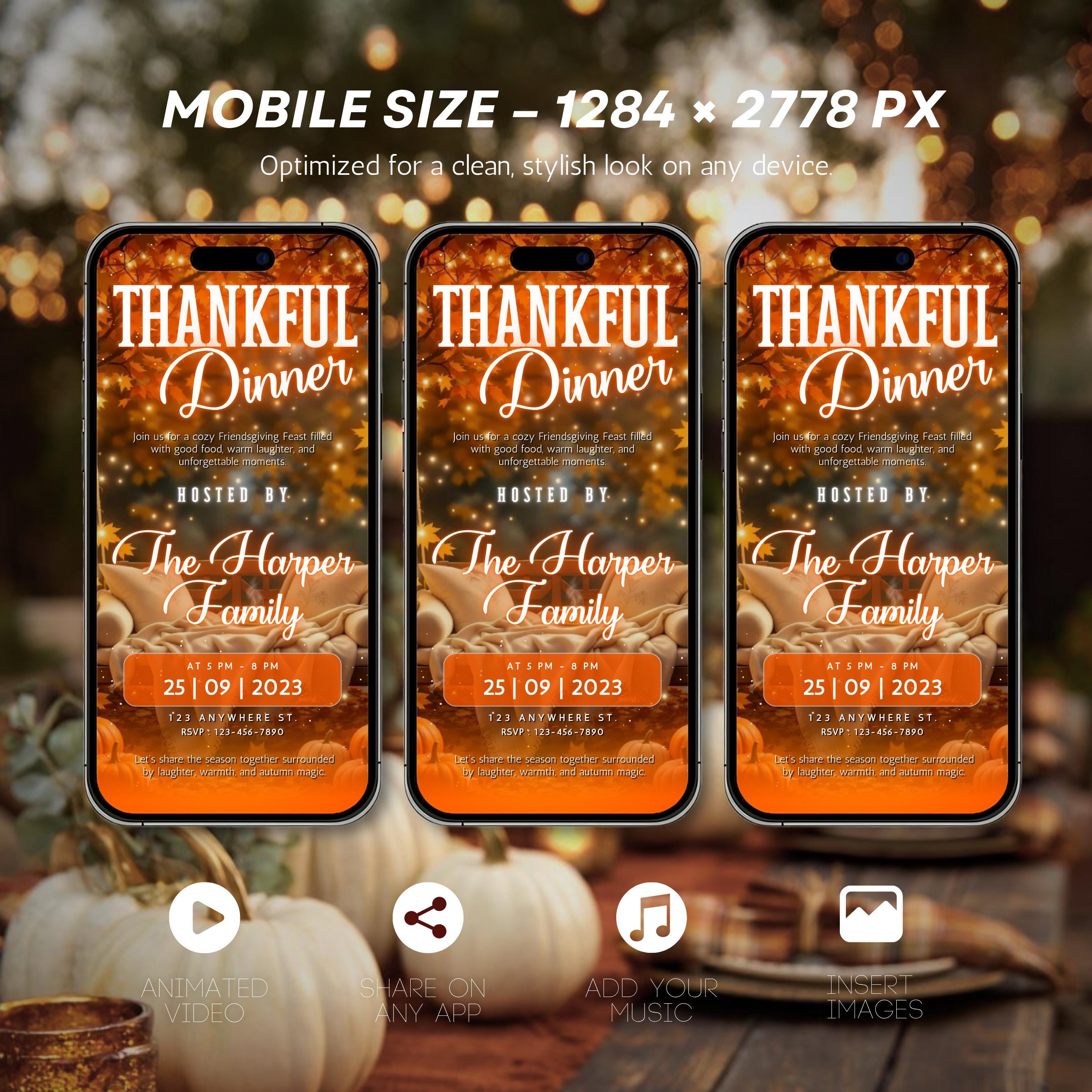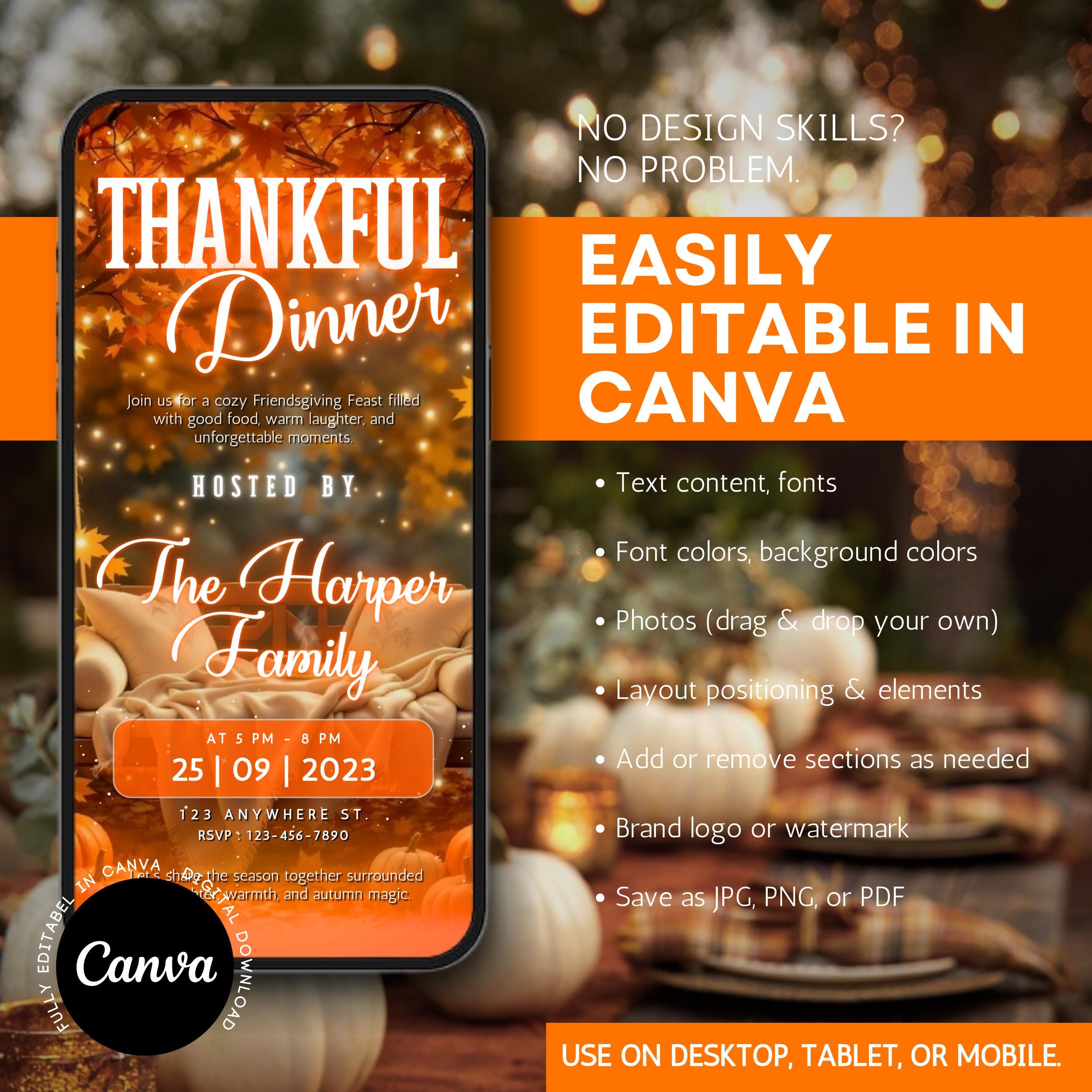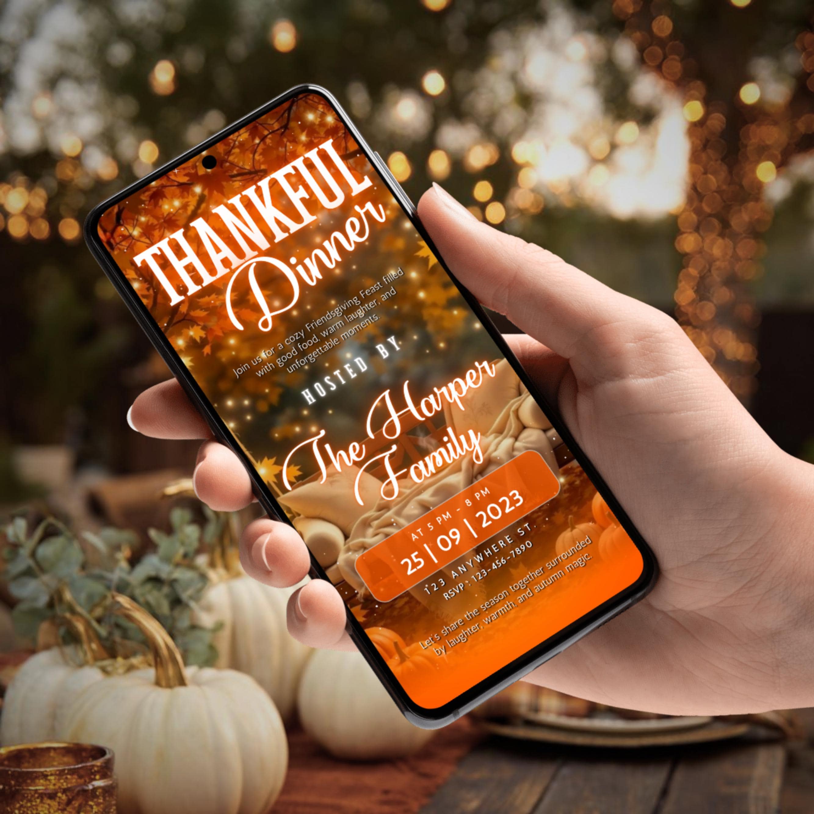 Animated Thanksgiving Cozy Pumpkin Dinner Invitation: Editable Thanksgiving Invite Digital Download Template Fall Dinner Celebration Invite