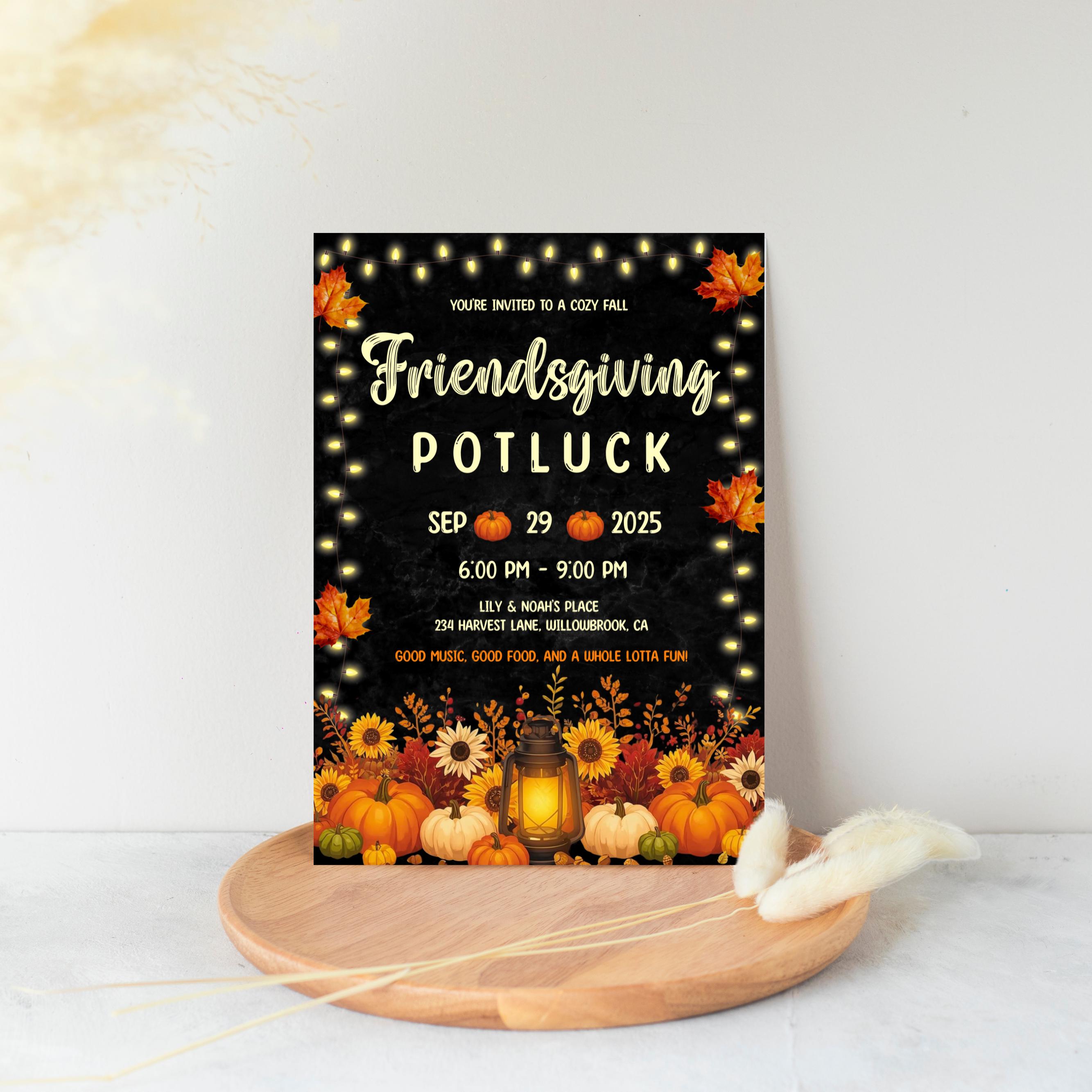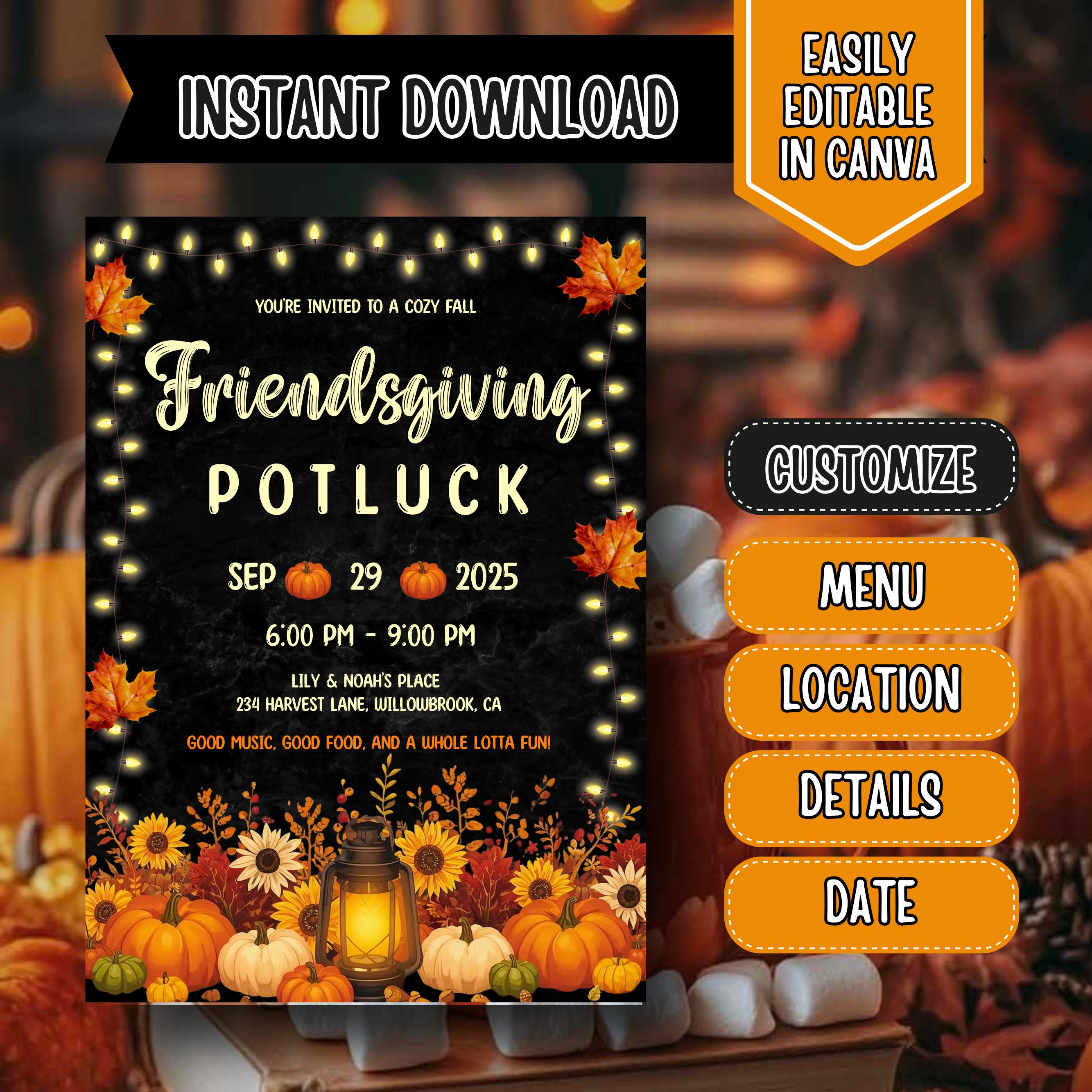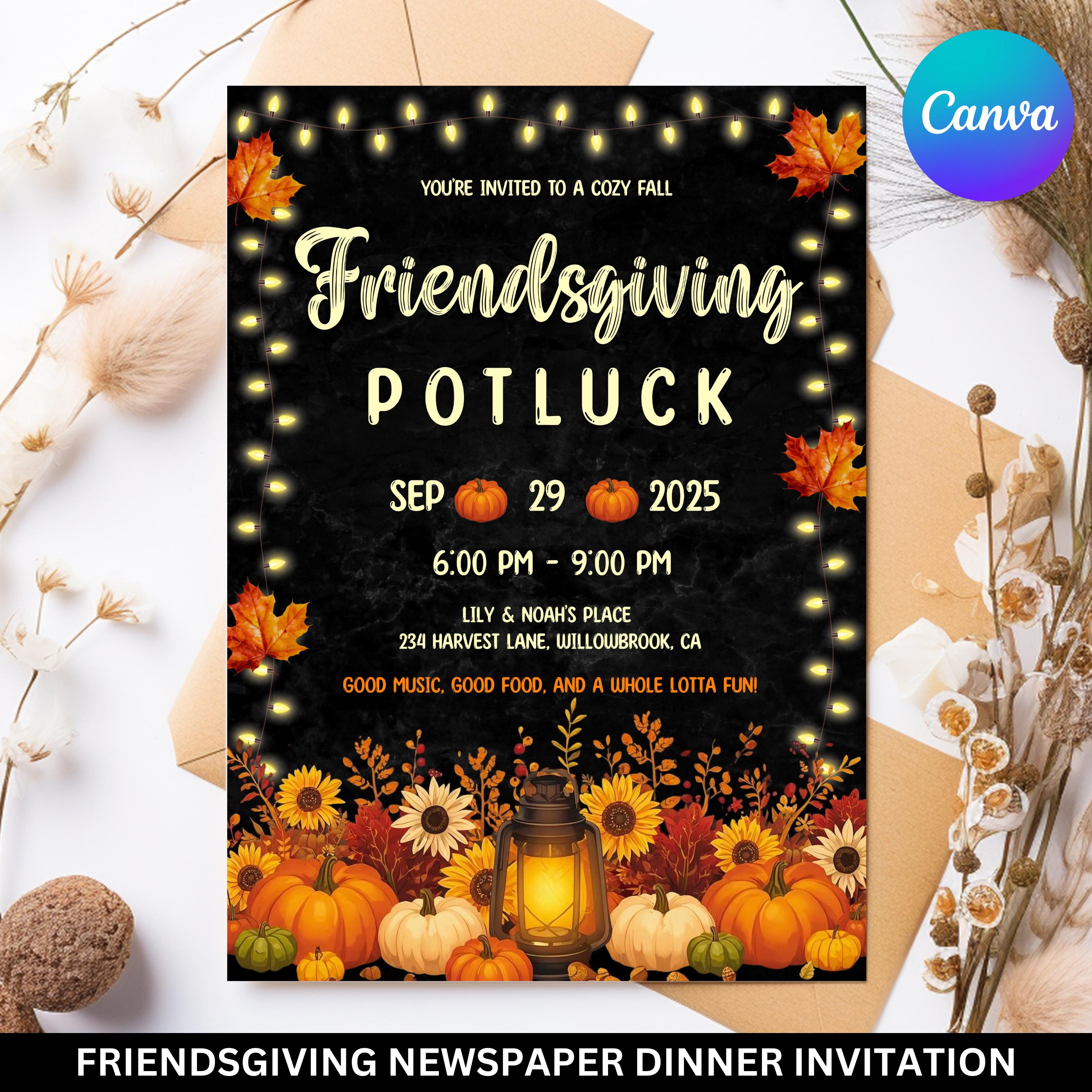 Friendsgiving Dinner Invitation, Thanksgiving Party Invite, Friendsgiving Potluck Invite, Friendsgiving Party Invite,Editable Canva Template