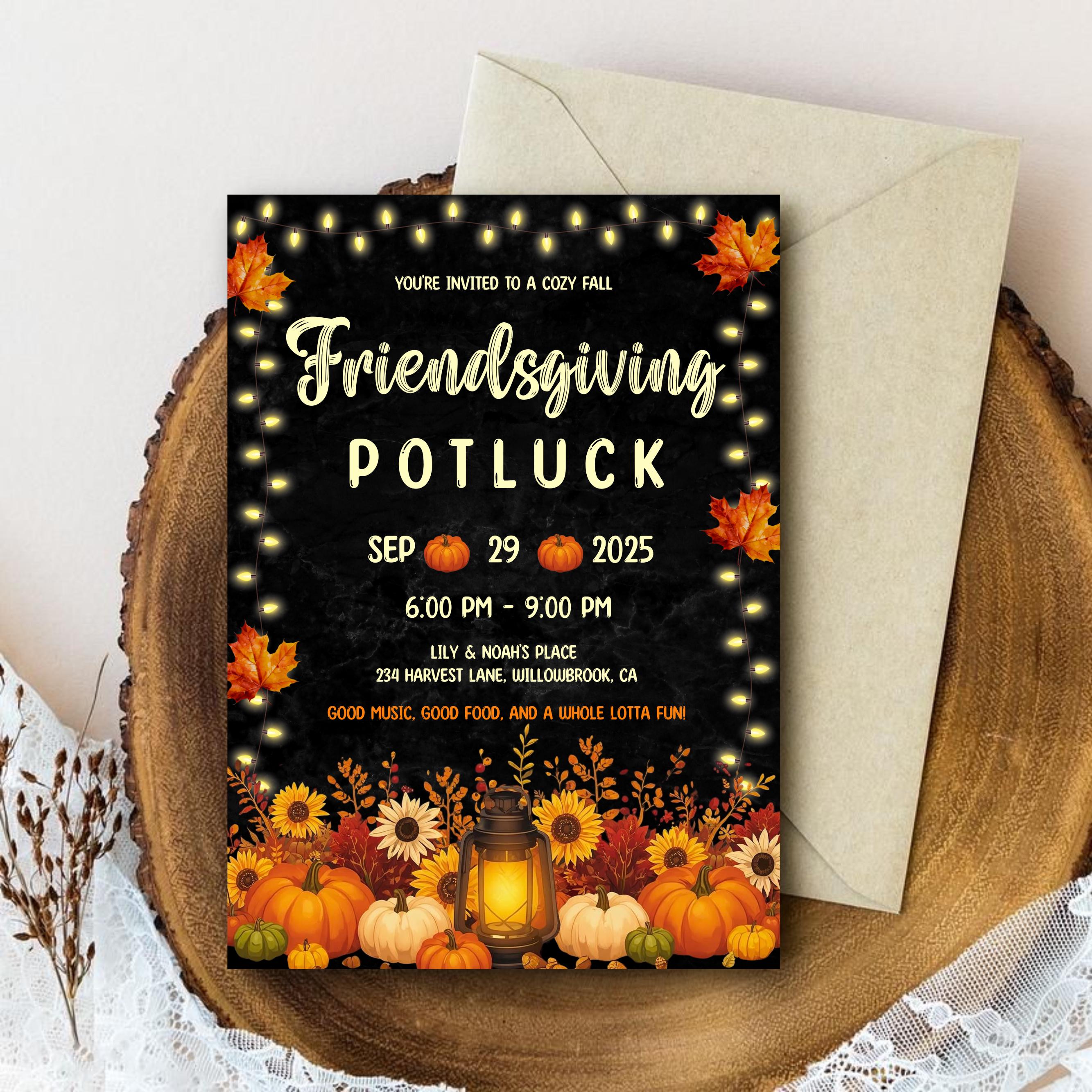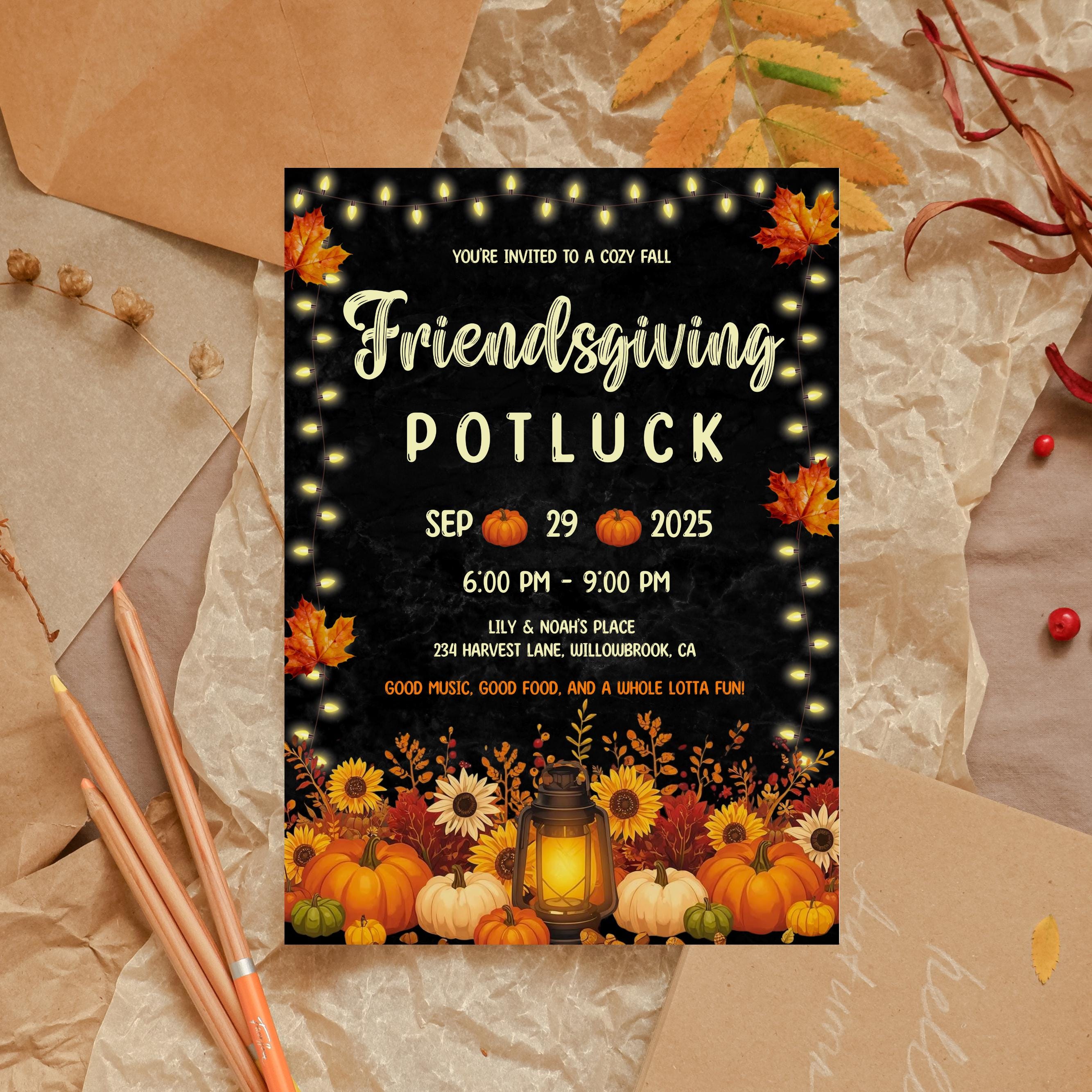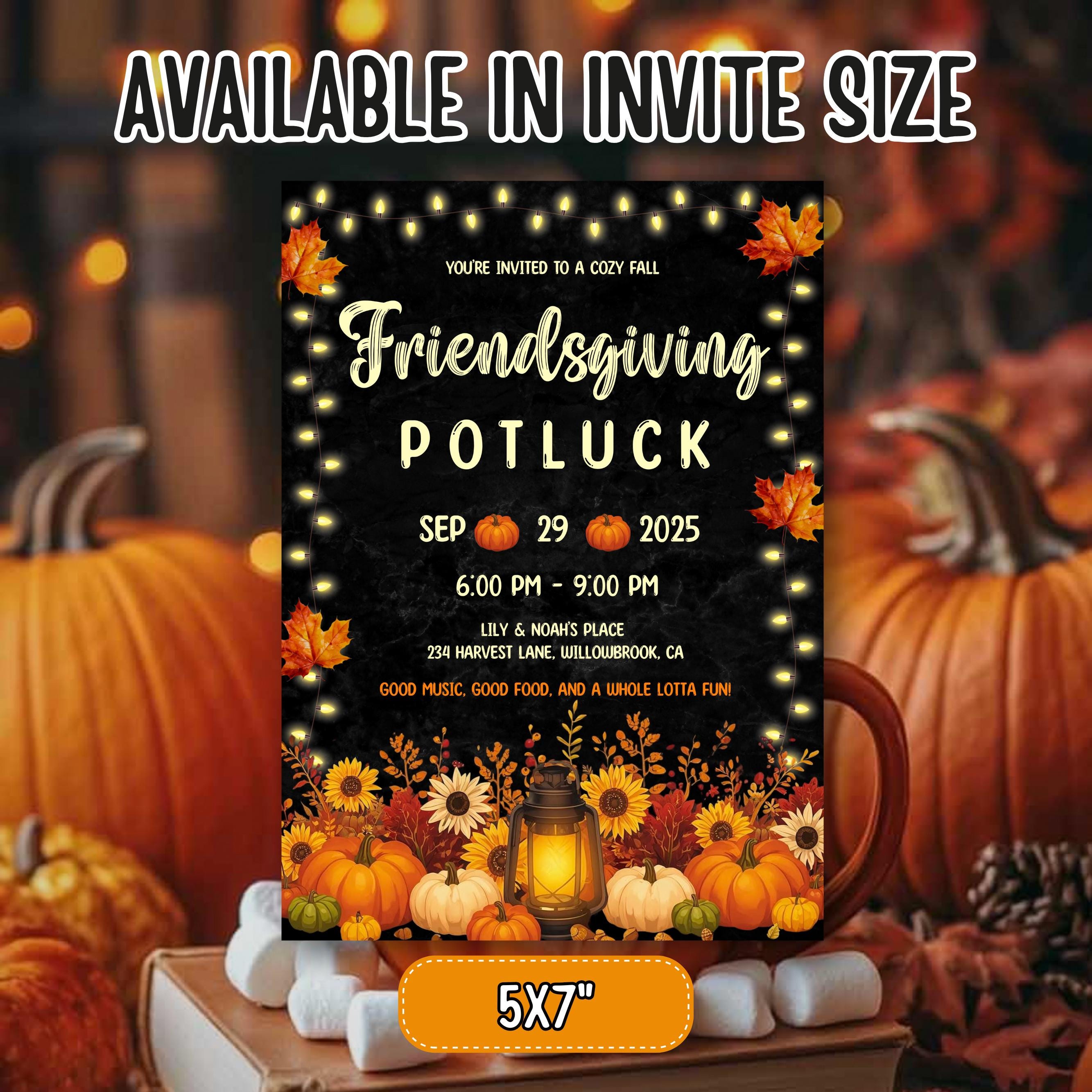 Friendsgiving Dinner Invitation, Thanksgiving Party Invite, Friendsgiving Potluck Invite, Friendsgiving Party Invite,Editable Canva Template