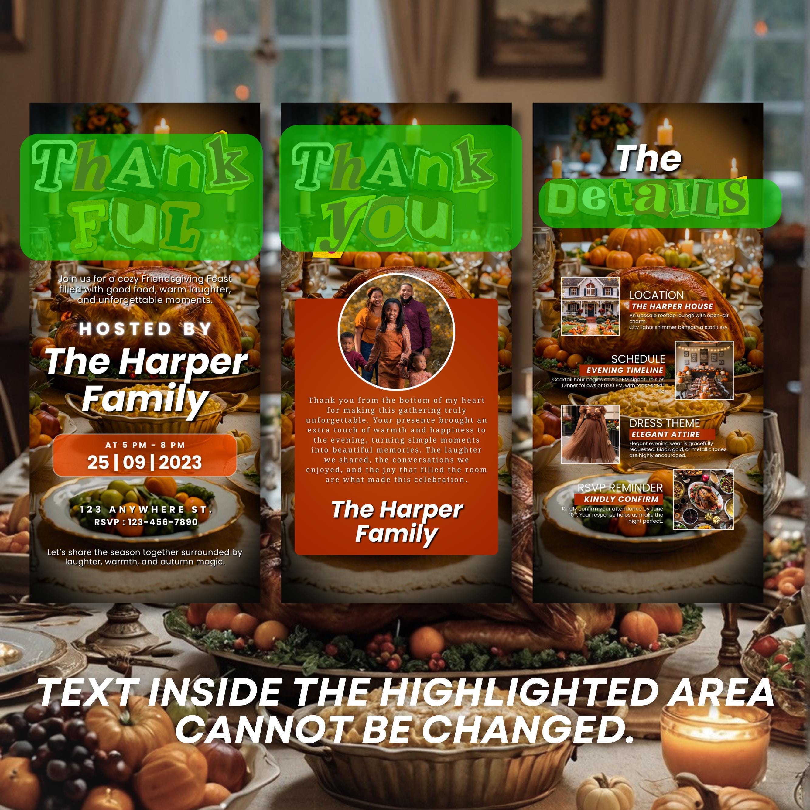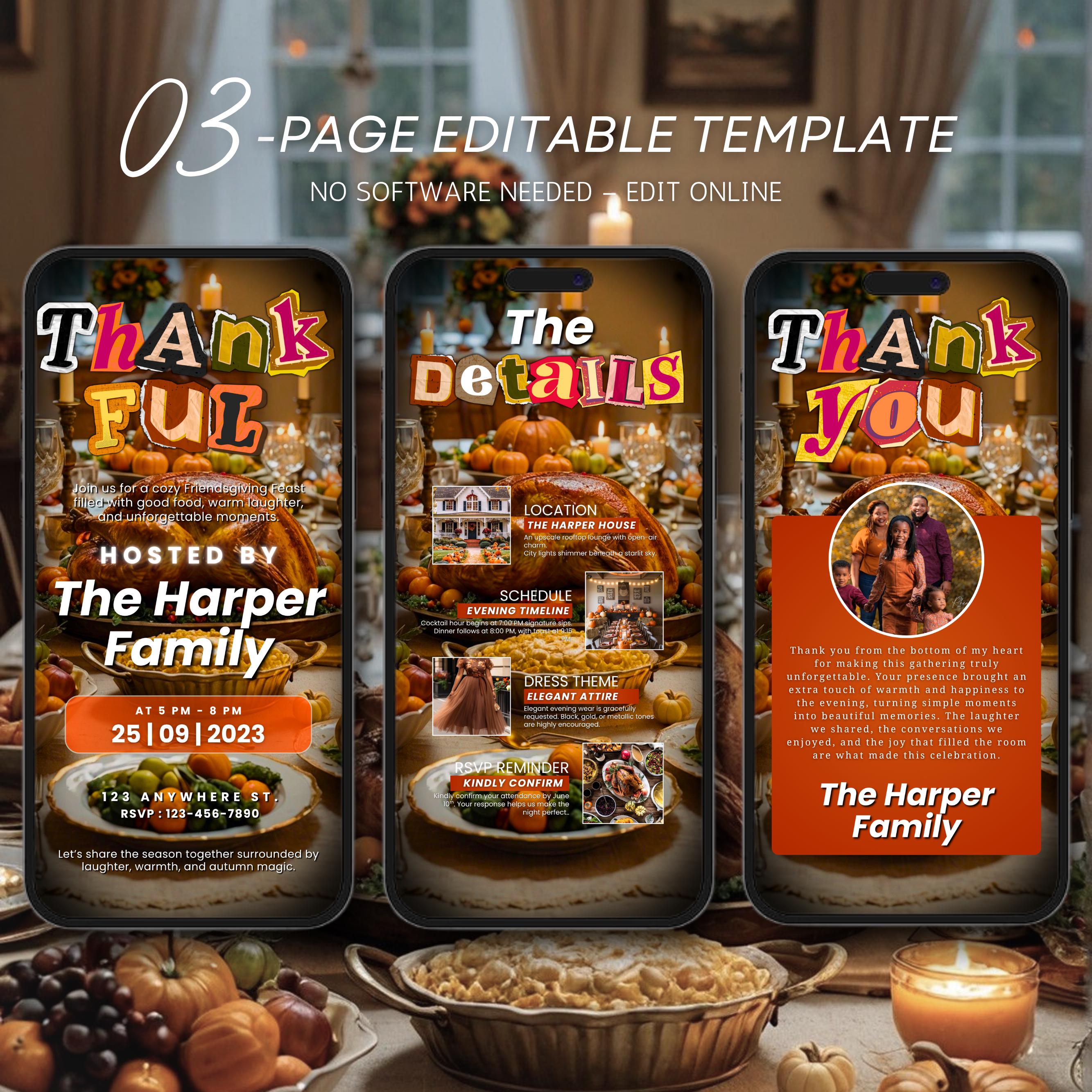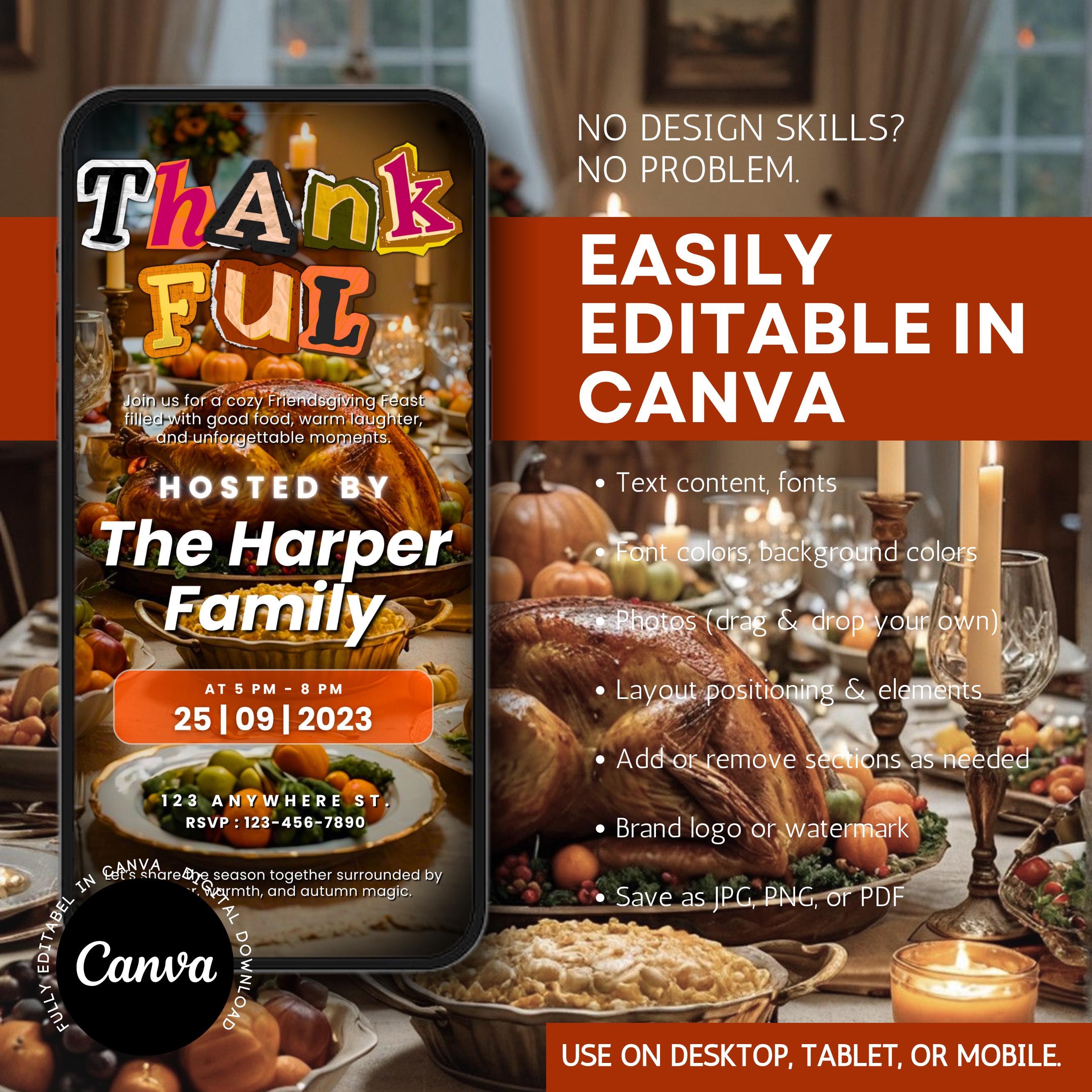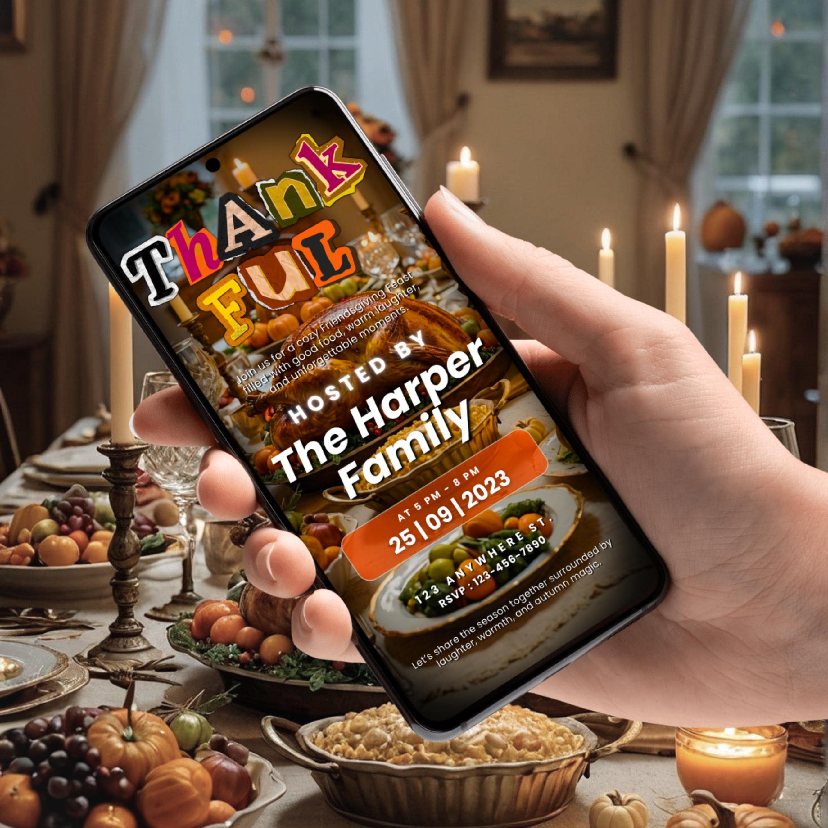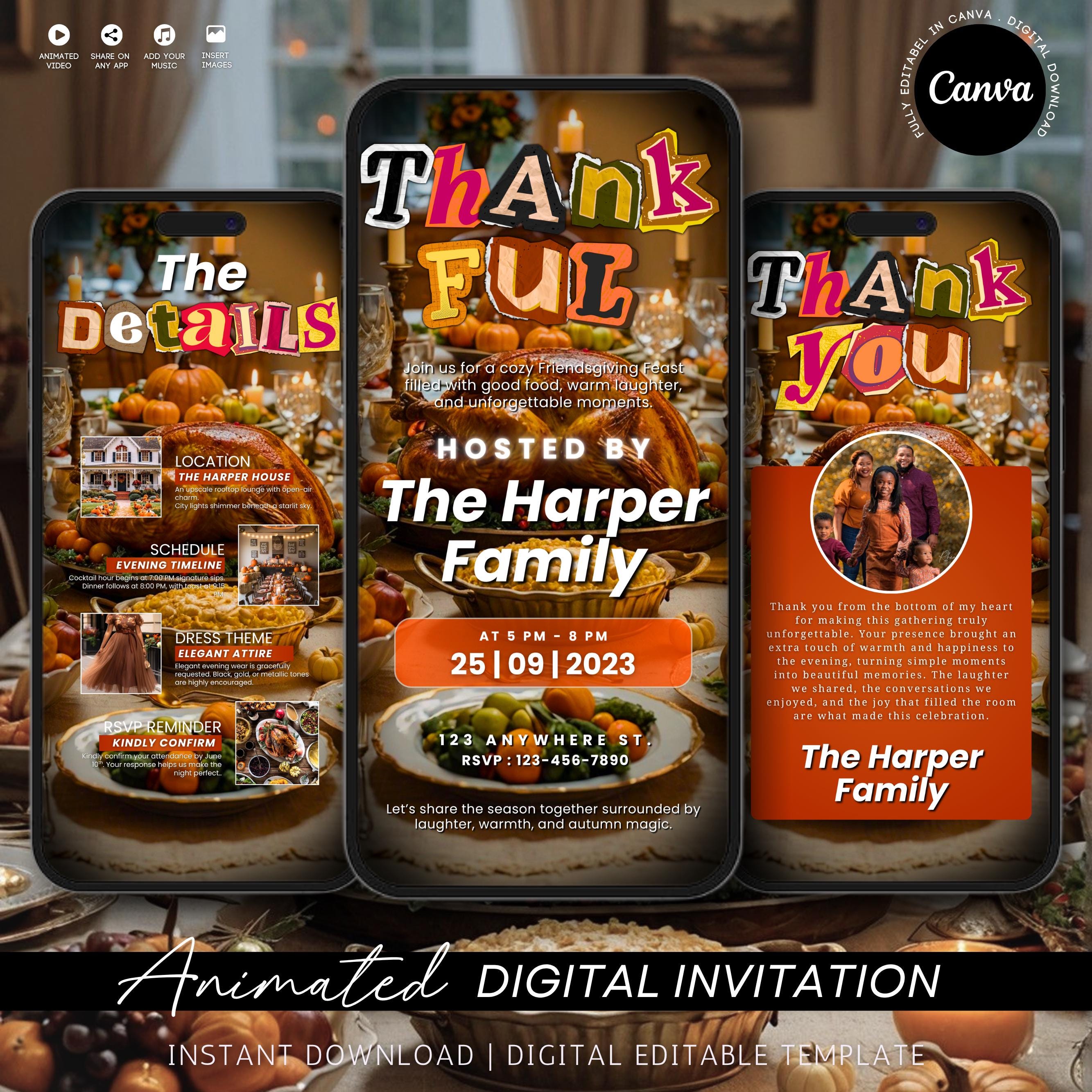 Animated Thankful AF Friendsgiving Dinner Invite: Editable Thankful AF Party Invite Template Digital Fall Pumpkin Thanksgiving Dinner Invite