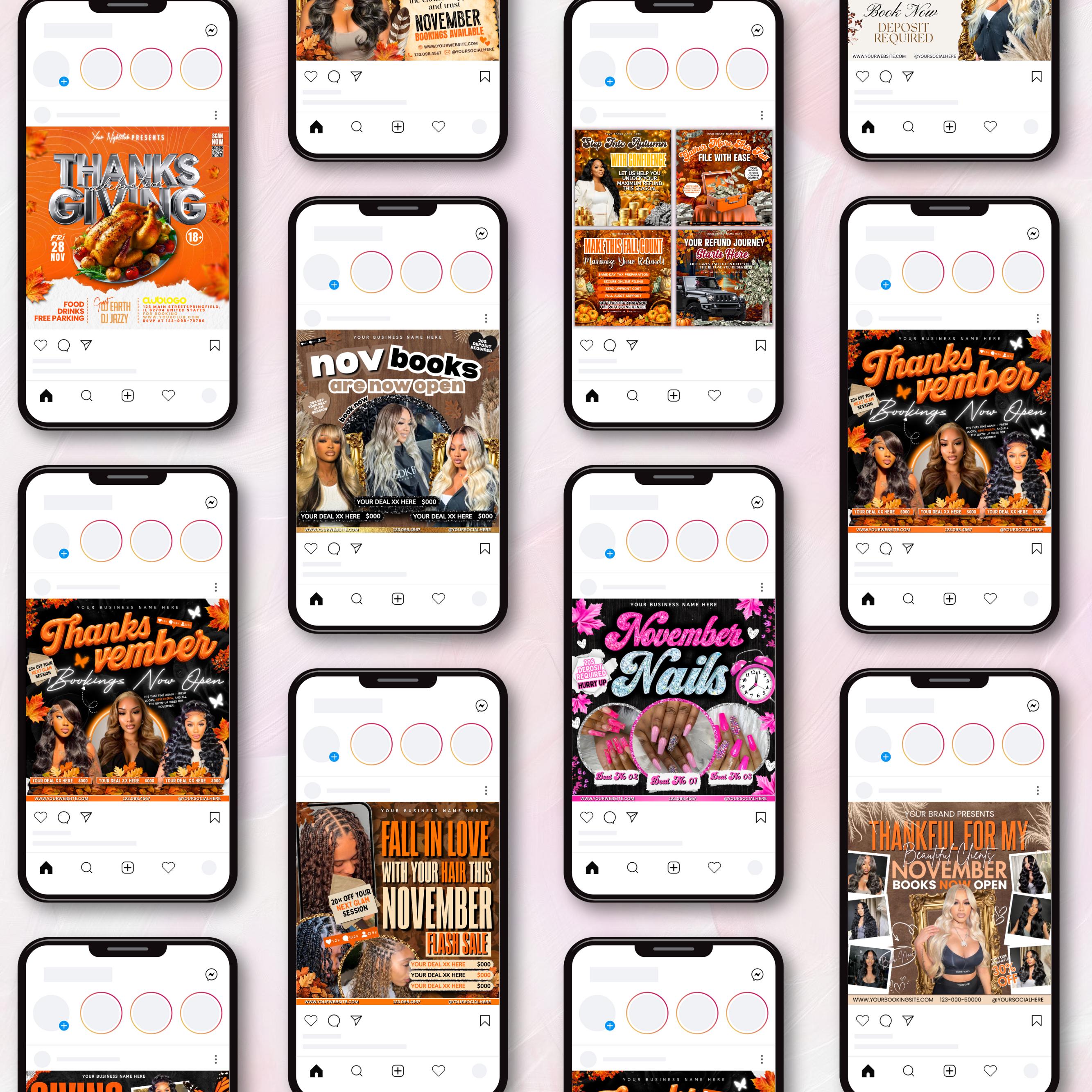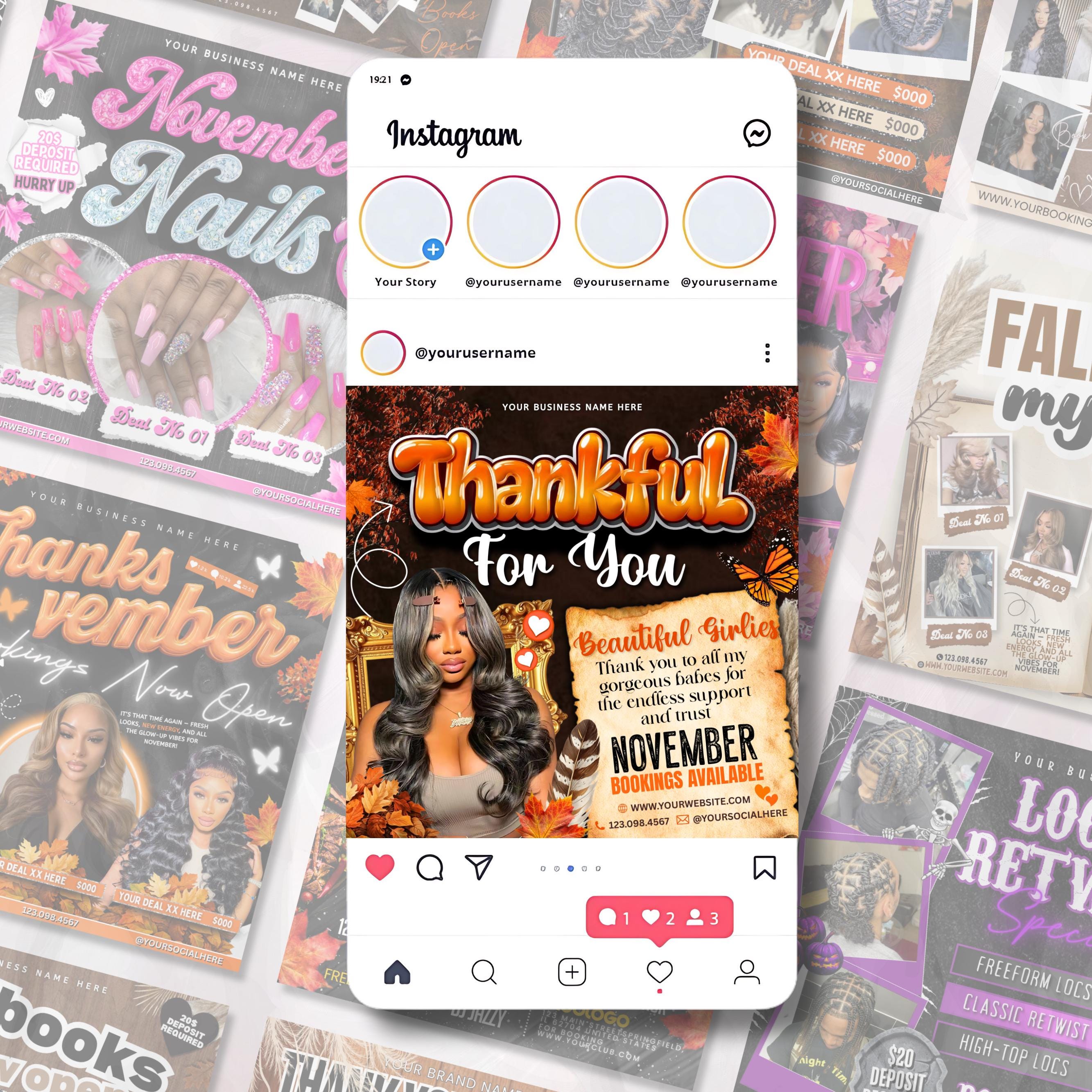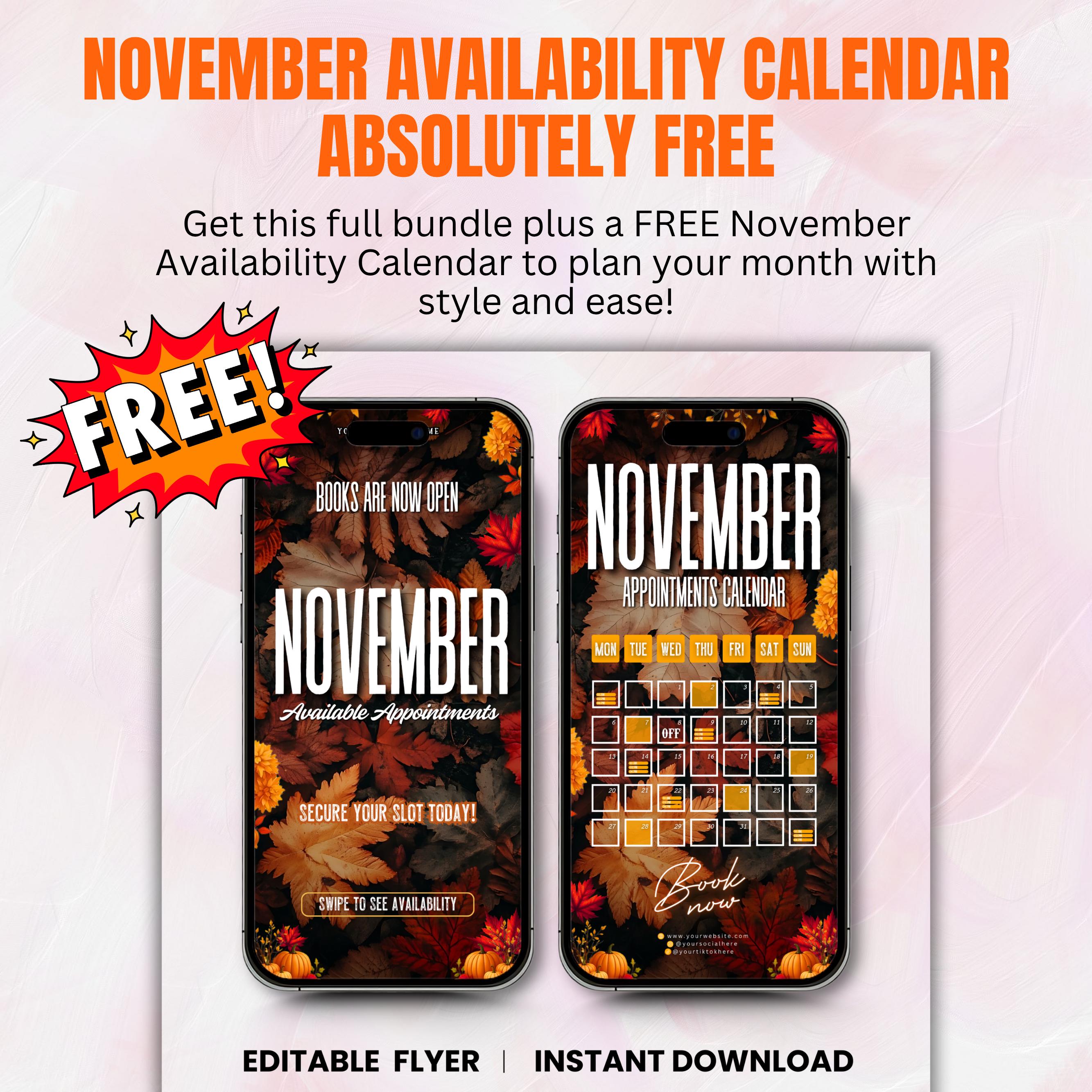 November Booking Flyer Bundle, Thanksgiving flyers, Fall Season Booking flyer, November Books Open, Flyers Templates, DIY Canva Editable