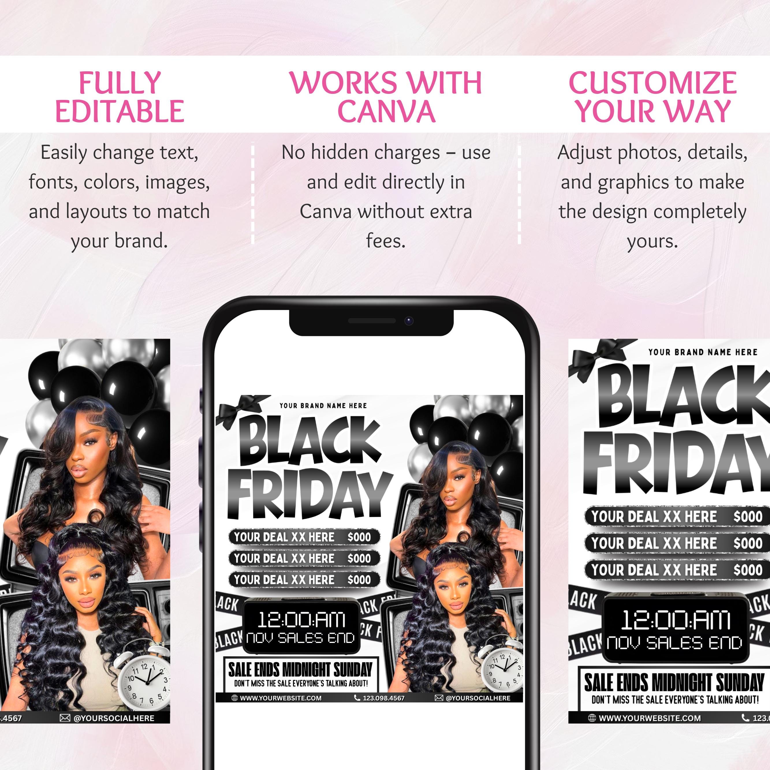 Black Friday Flyer, black Friday Sale Flyer, Black Friday Special Flyer, cyber Monday flyer, Pink Friday Flyer, Flash Sale Flyer, Canva