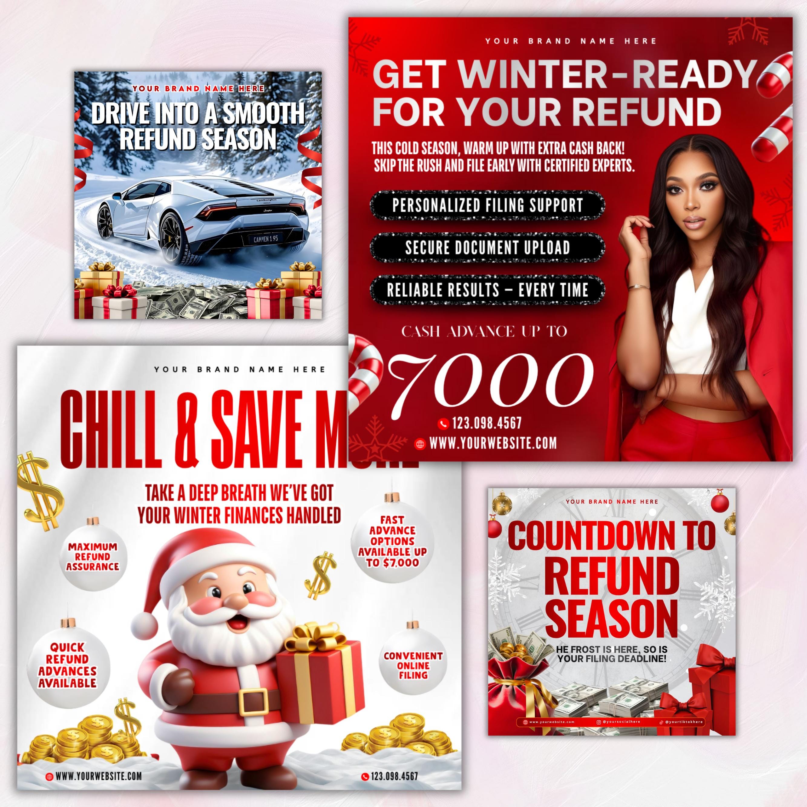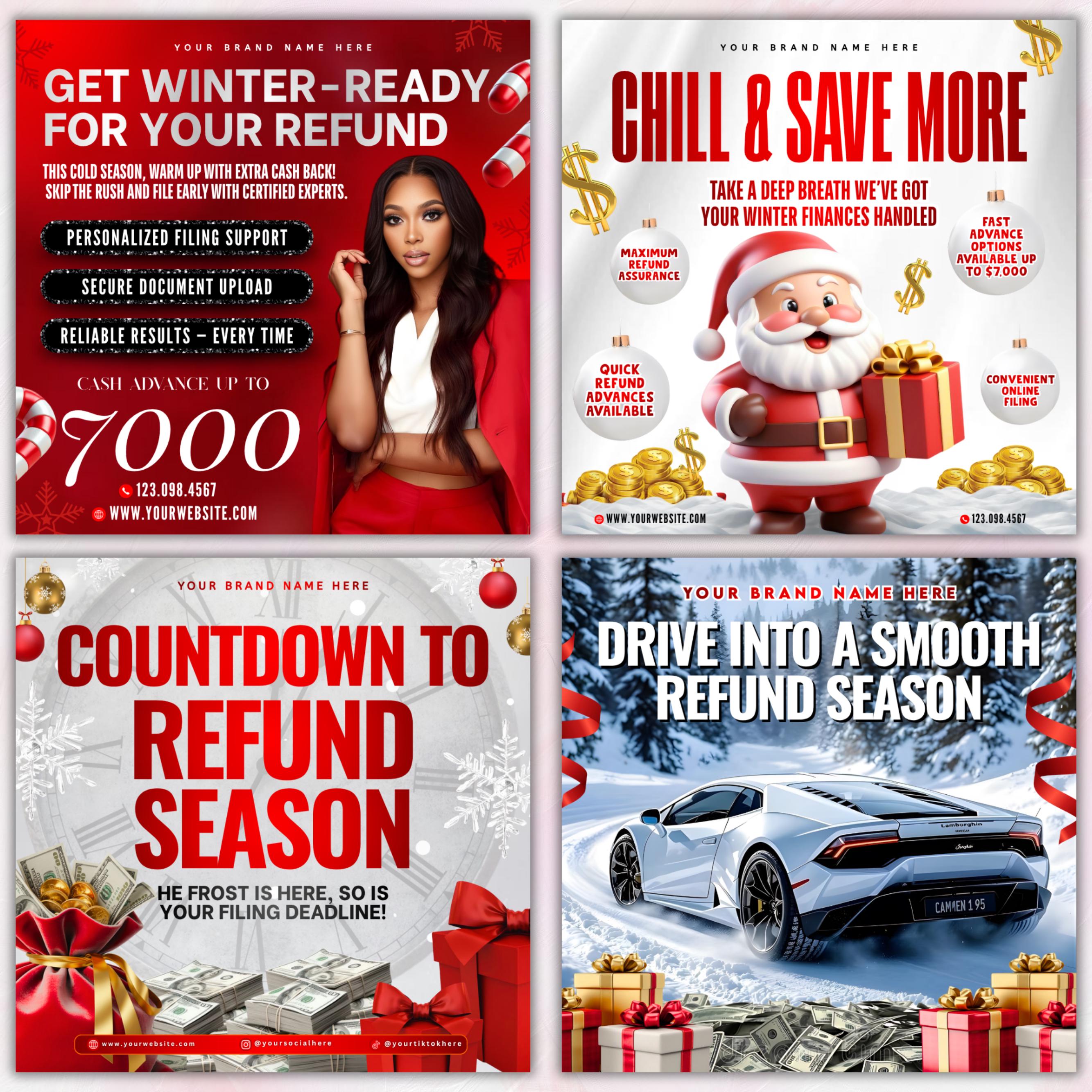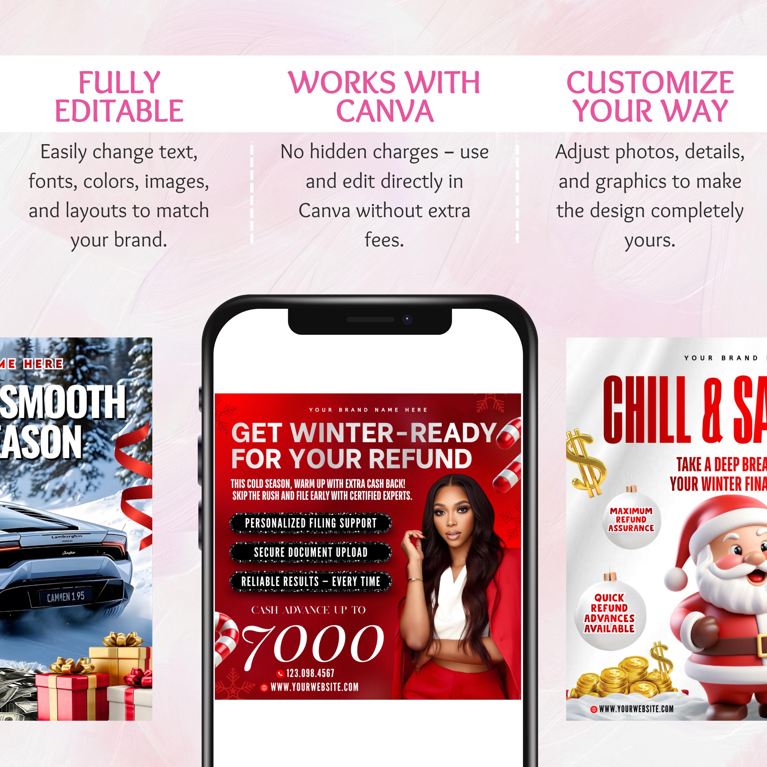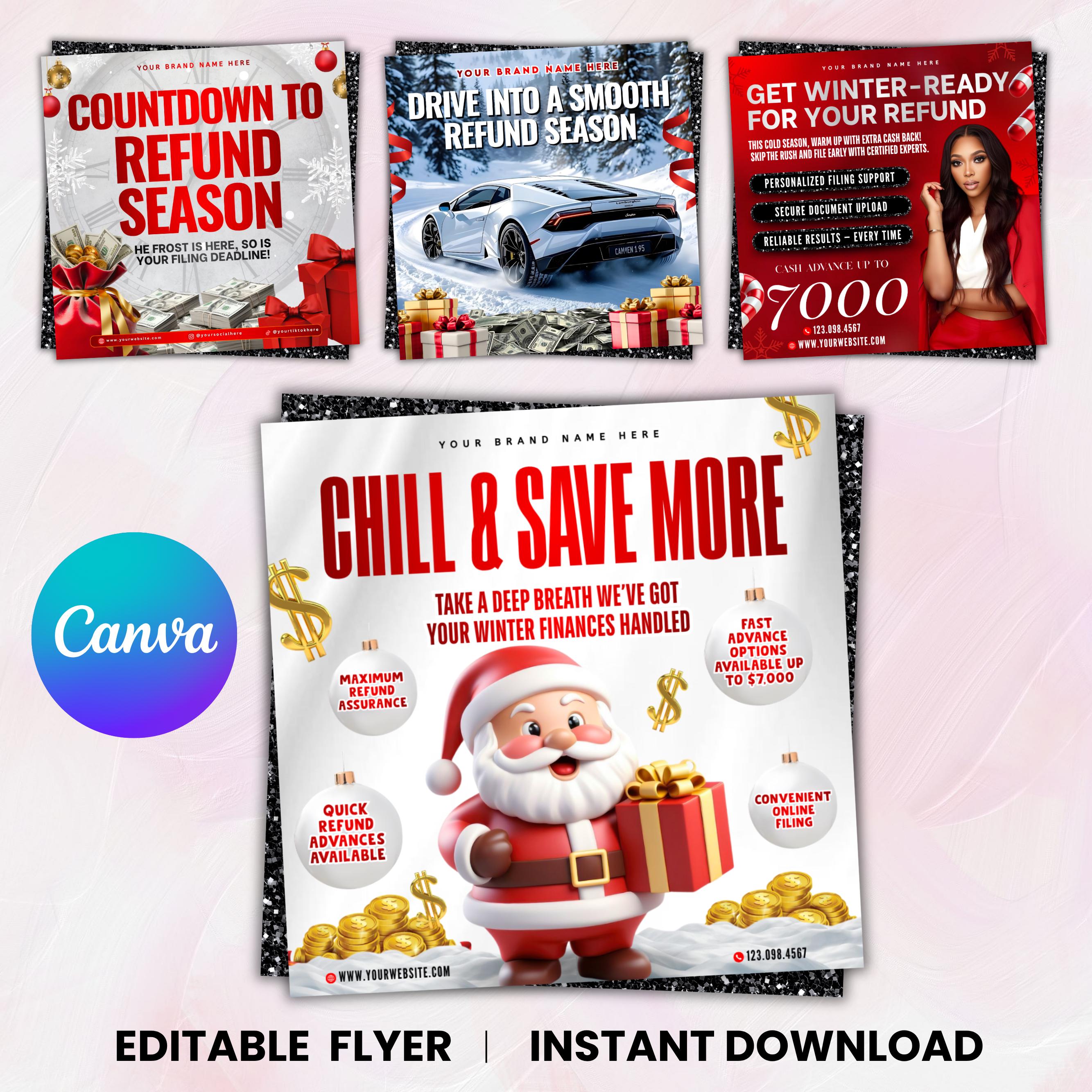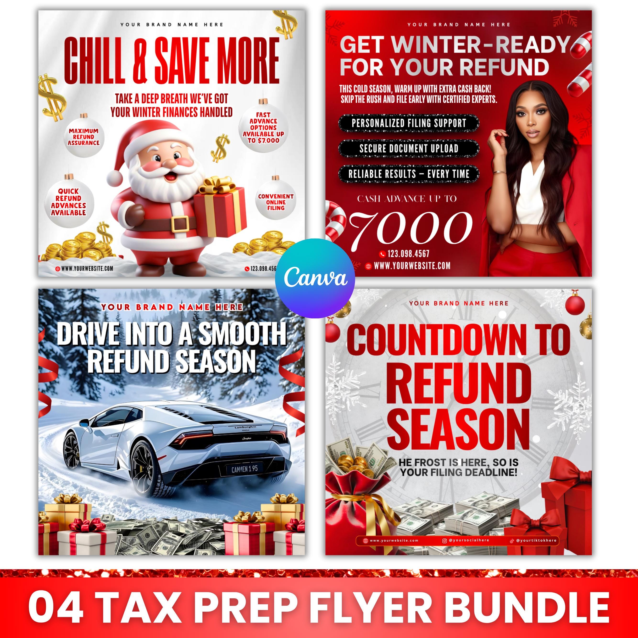 Christmas Tax Prep Bundle, Tax Prep, Tax Prep Flyer, 4 Tax Flyer Template, Prep Flyers Bundle, Christmas Booking Flyer, Canva Editable