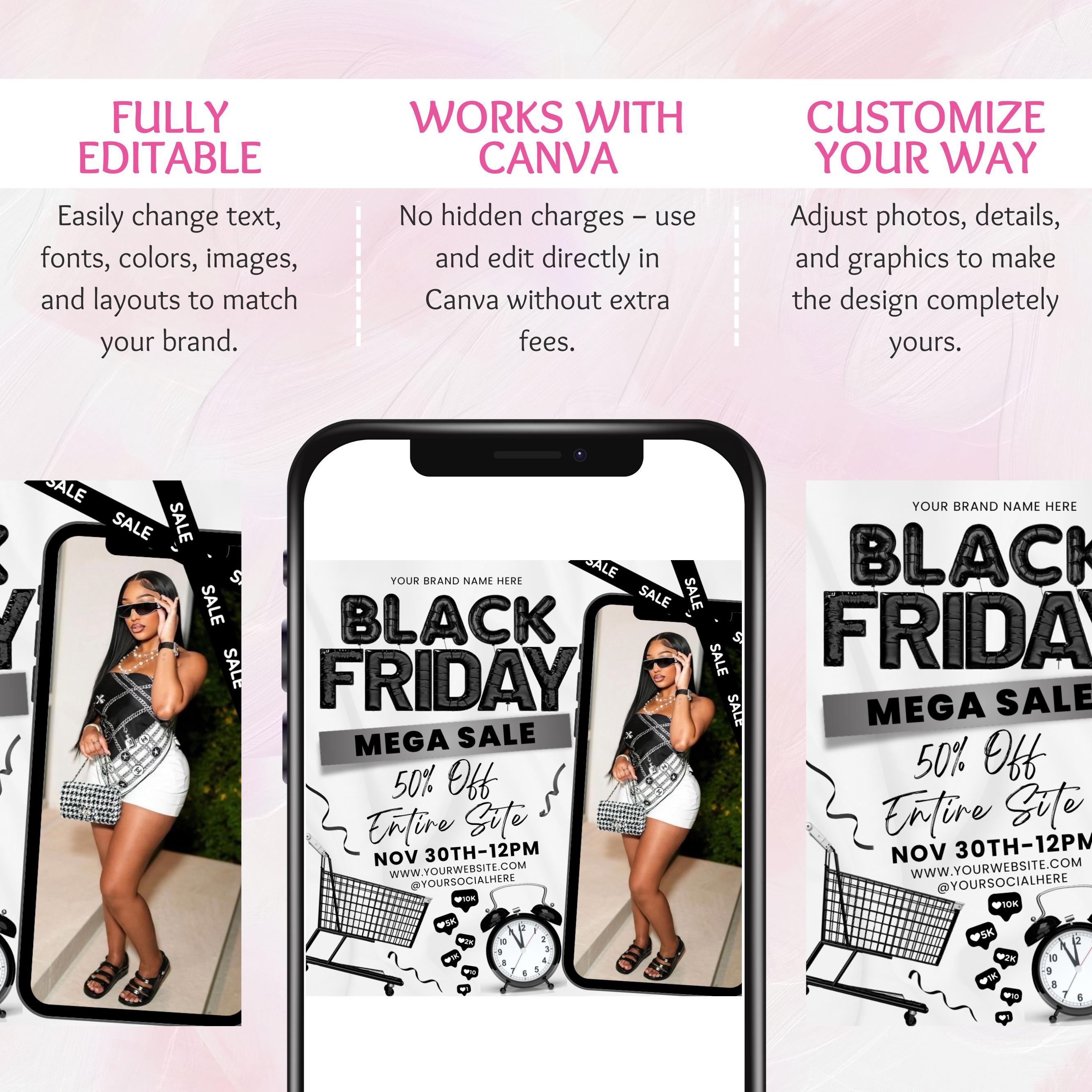 Ask a questionBlack Friday Flyer, black Friday Sale Flyer, Black Friday Special Flyer, cyber Monday flyer, Pink Friday Flyer, Flash Sale Flyer, Canva