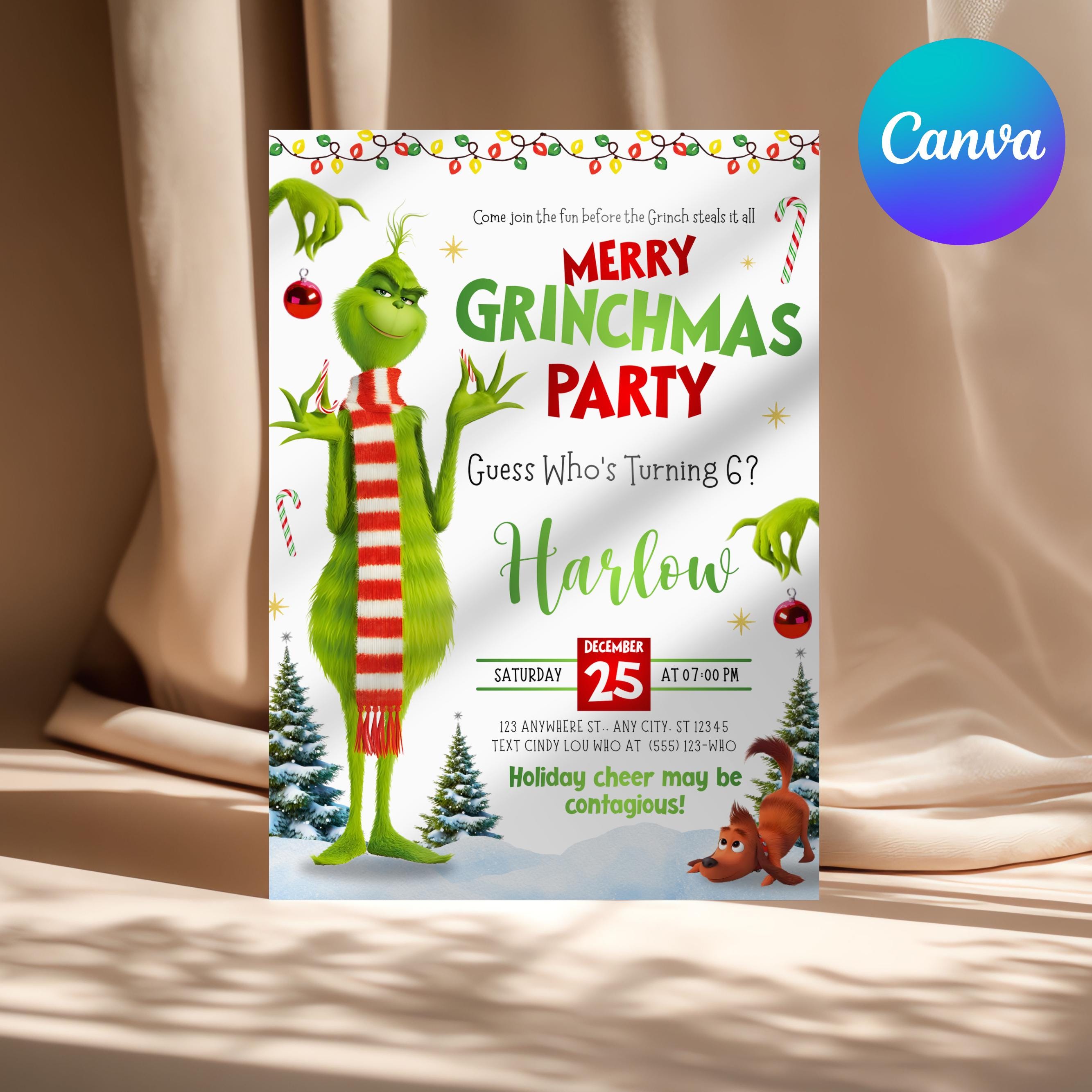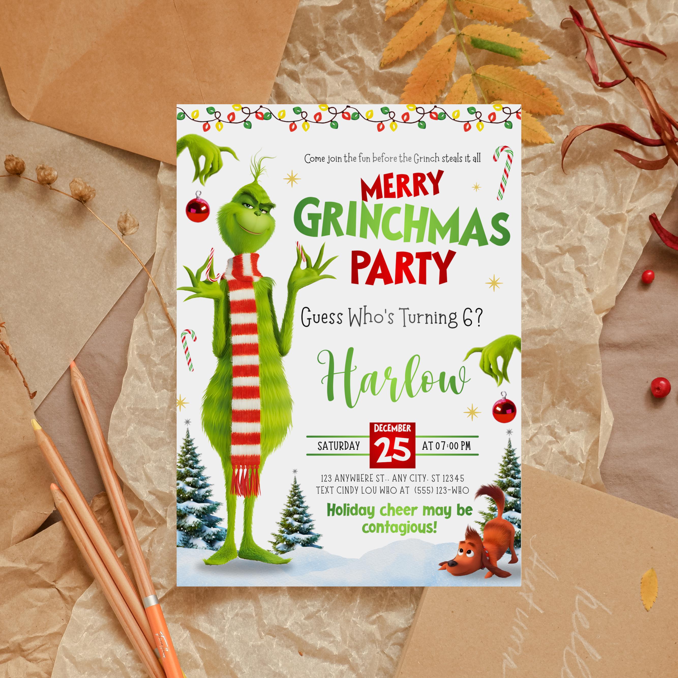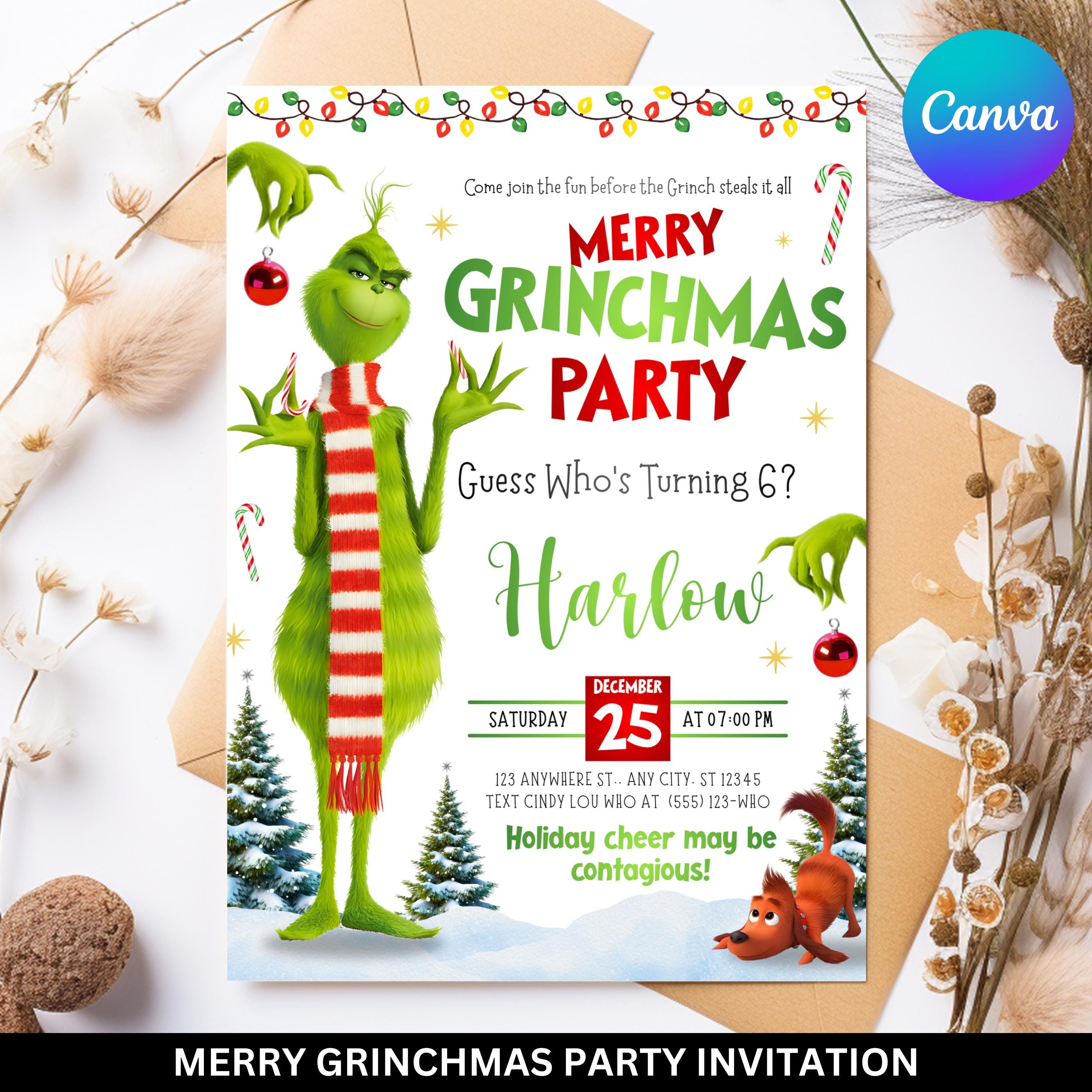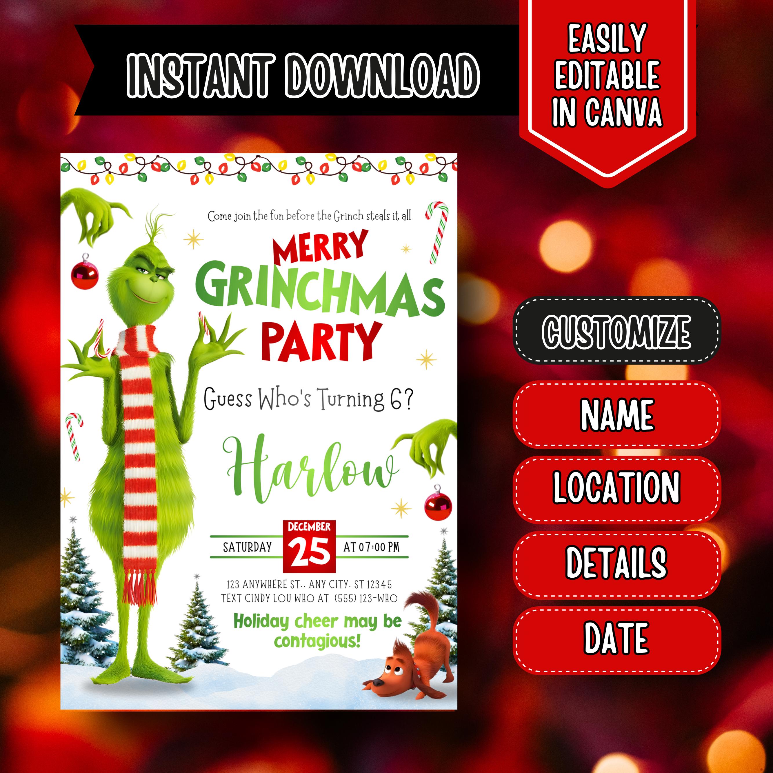 Grinchmas Party Invite,Grinhday Party, Max Grinch Party Invitation,Instantly Download,Grinch Party Invitation Editable In Canva Template