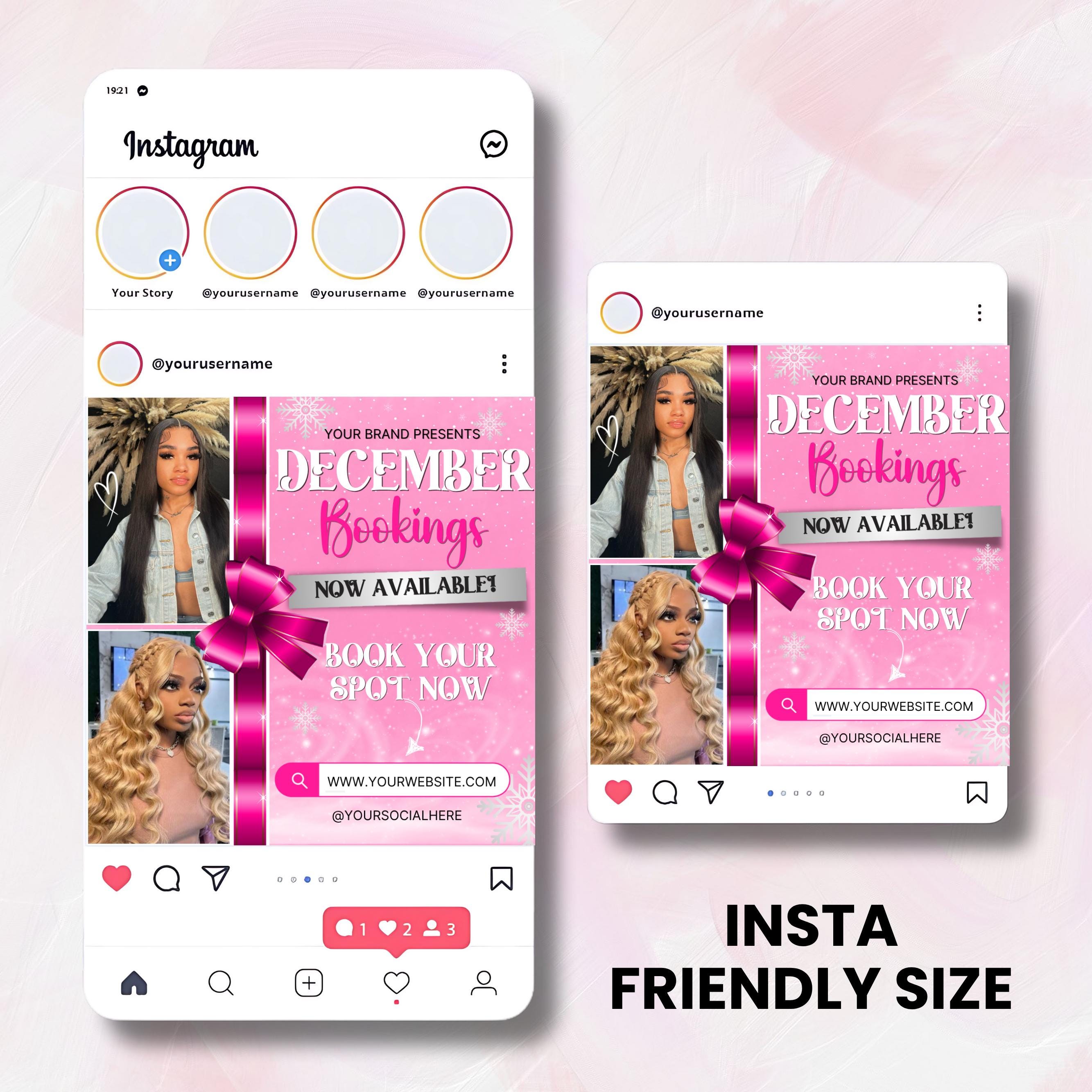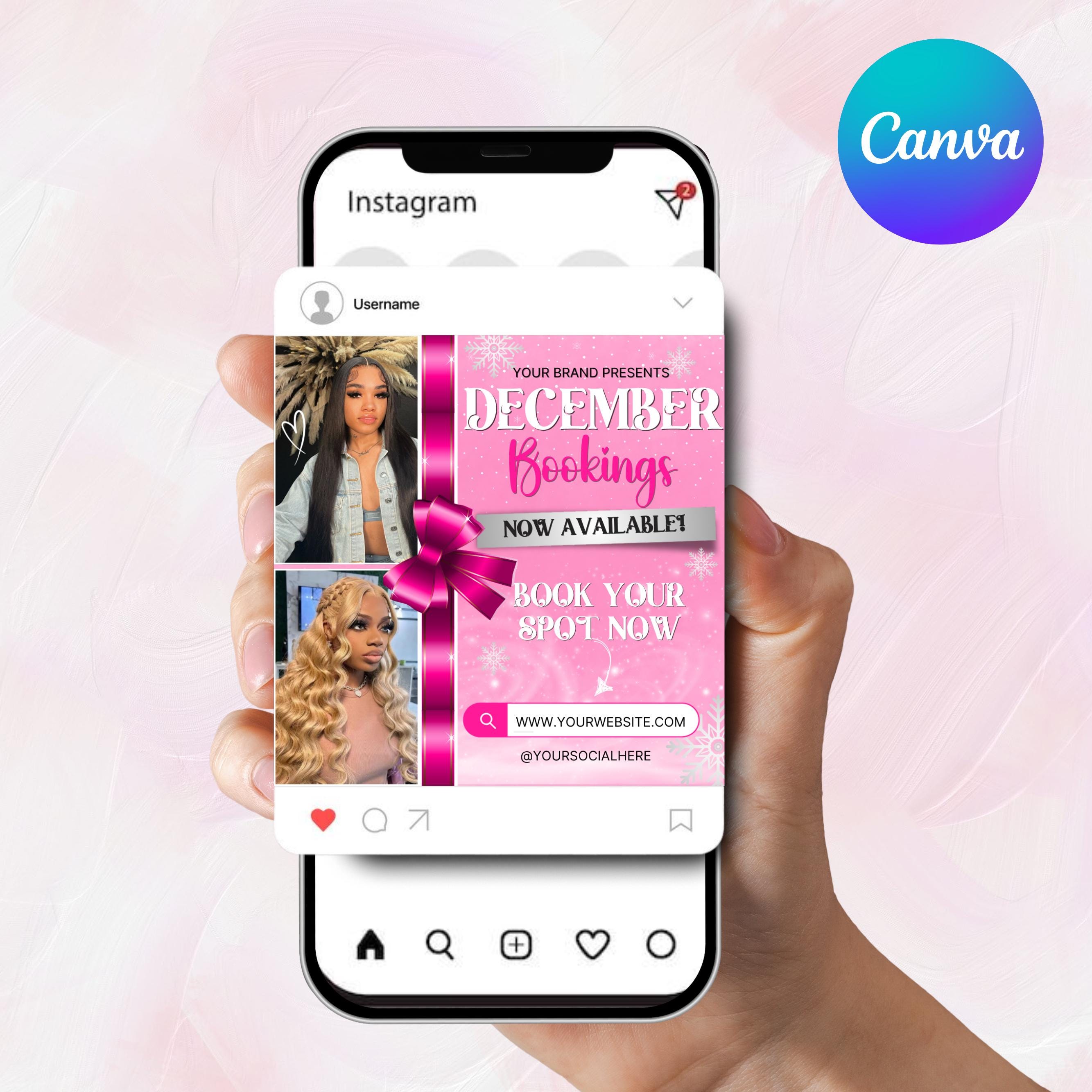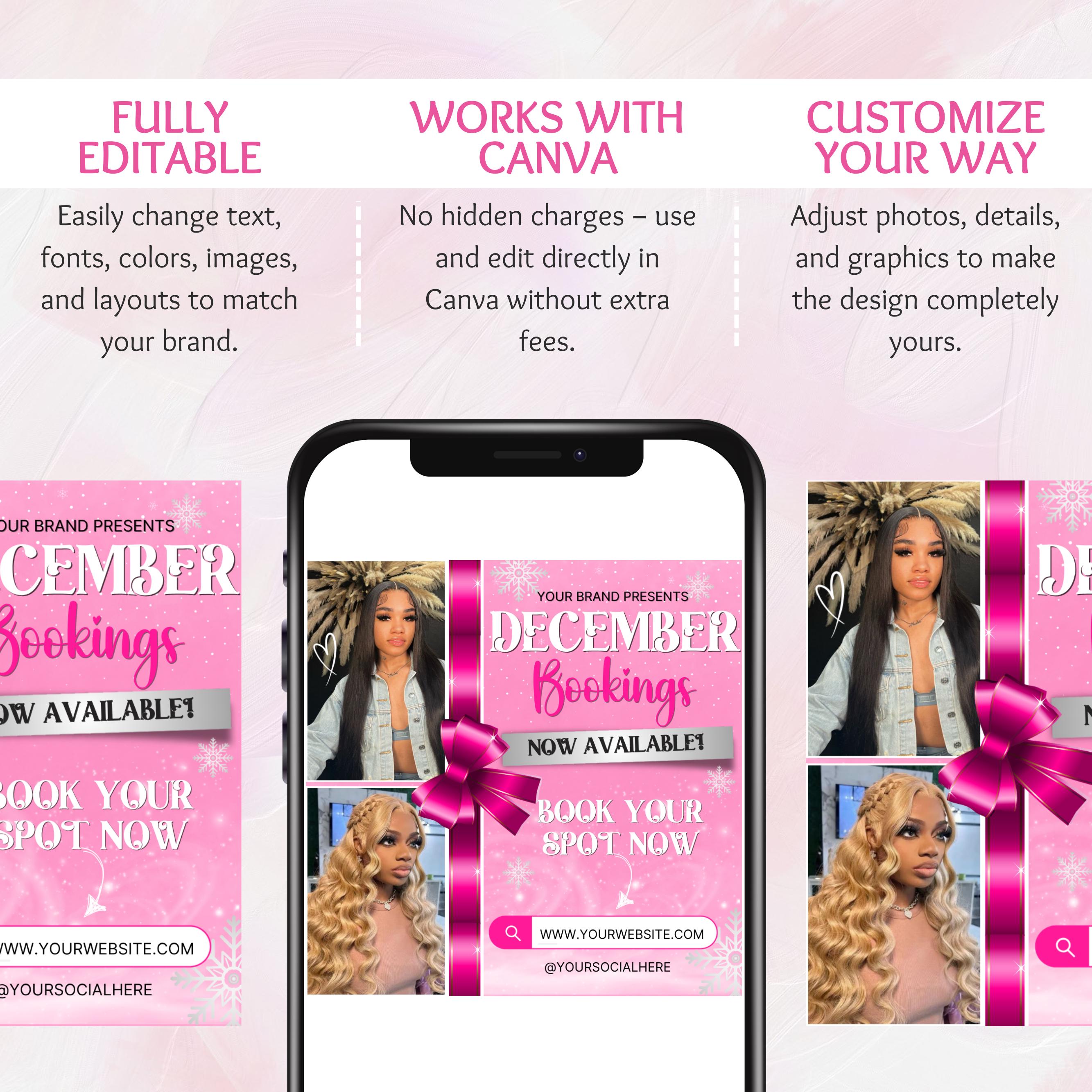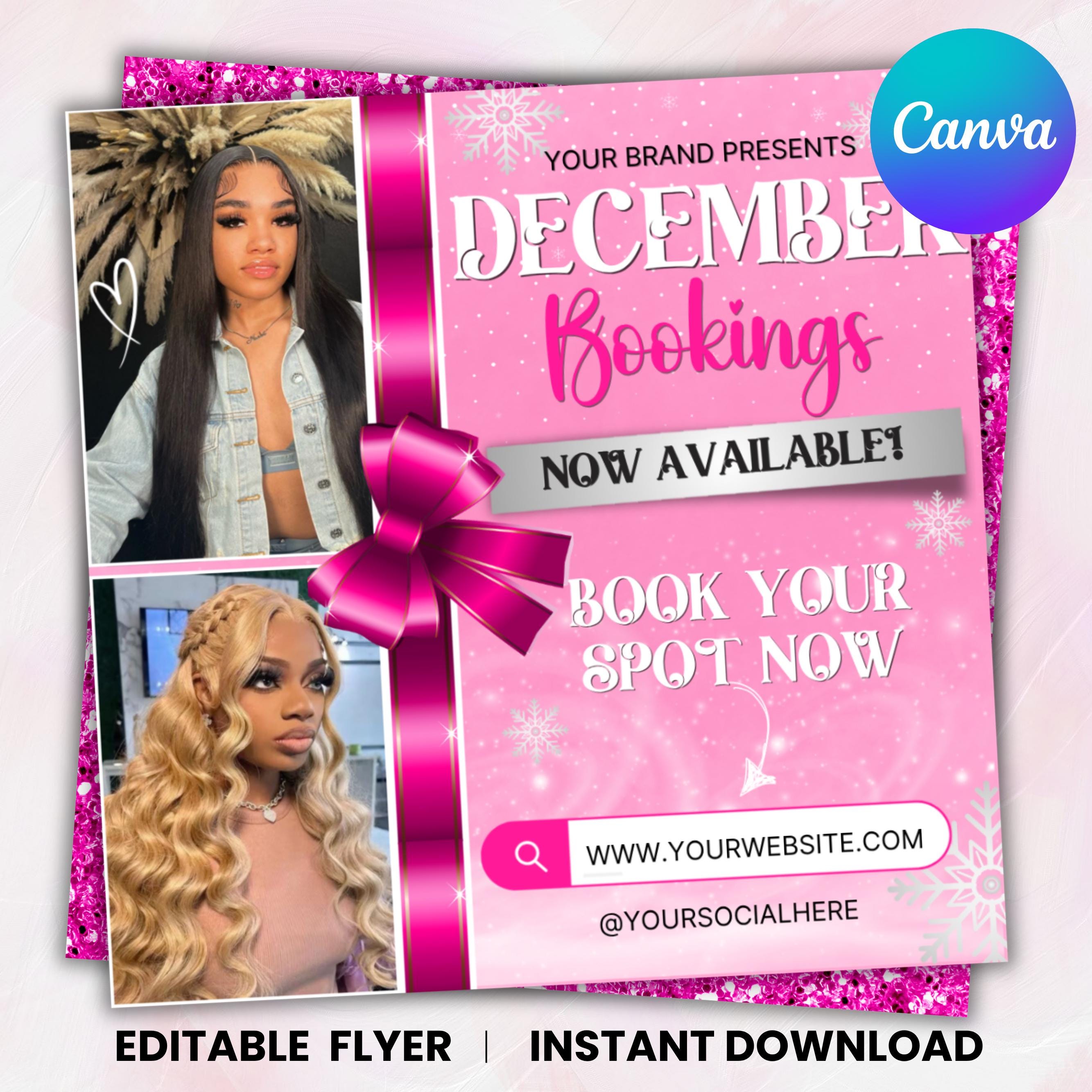 December Booking flyer, Holiday Booking Flyer, Book Now Flyer, Christmas Sale Flyer, Lash, Hair, Makeup, Nails, Wig Flyer, Canva Editable