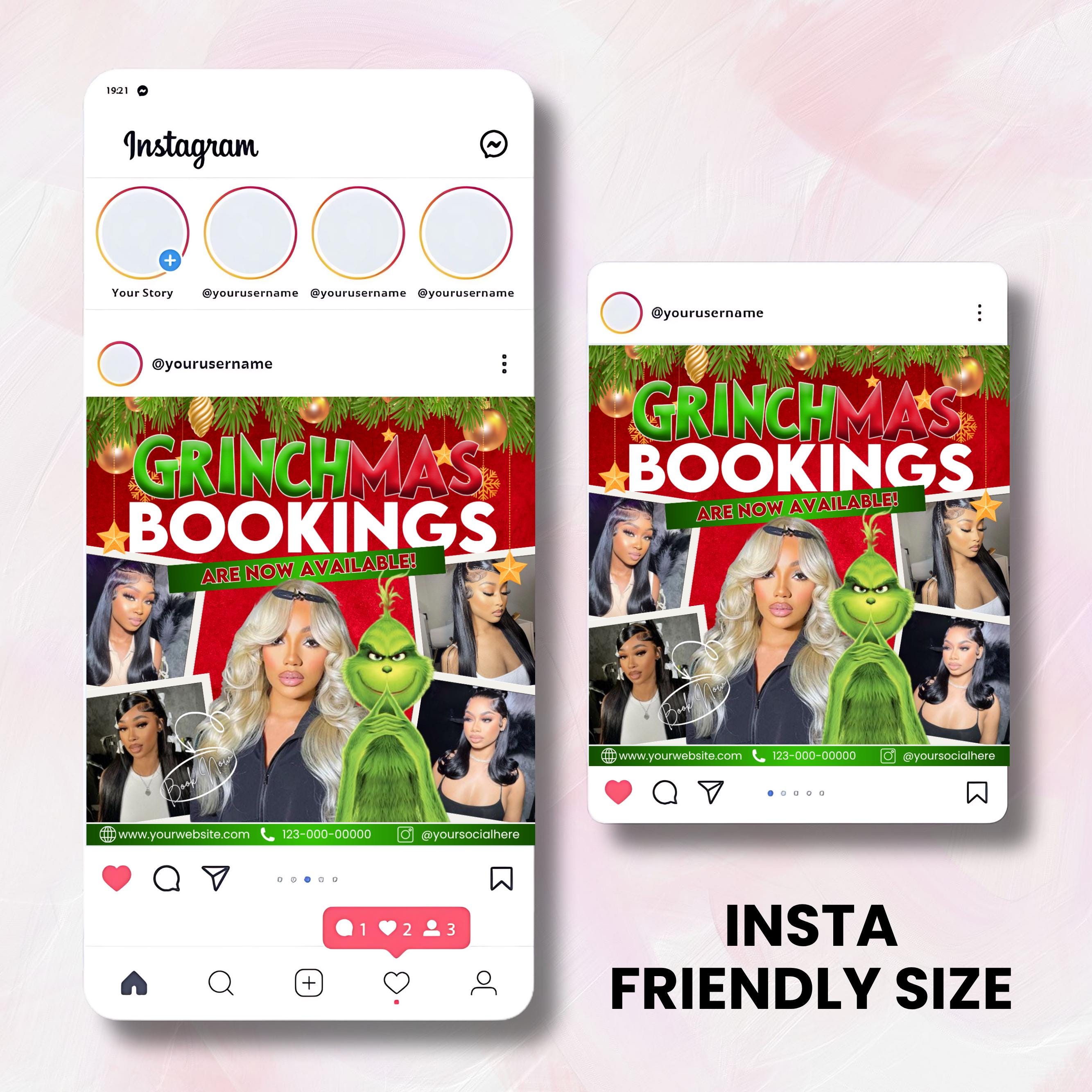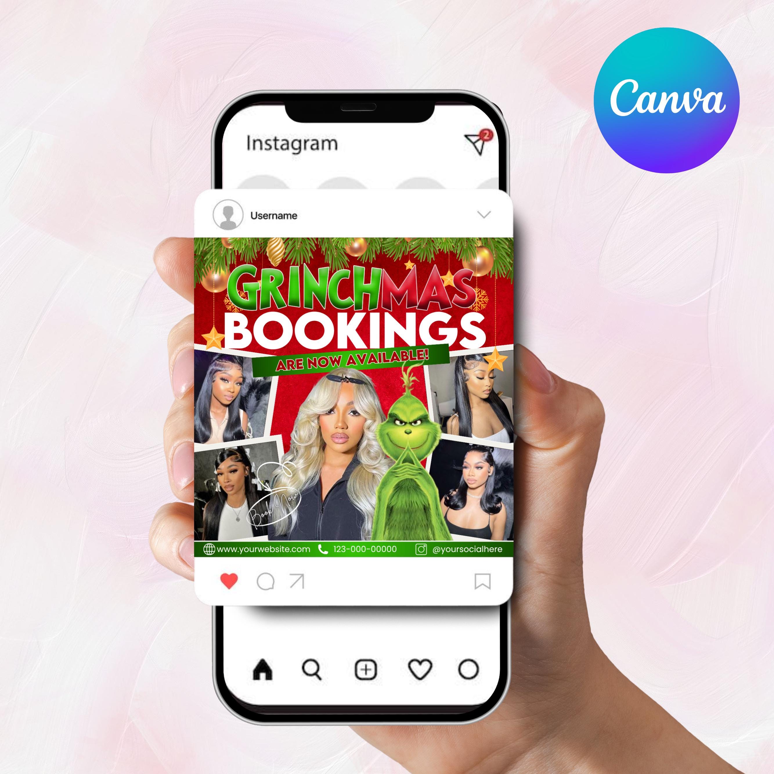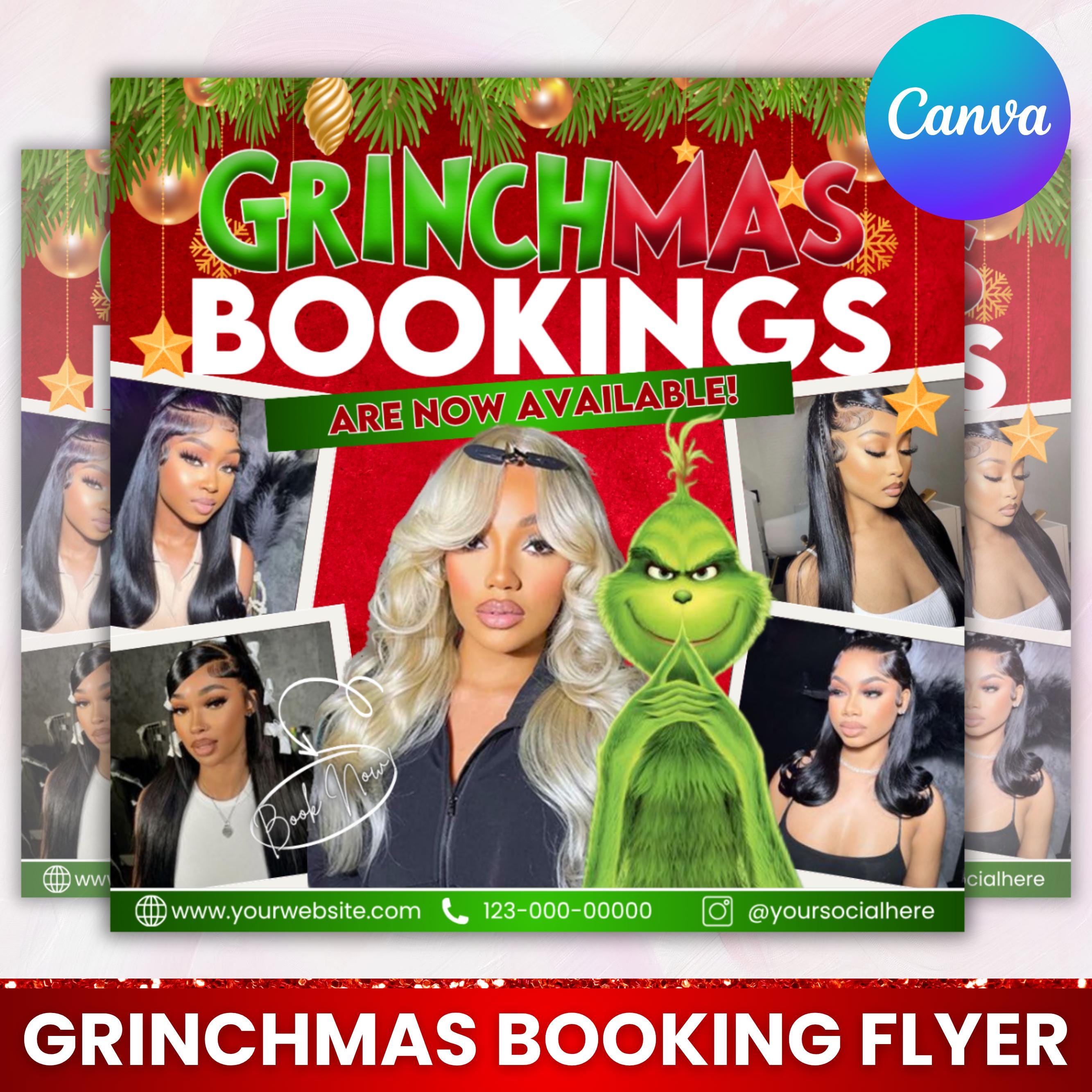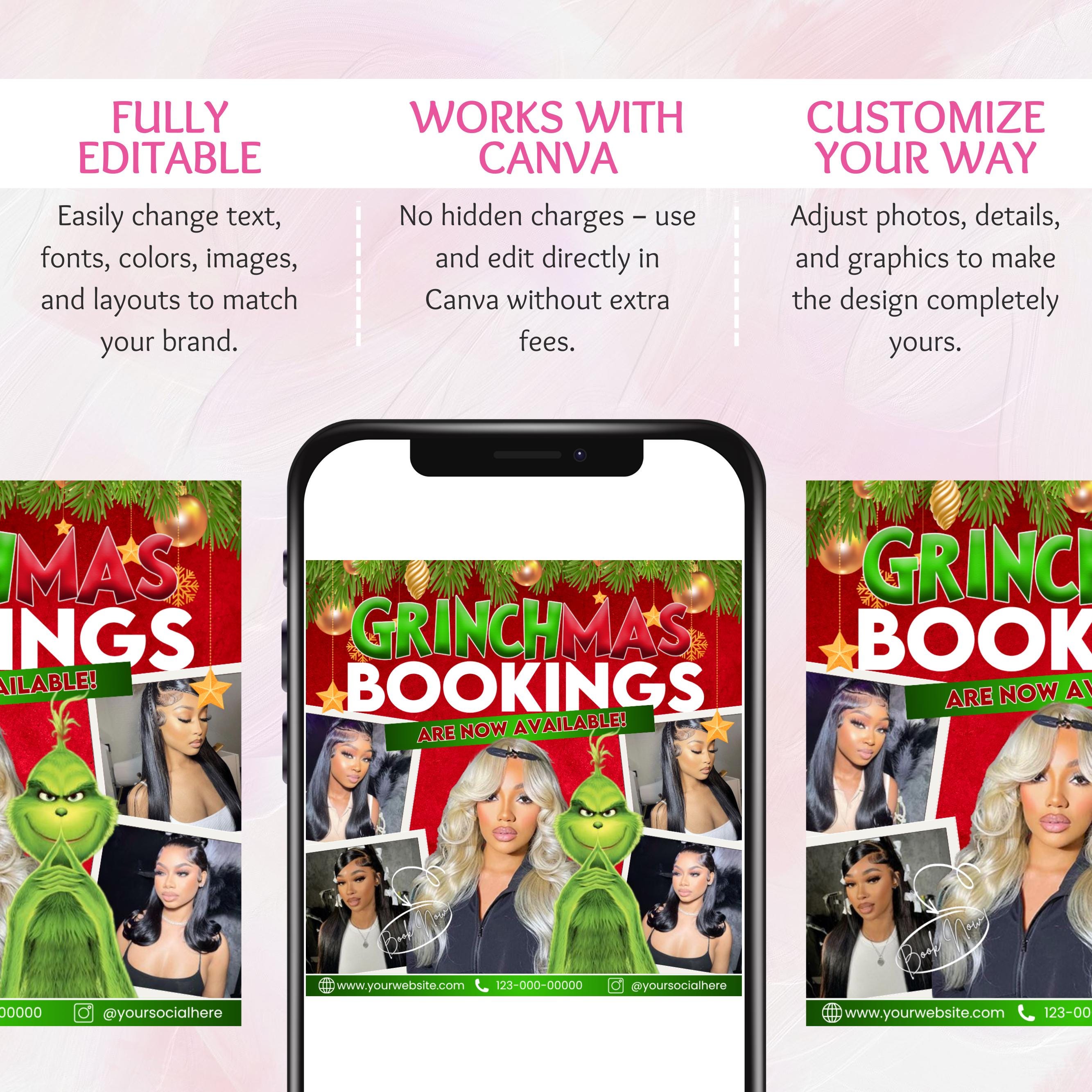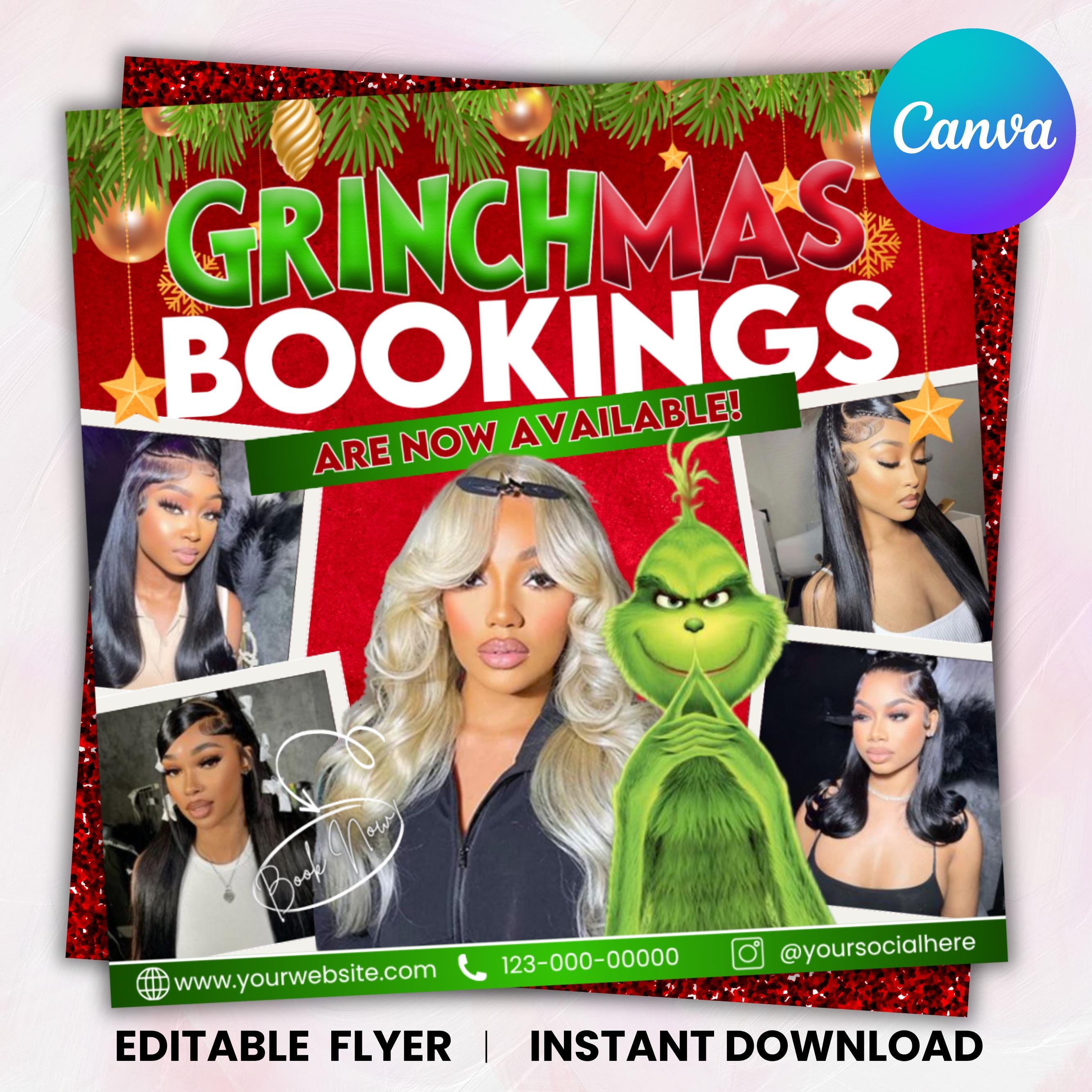Grinchmas Flyer, December Booking Flyer, Christmas Booking Flyer, Hair Lash Nail Makeup, Holiday Booking Flyer, DIY Book Now Flyer