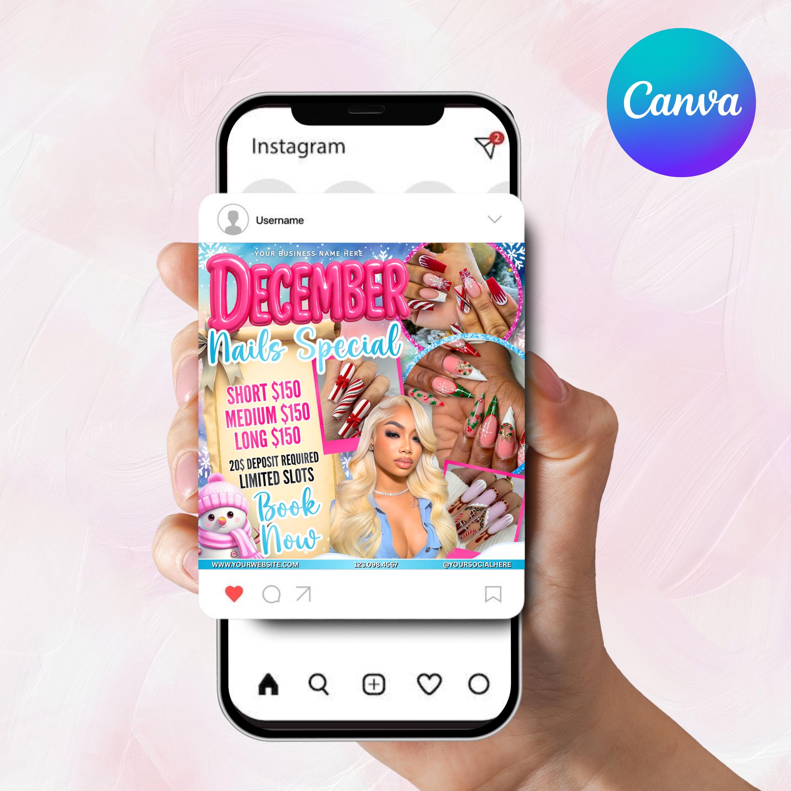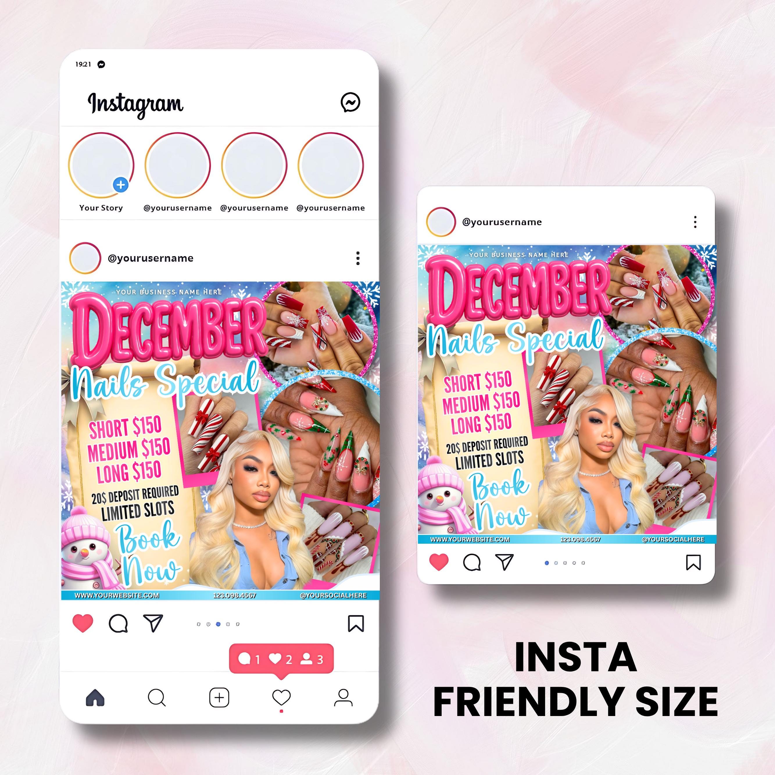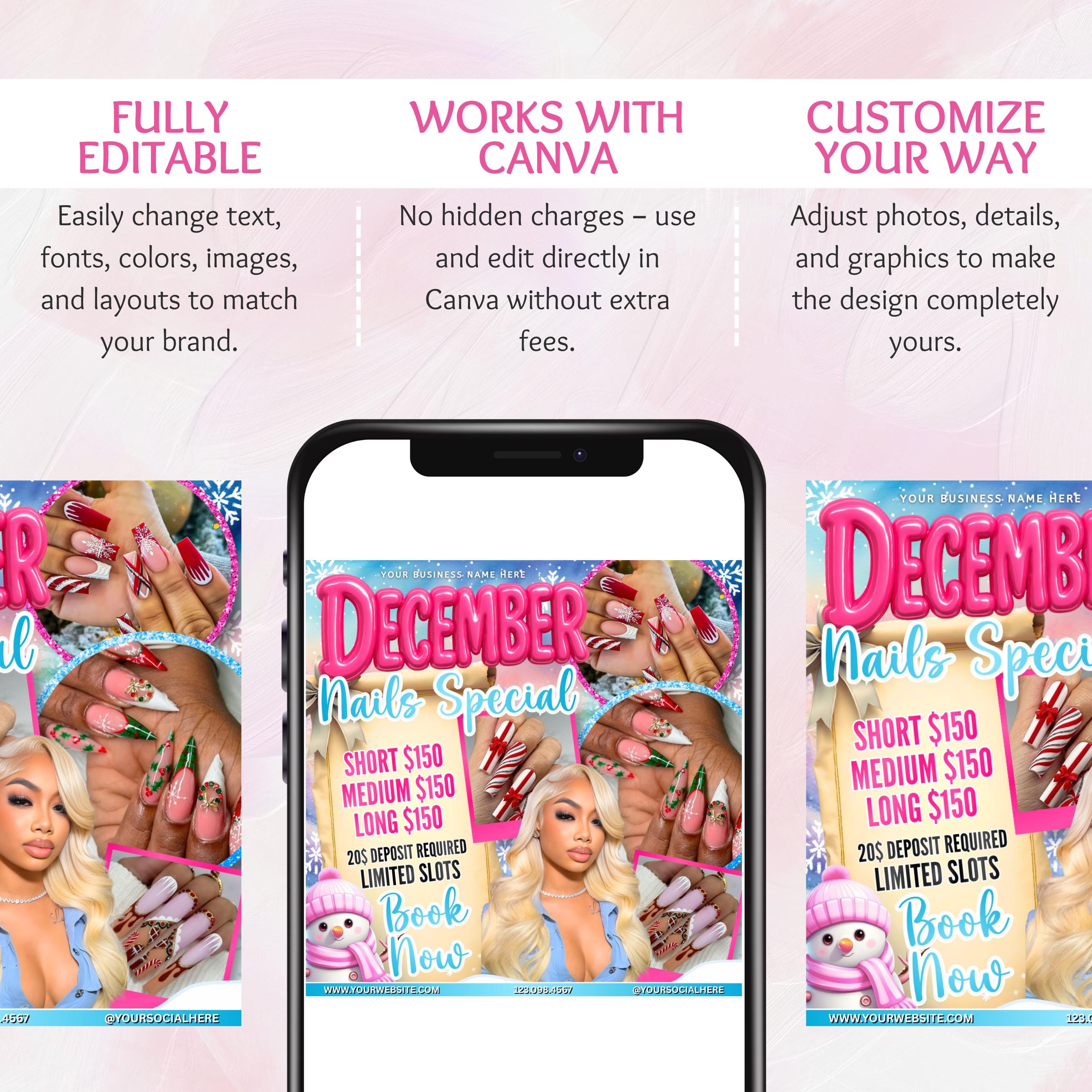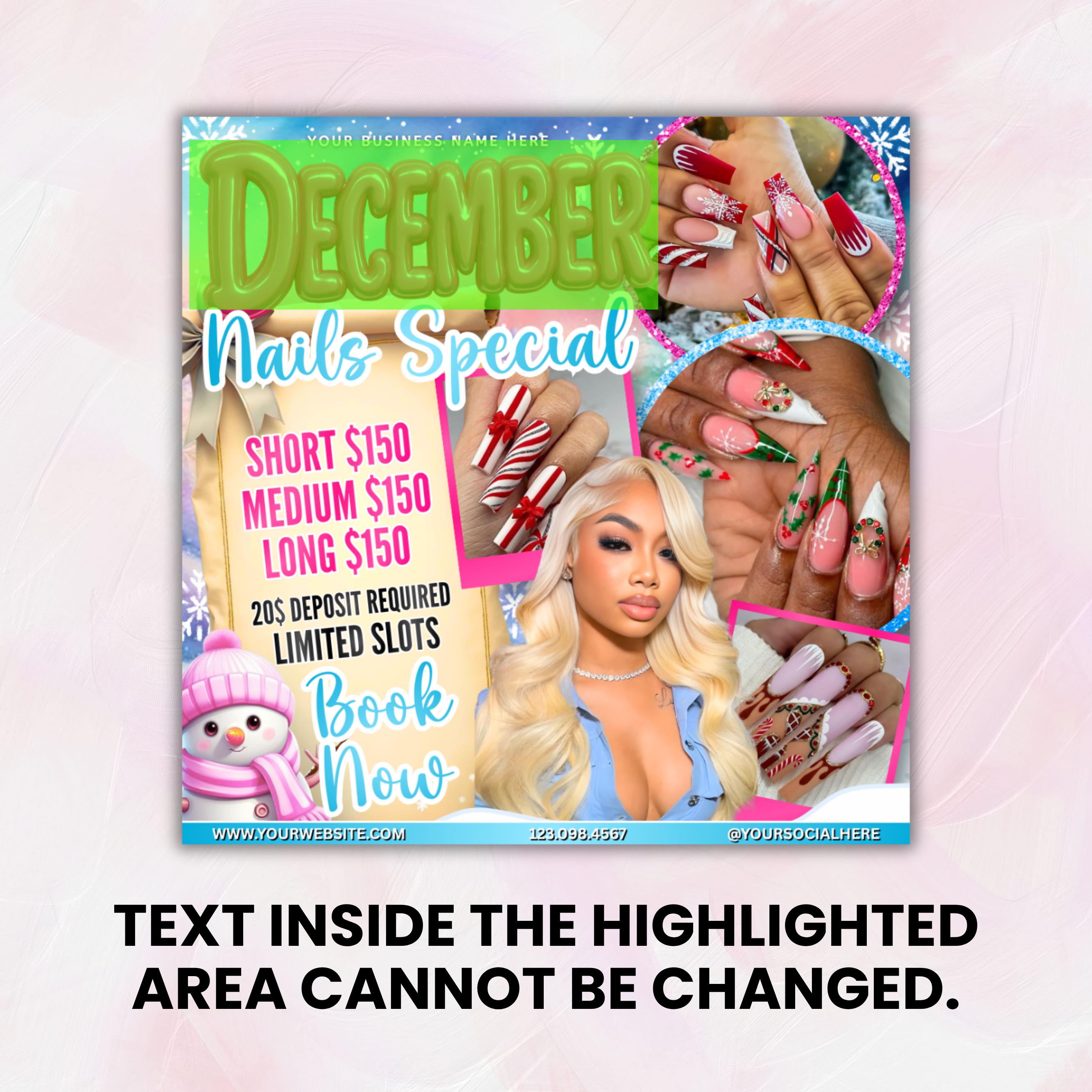 December Nail Booking Flyer, Holiday Booking Flyer, Book Now Flyer, Christmas Sale Flyer, Lash, Hair, Makeup, Nails, Wig Flyer, DIY Canva