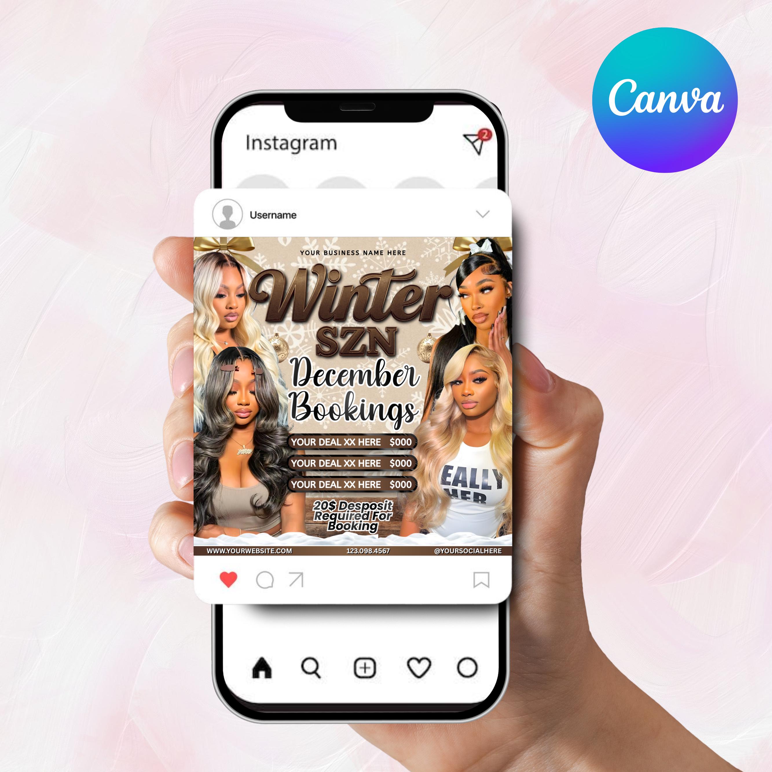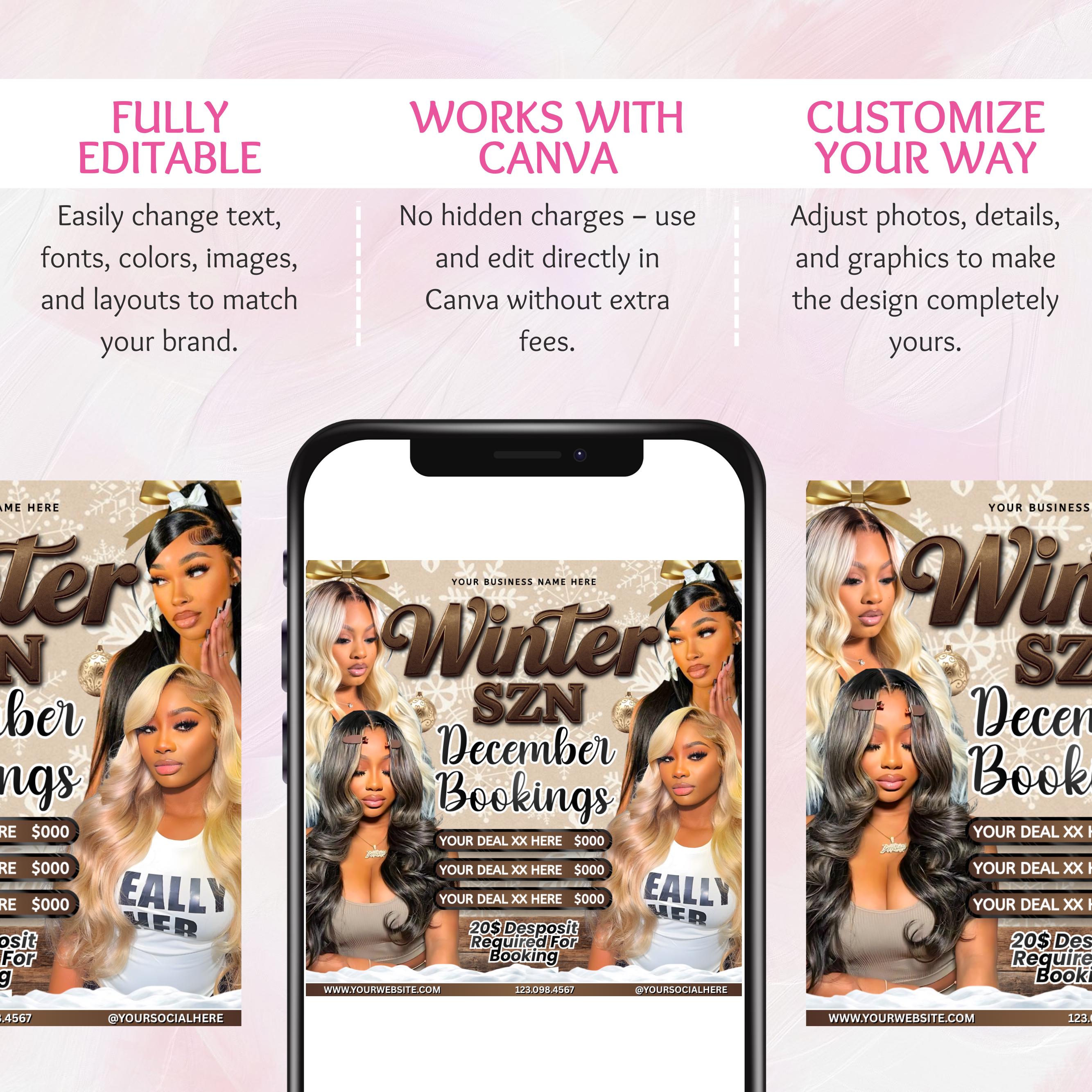 Ask a questionDecember Booking flyer, Holiday Booking Flyer, Book Now Flyer, Christmas Sale Flyer, Lash, Hair, Makeup, Nails, Wig Flyer, Canva Editable