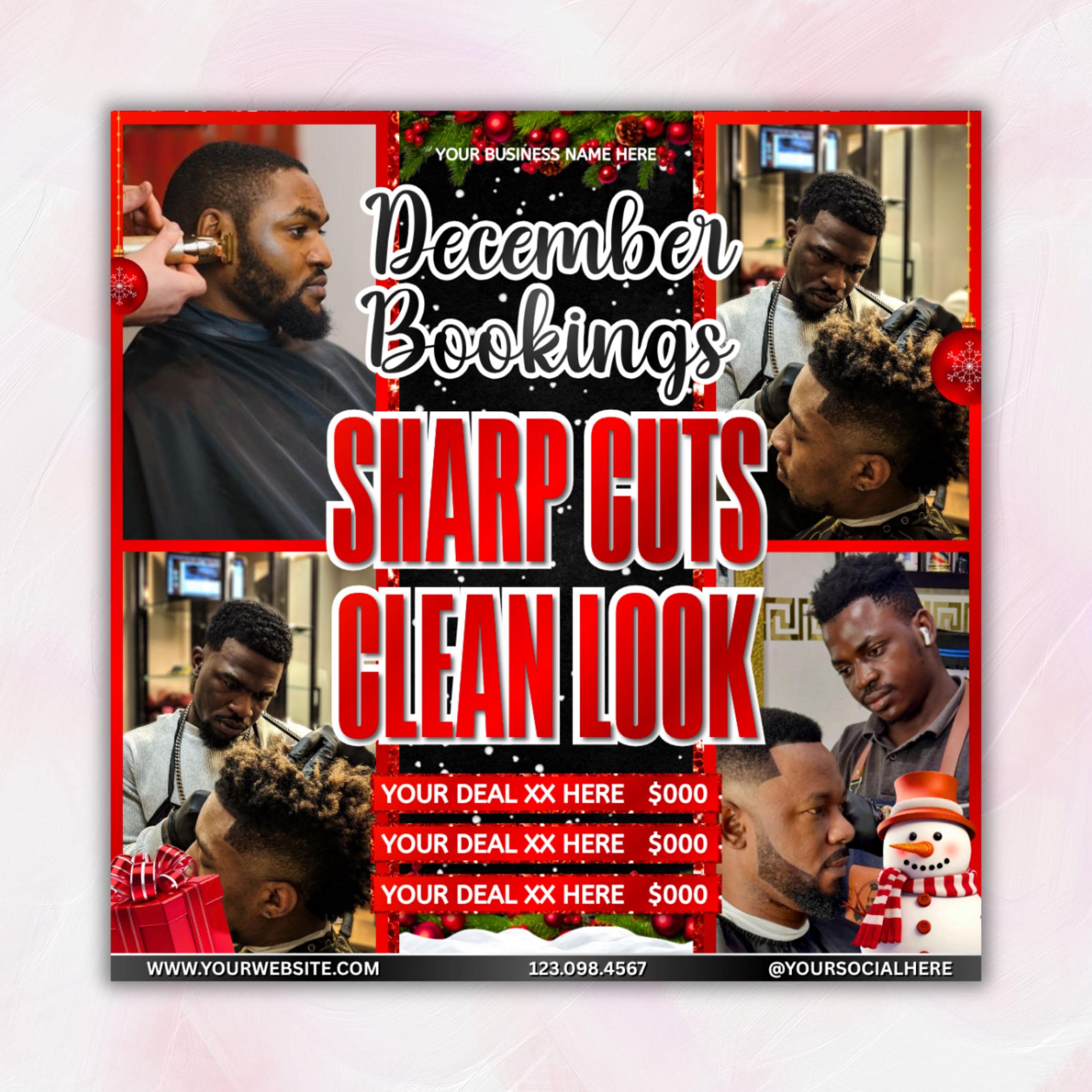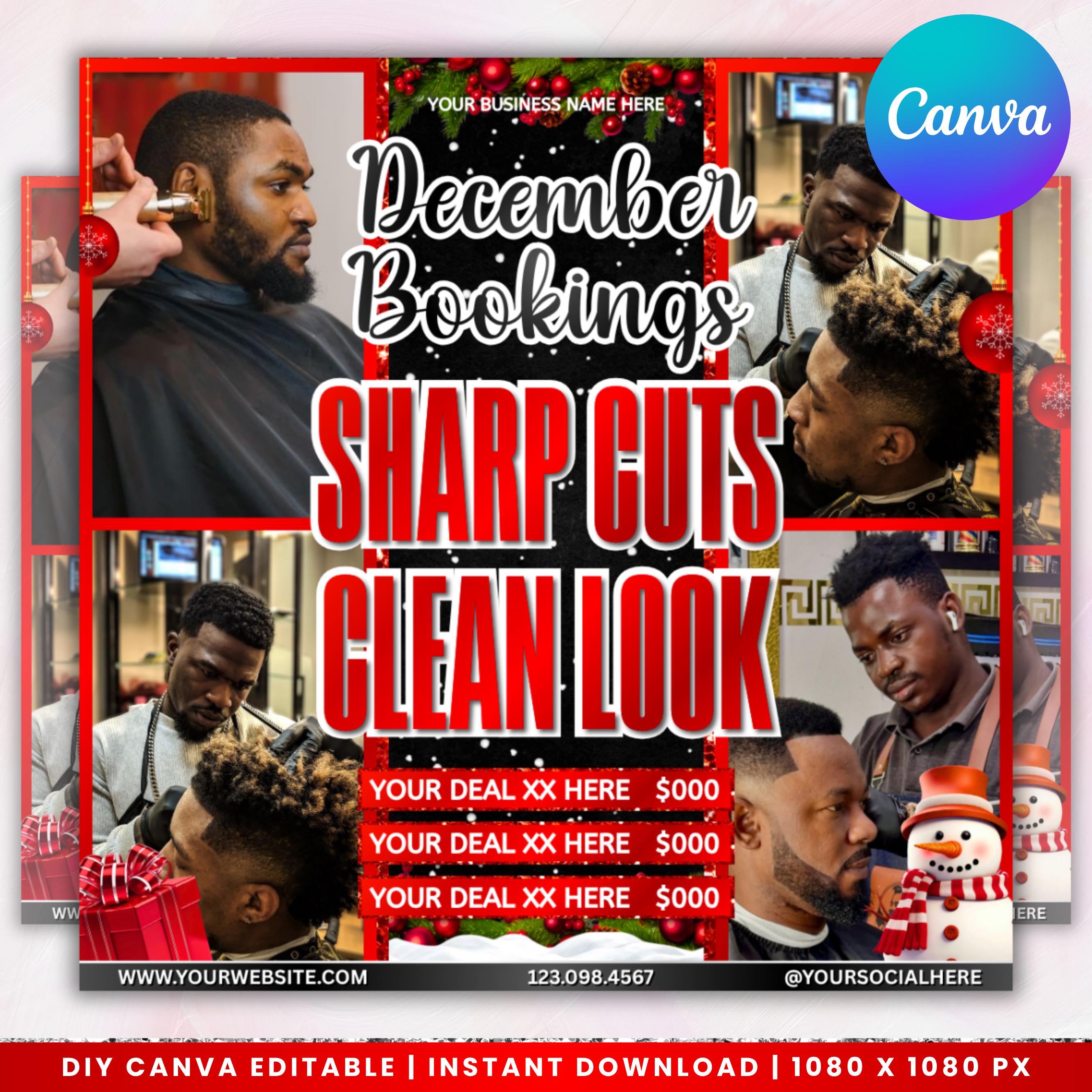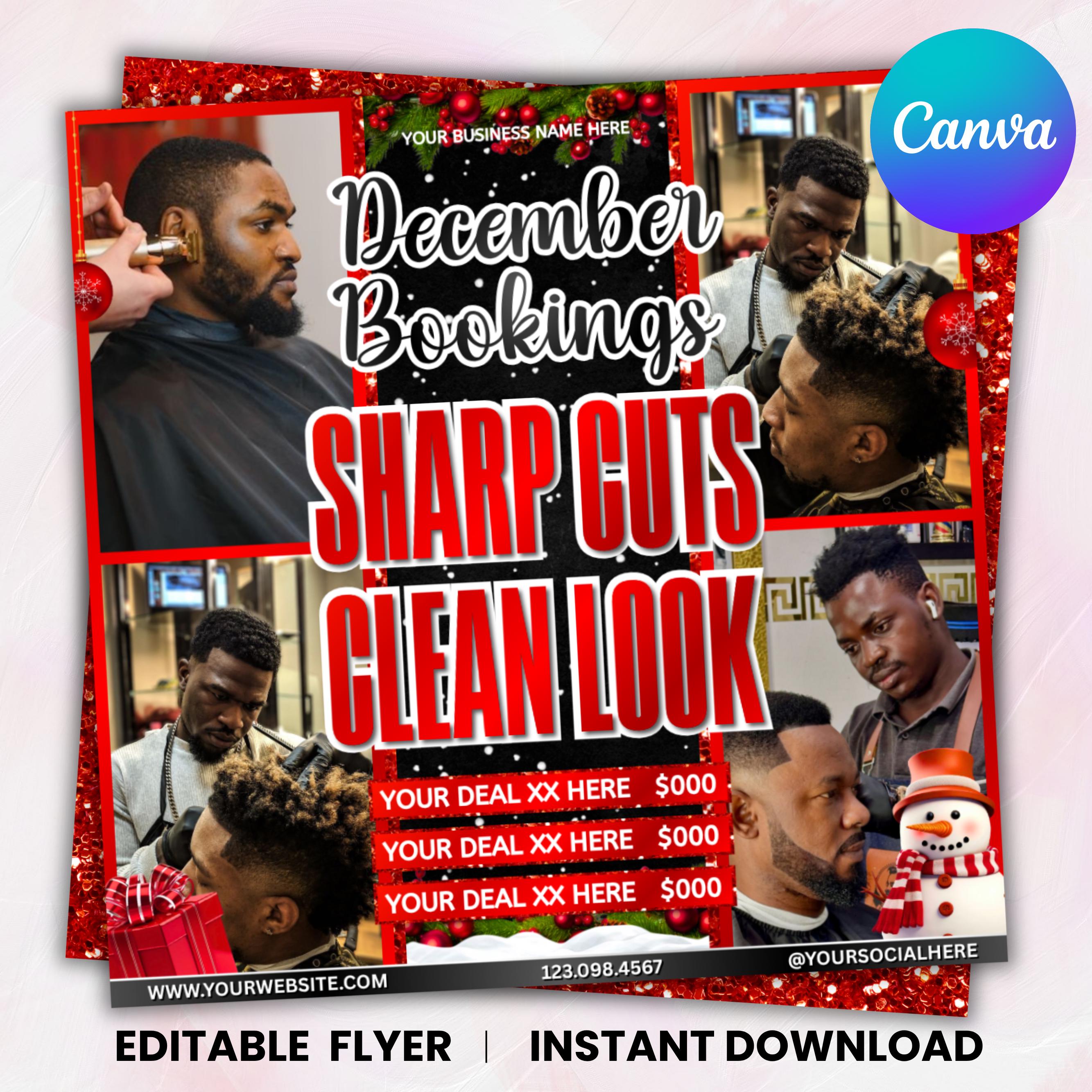 Christmas booking flyer, Barber booking flyer, December booking, Grinchmas sale flyer, Books open, Canva Editable