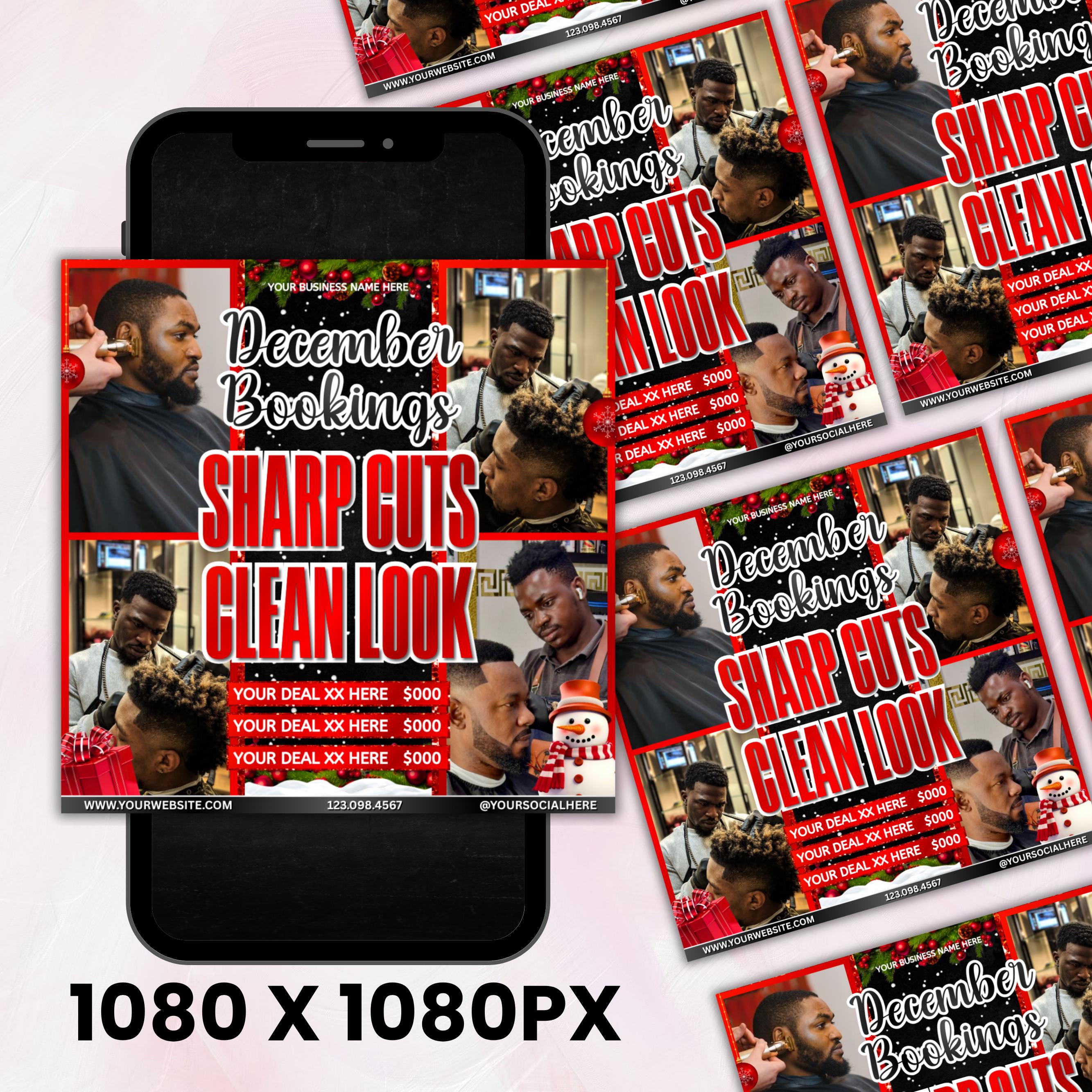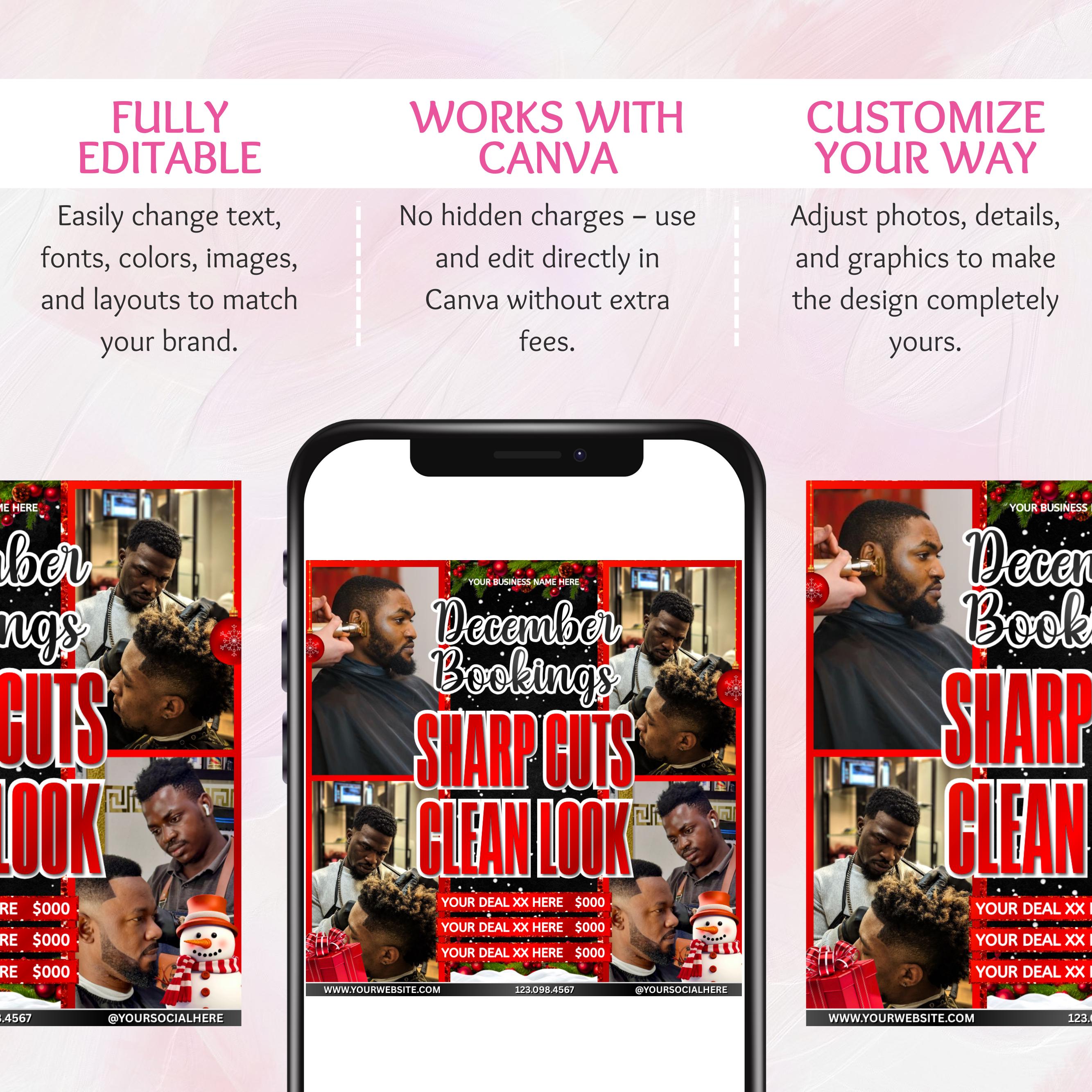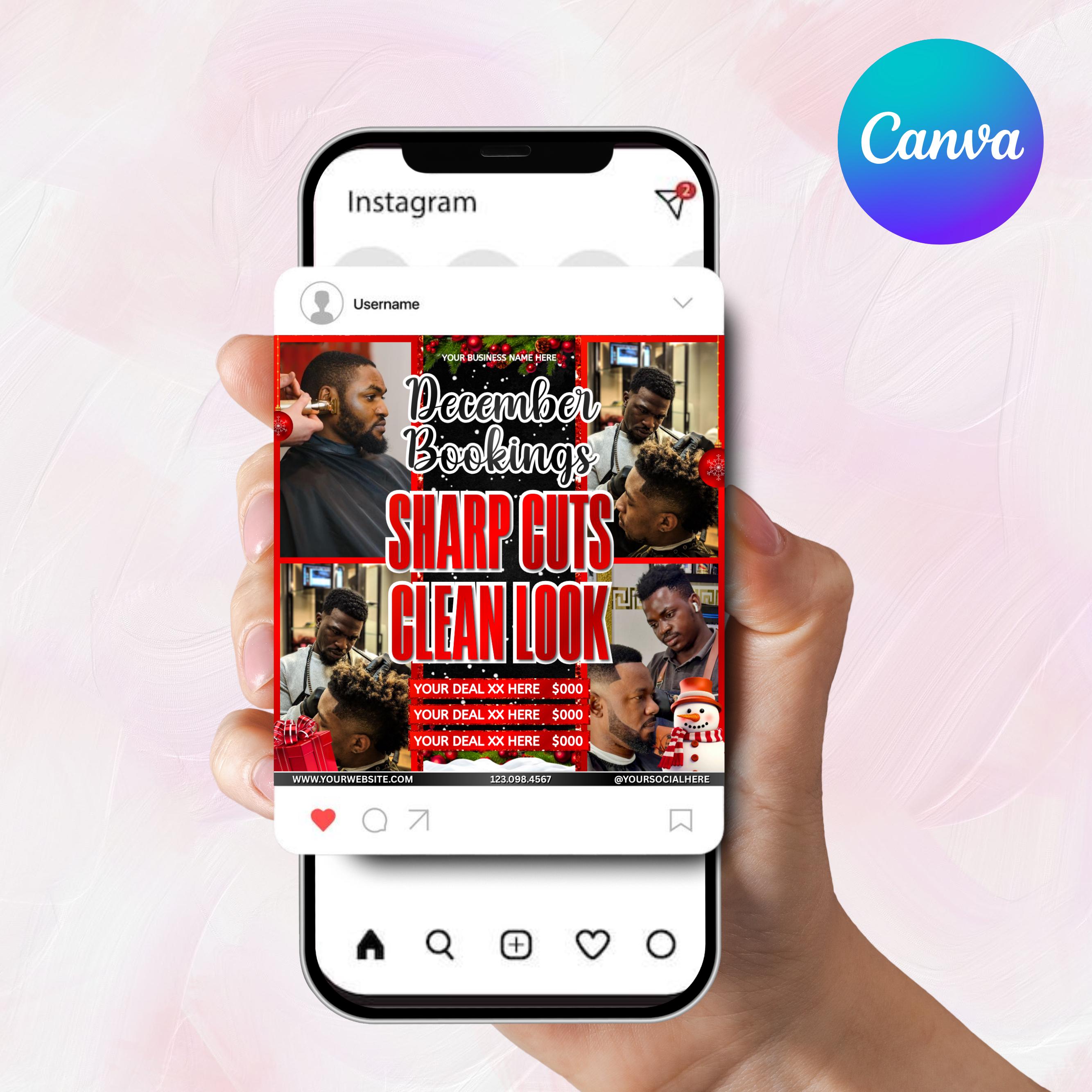 Christmas booking flyer, Barber booking flyer, December booking, Grinchmas sale flyer, Books open, Canva Editable
