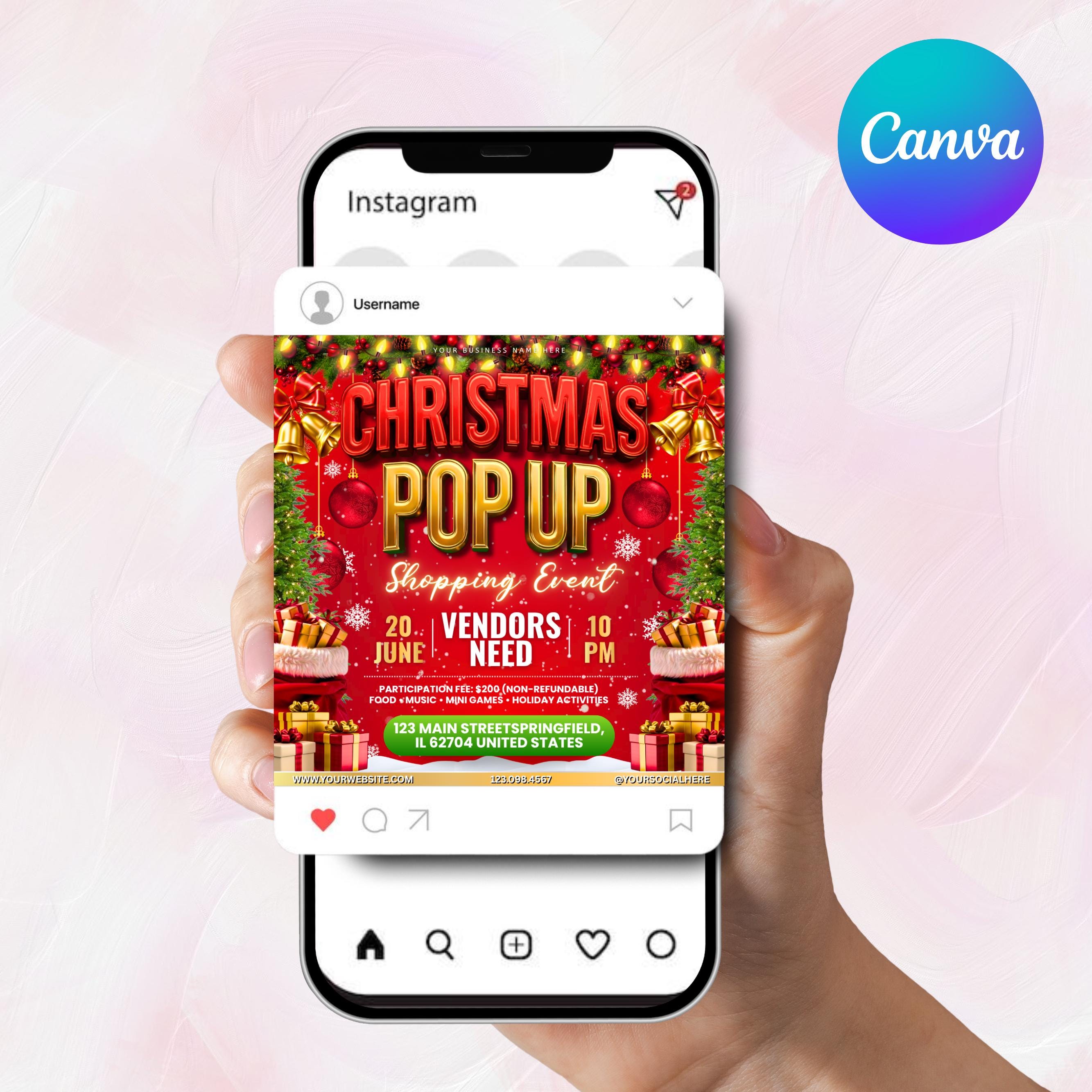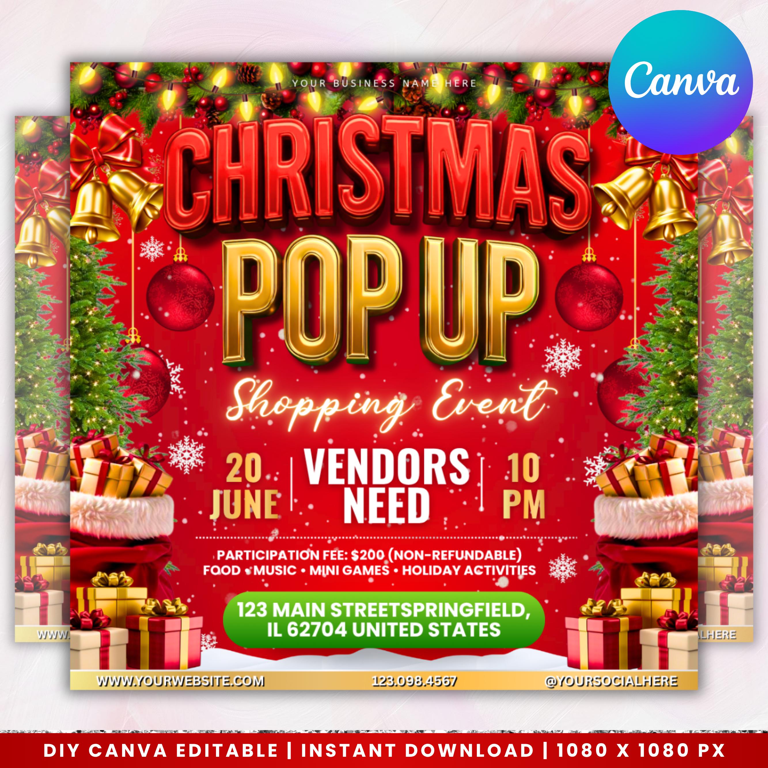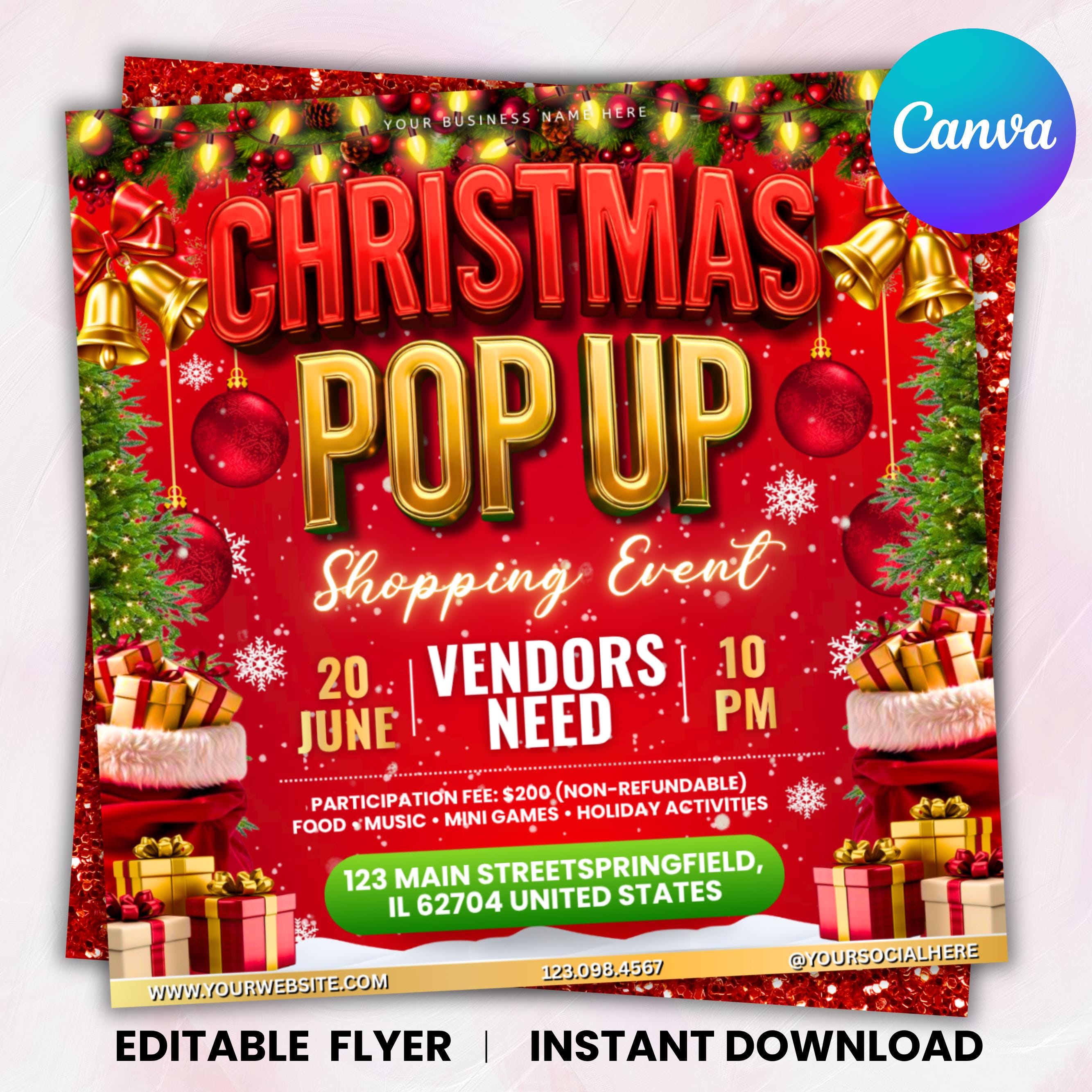 Christmas Pop Up Flyer,Christmas Sip And Shop Flyer,DIY Flyer Canva Template, Sip And Shop Flyer, Christmas Sale Flyer ,Pop Up Shop Flyer