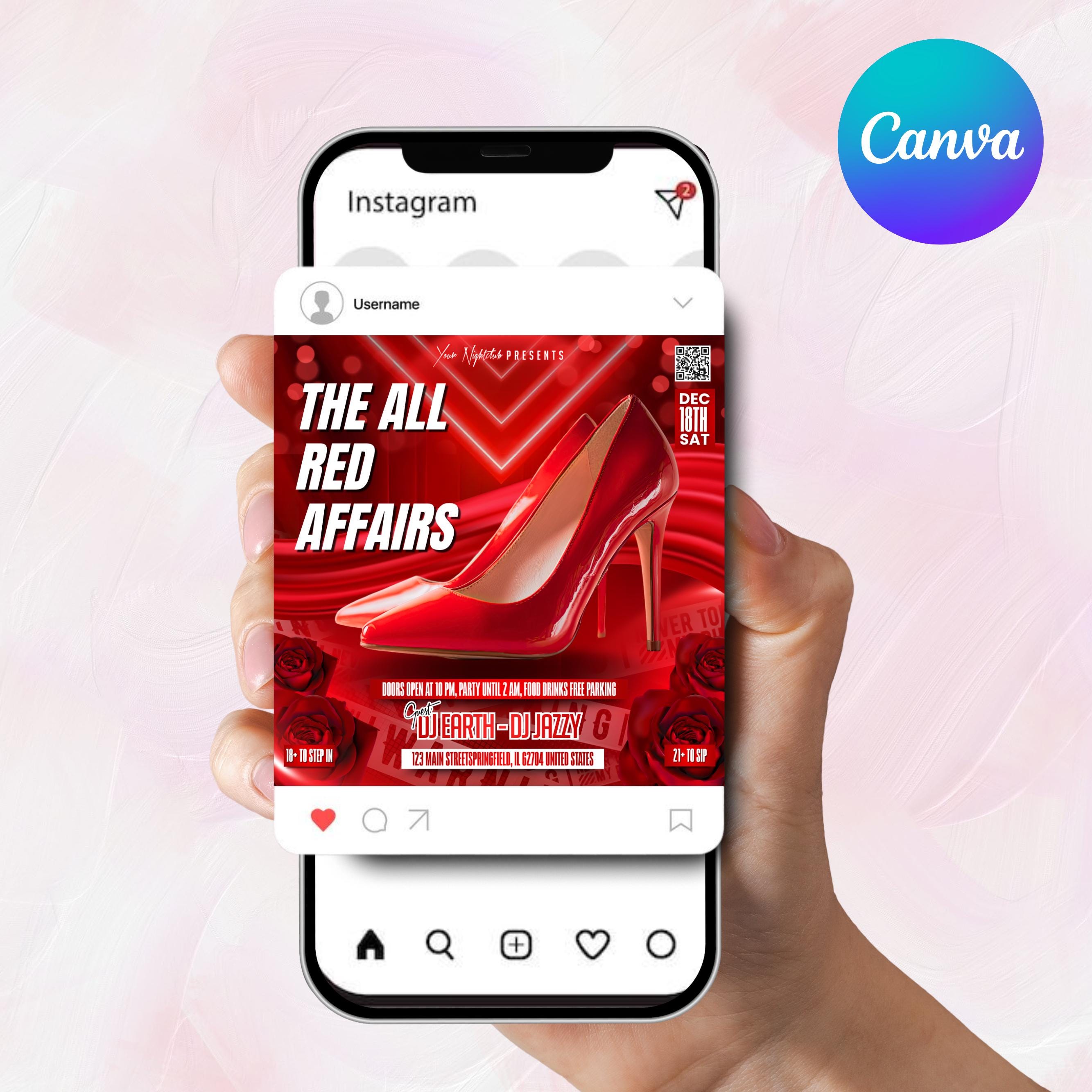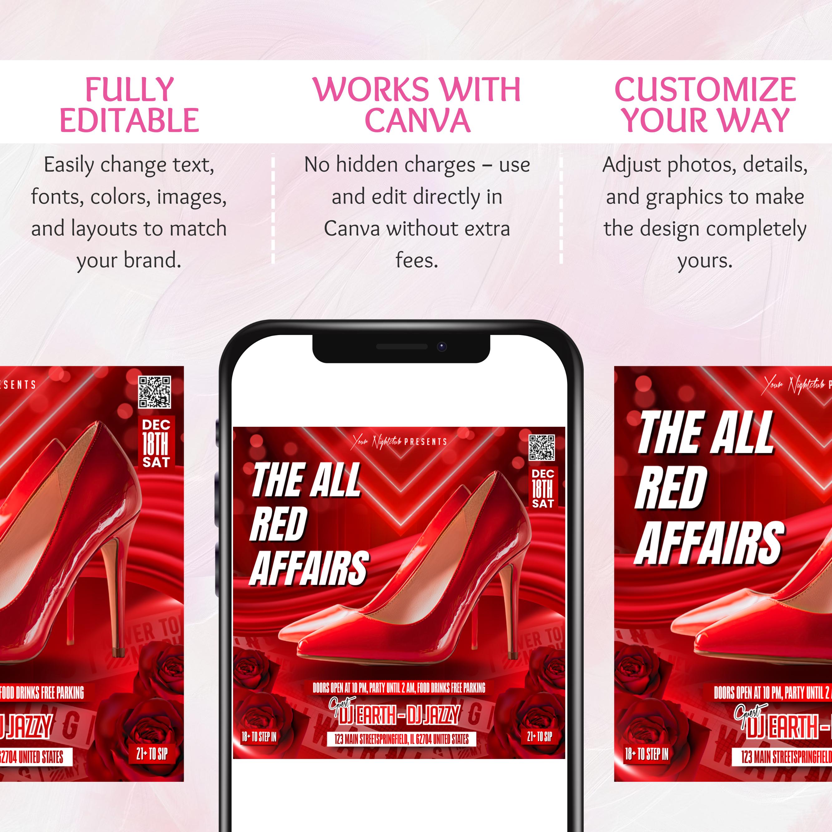 The All Red Affair Party Flyer, Red Party Flyer, Club Flyer, Party Invitation Flyer, Adult Party Flyer, Birthday Party Flyer,Canva Editable