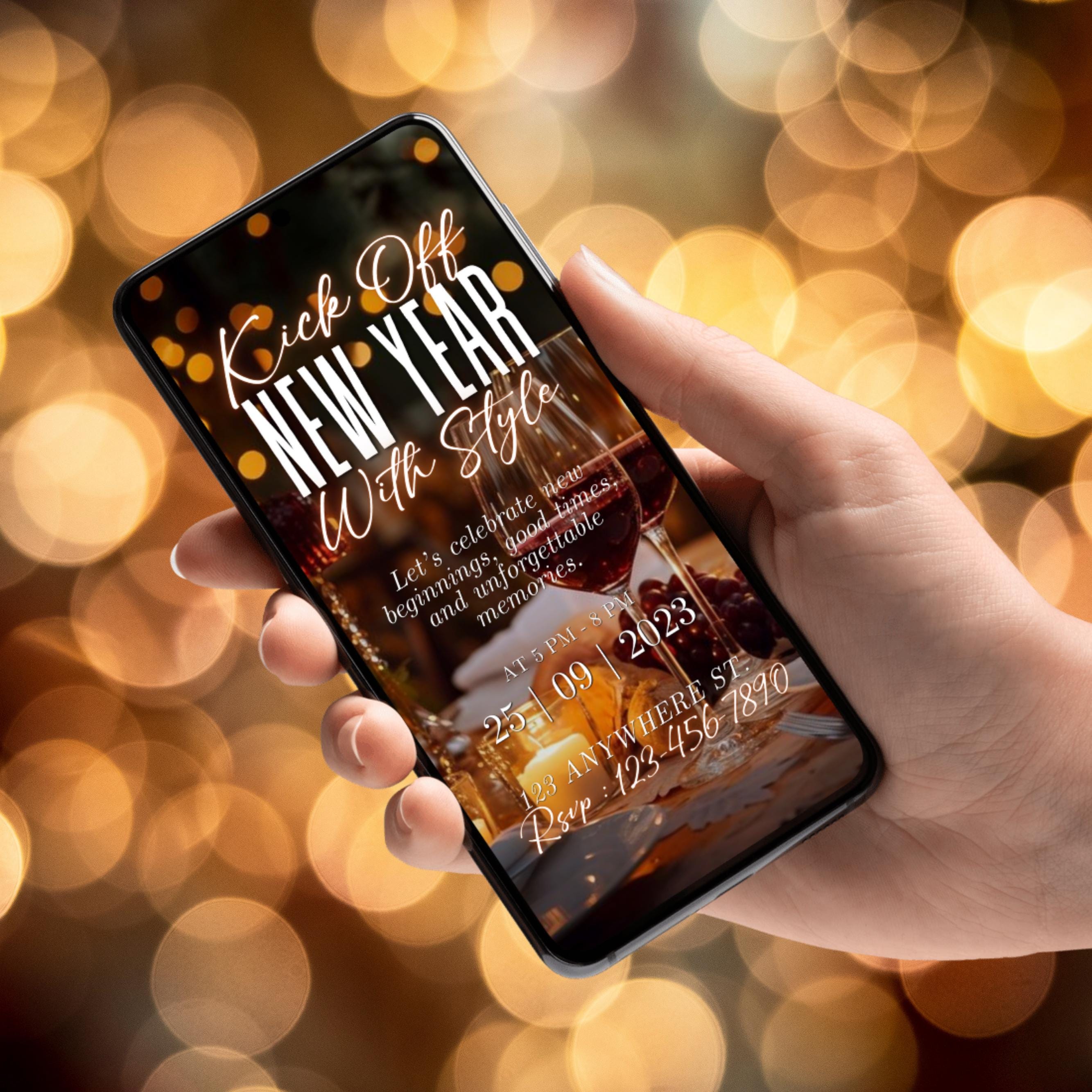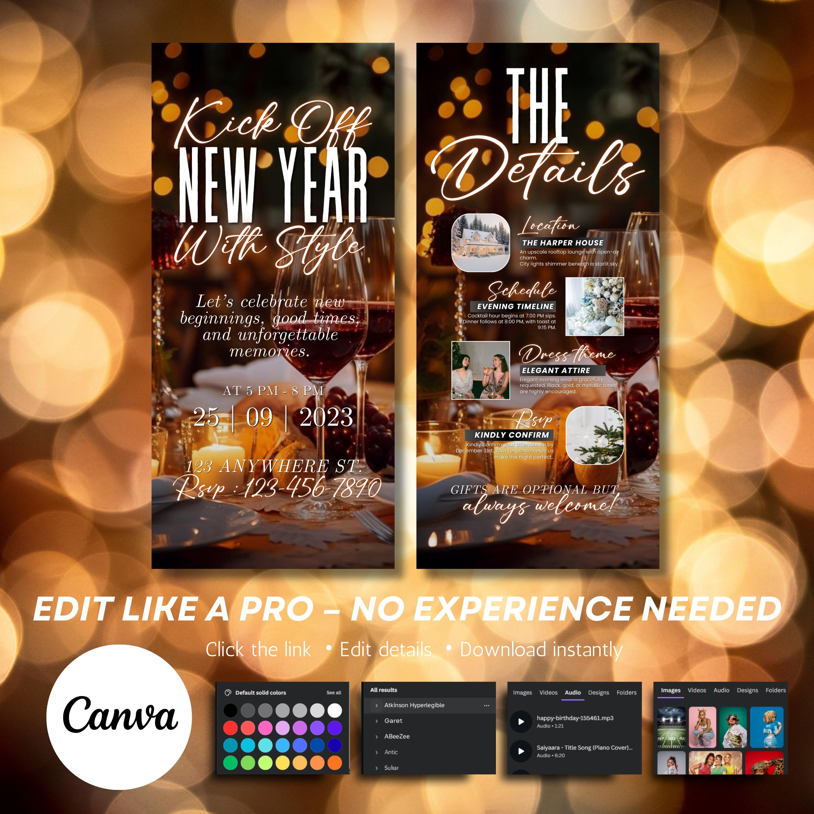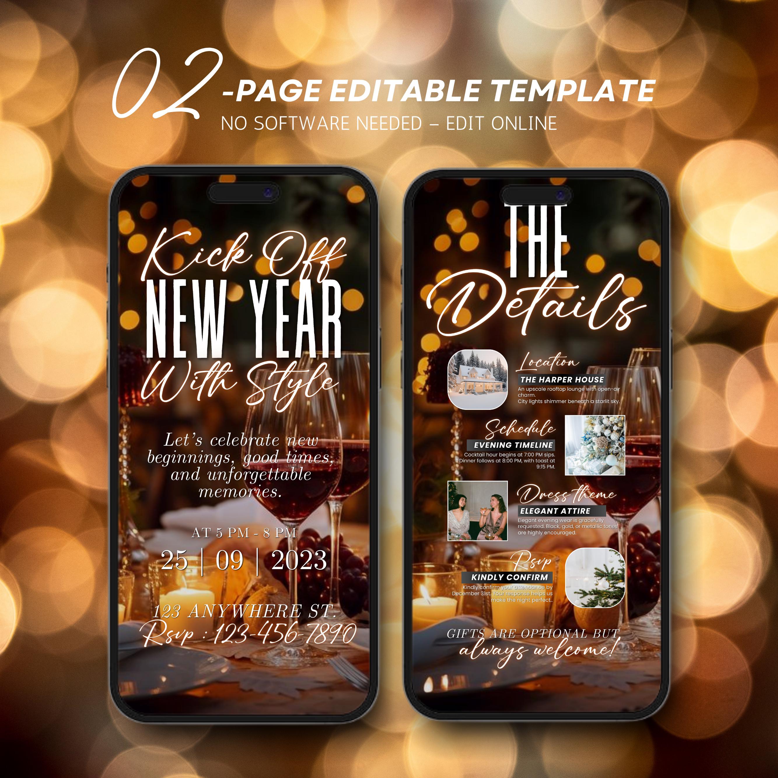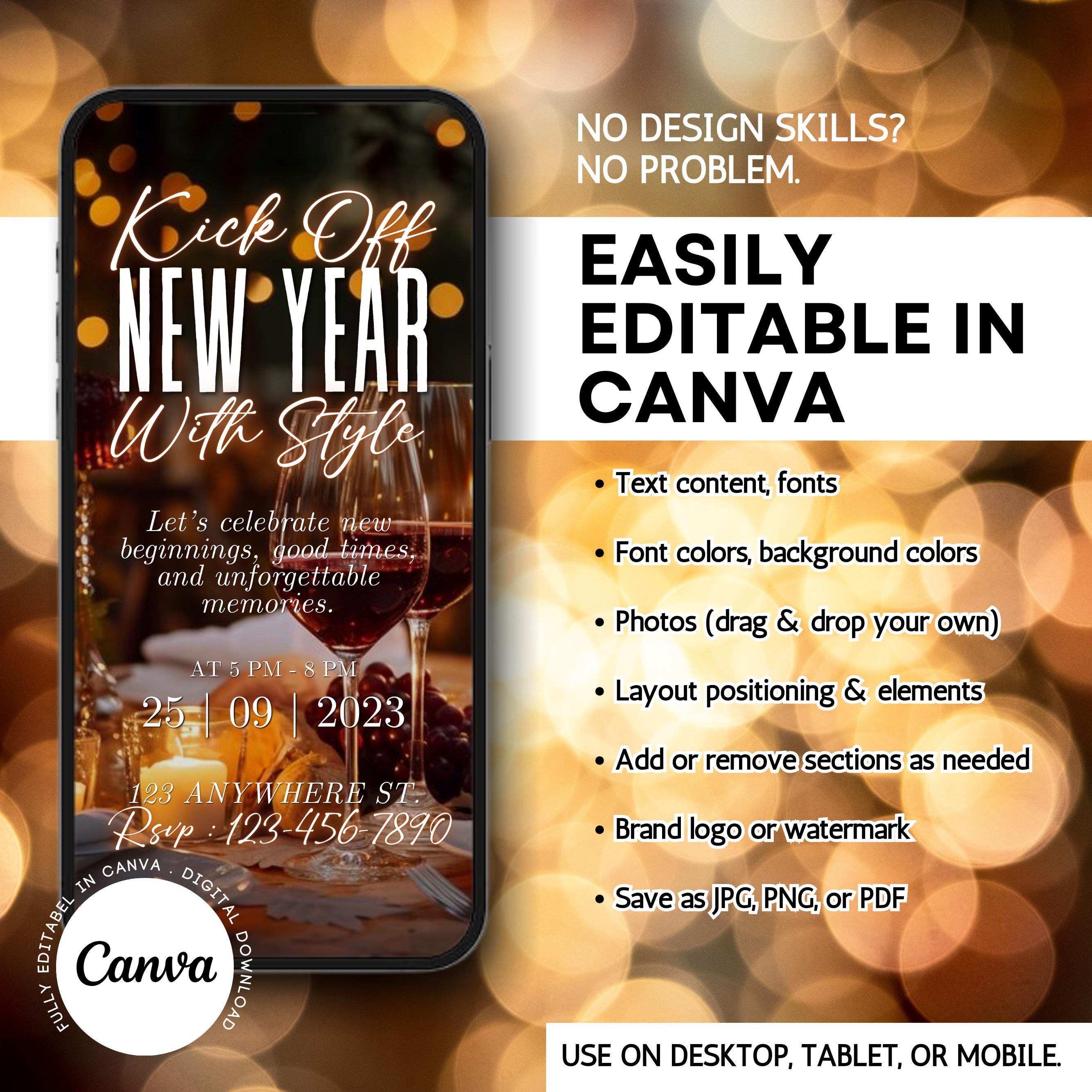 Animated New Year’s Eve Party Invitation 2026, Black Gold NYE Evite, Editable Digital Celebration Invite, Phone Text eCard, Canva Editable