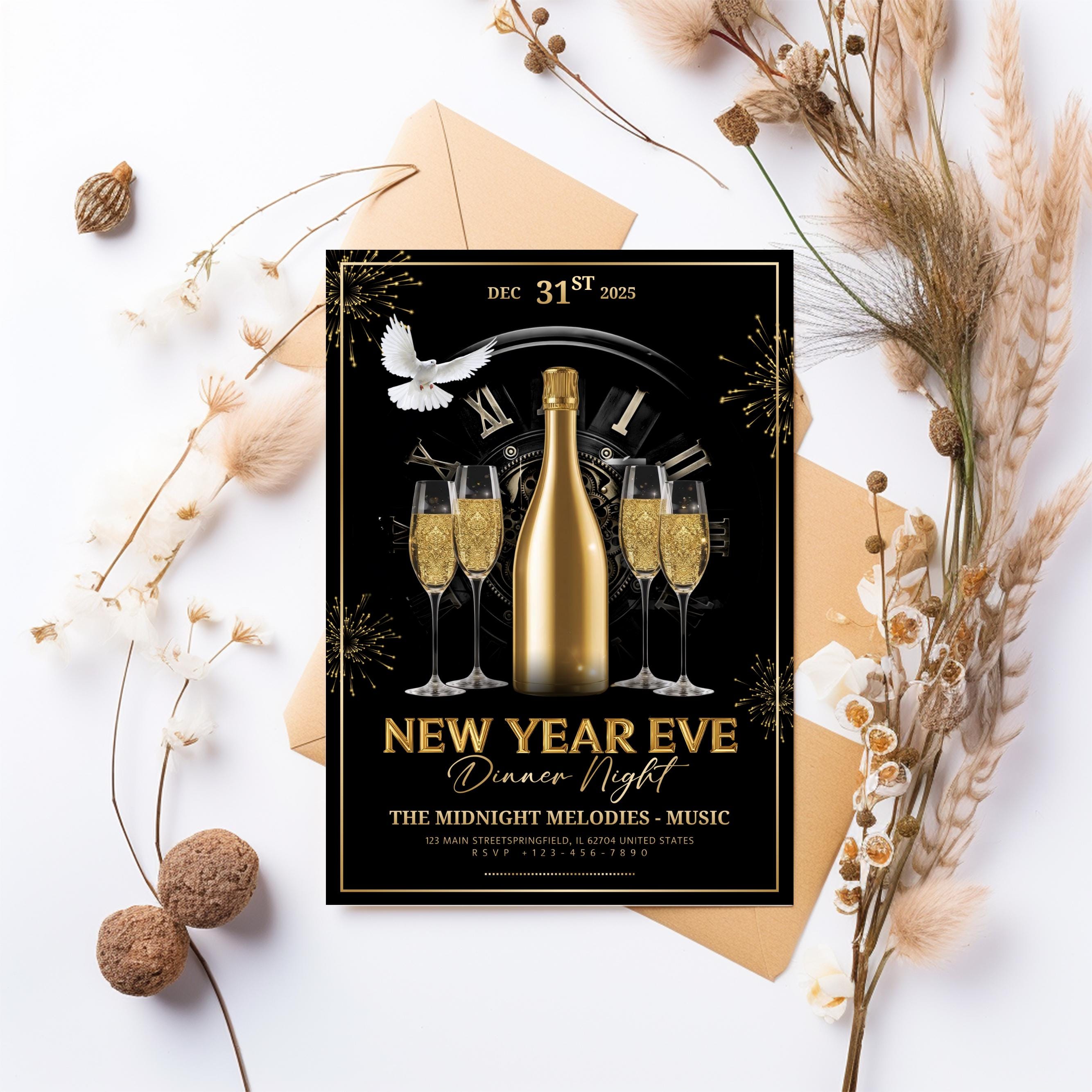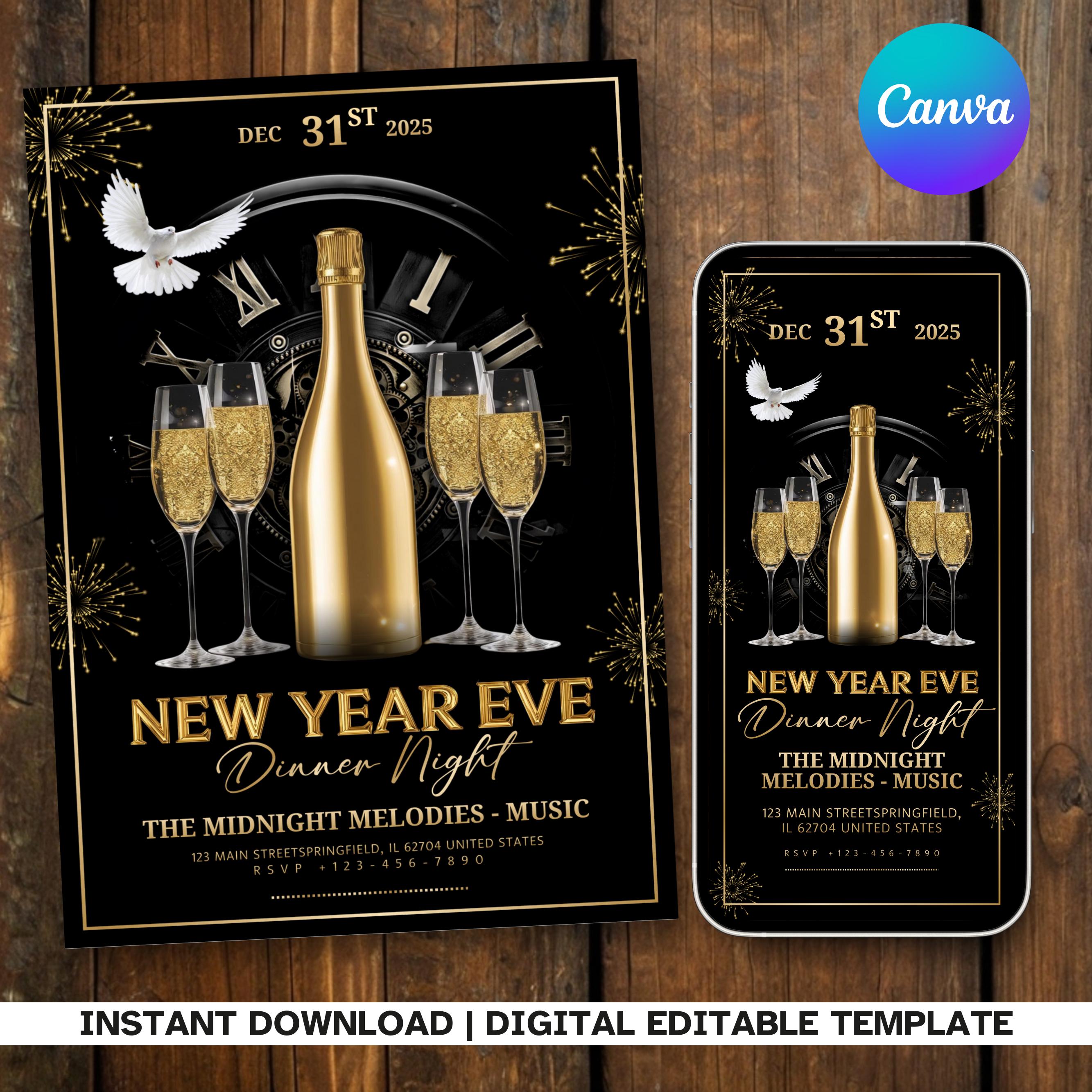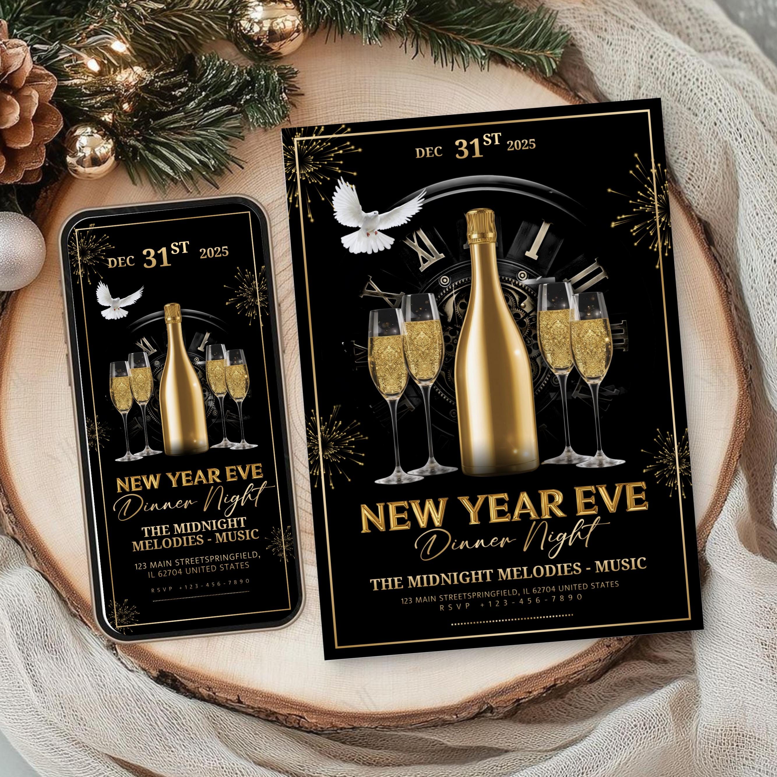 2026 New Year’s Eve Party Invite Editable, Gold Celebration New Year Digital Invitation, Black and Gold New Year Evite, Instant Download