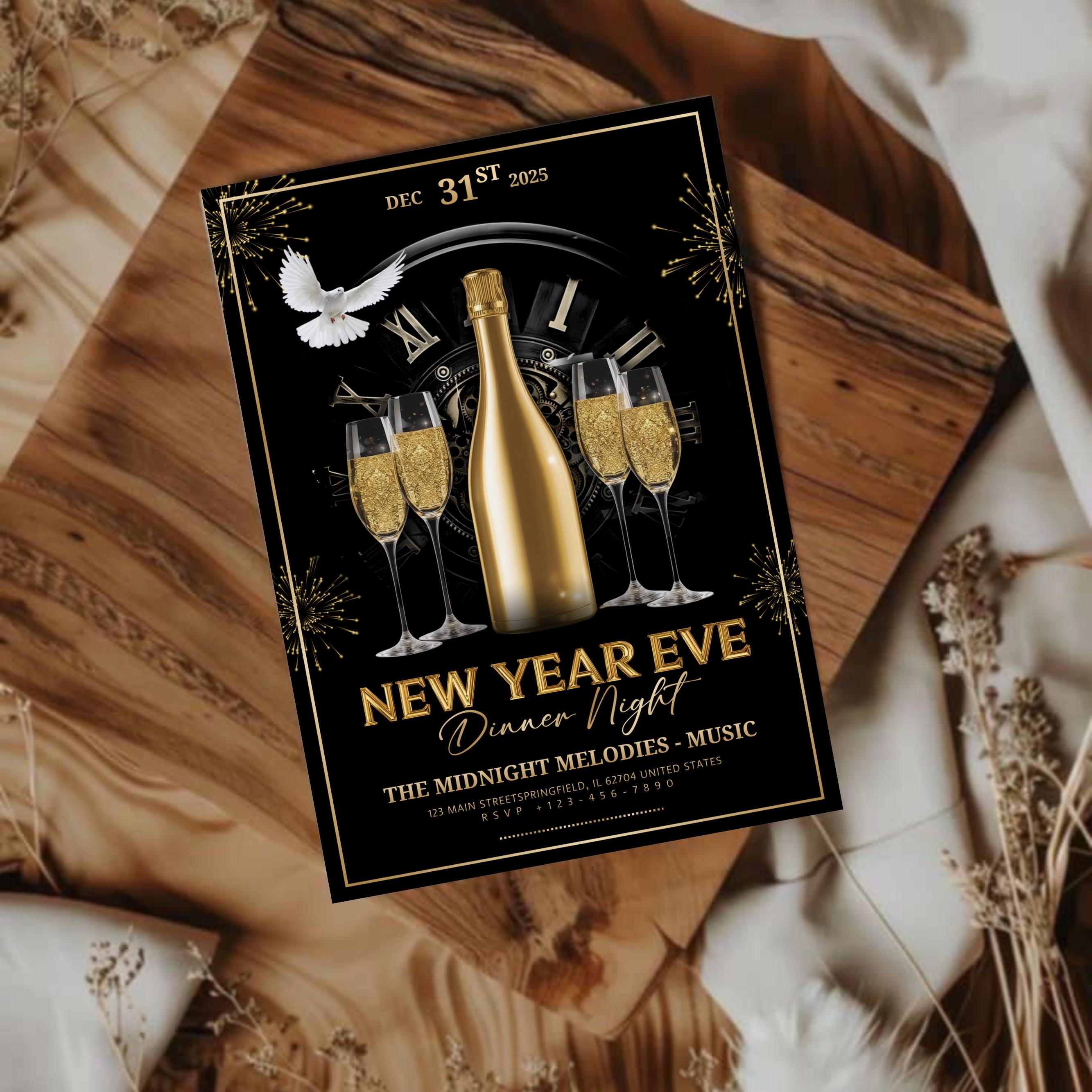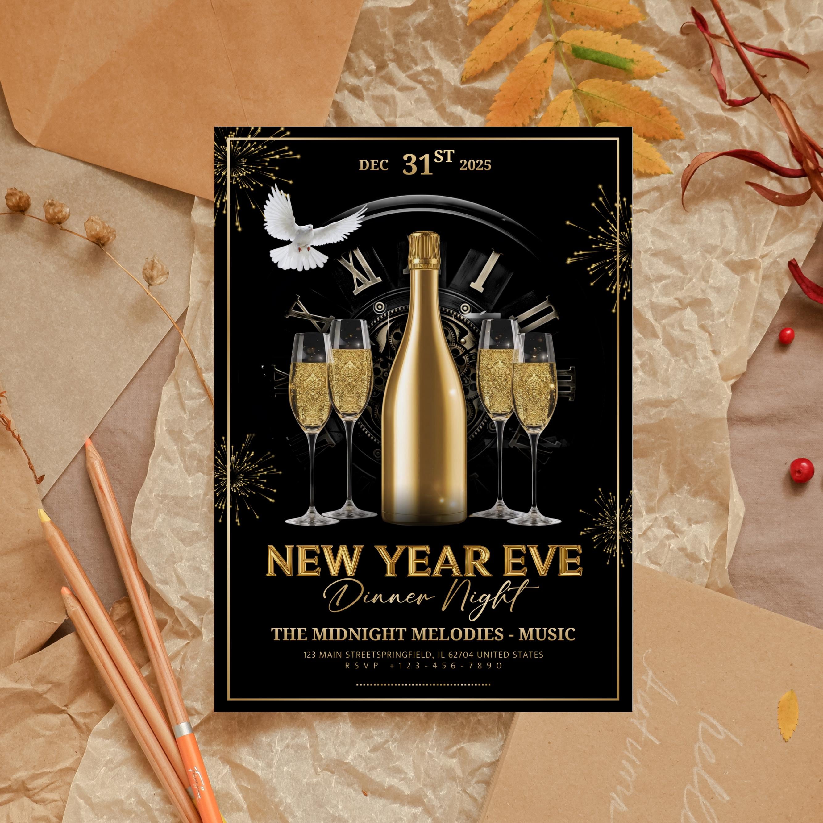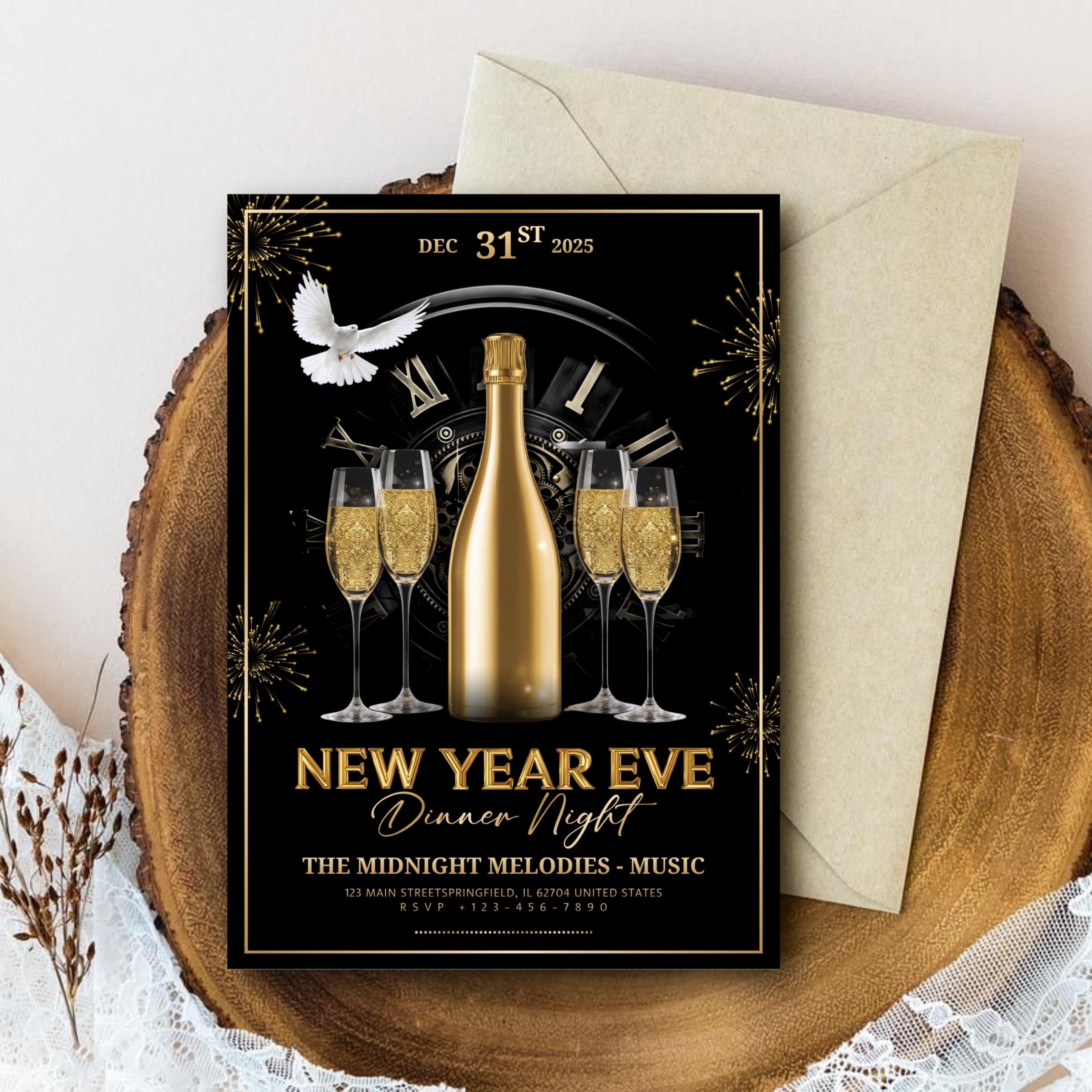 2026 New Year’s Eve Party Invite Editable, Gold Celebration New Year Digital Invitation, Black and Gold New Year Evite, Instant Download